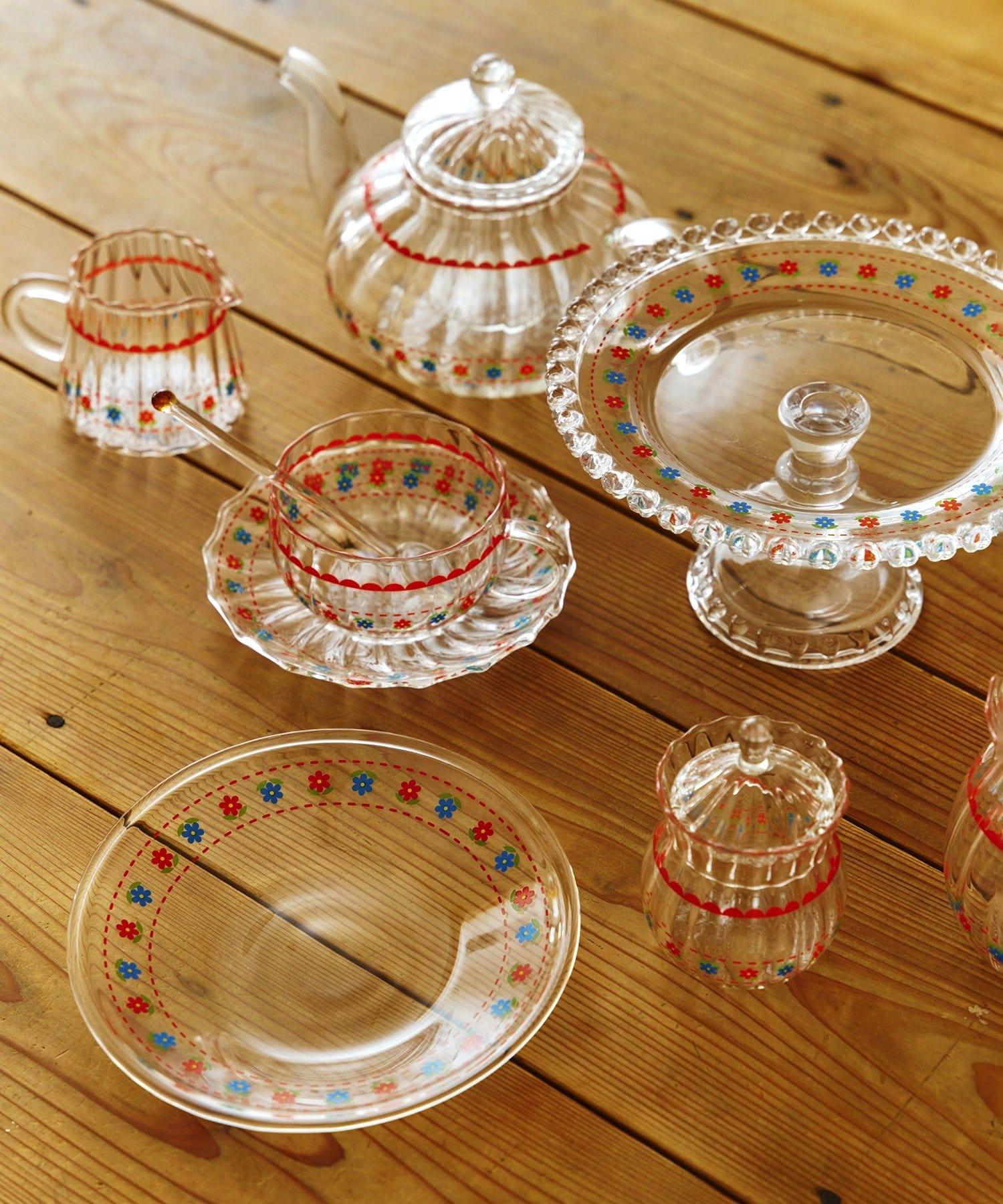 帶有醒目復古可愛花卉圖案的玻璃盤。