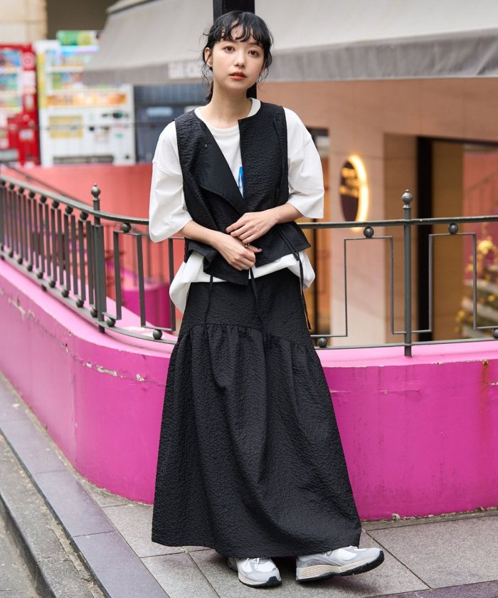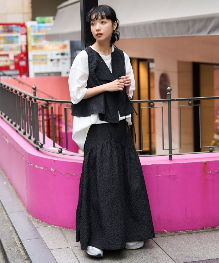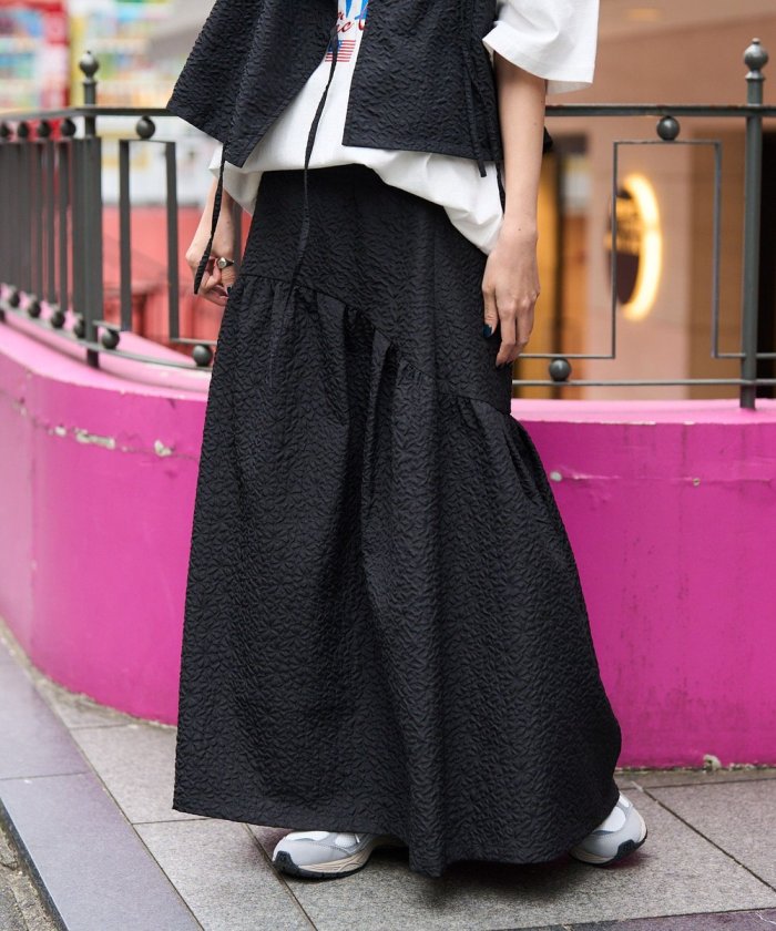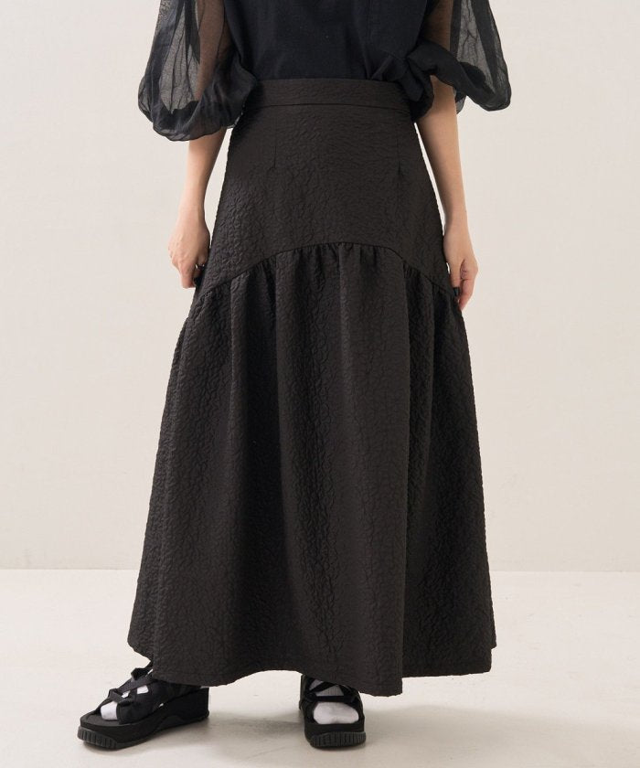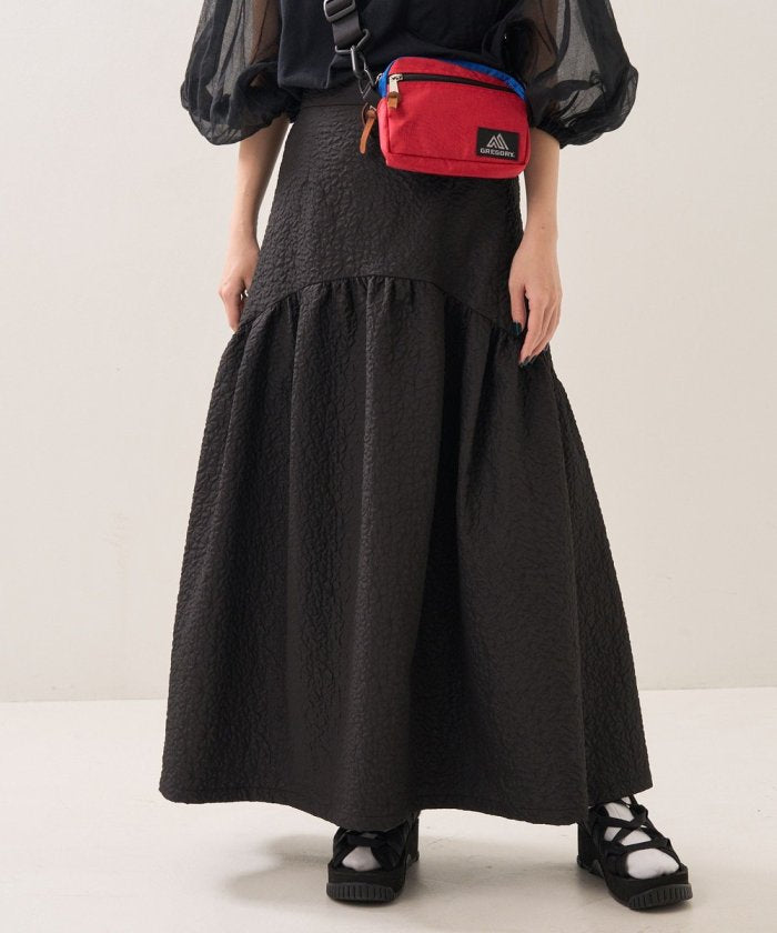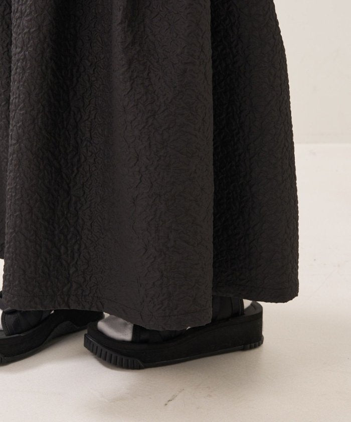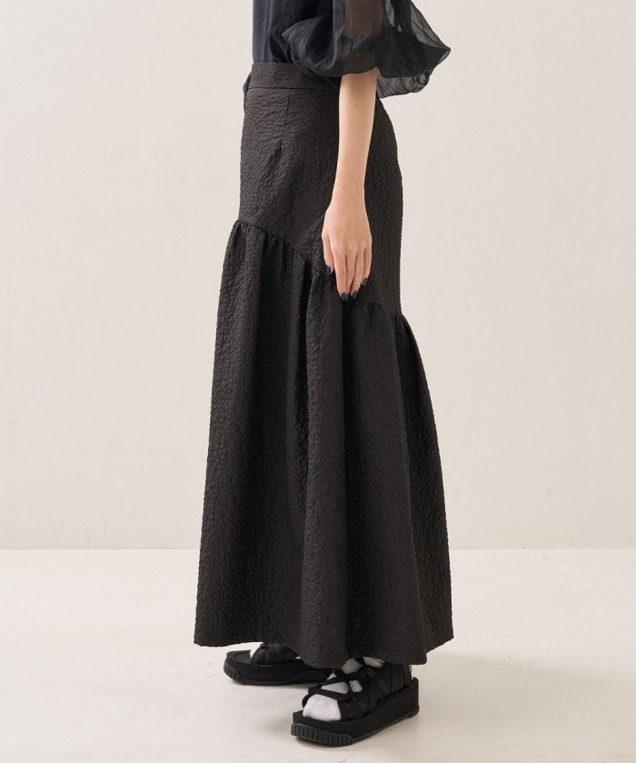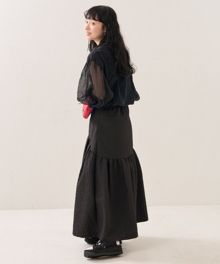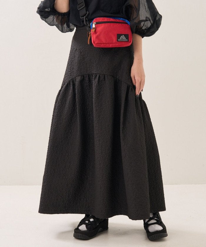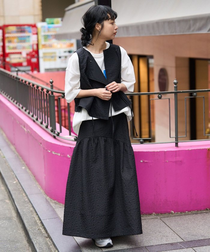 裙子採用時下流行的 Fouclé 提花面料,具有凹凸紋理和彈力感。