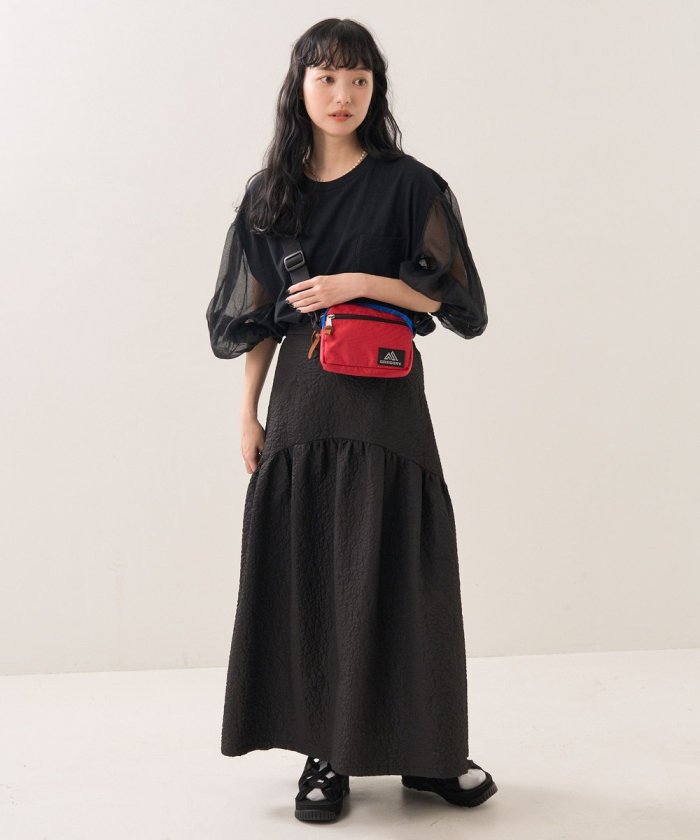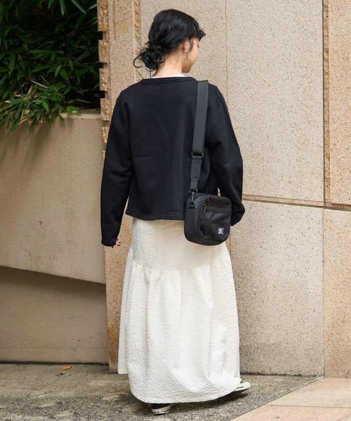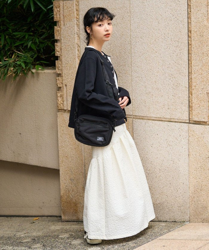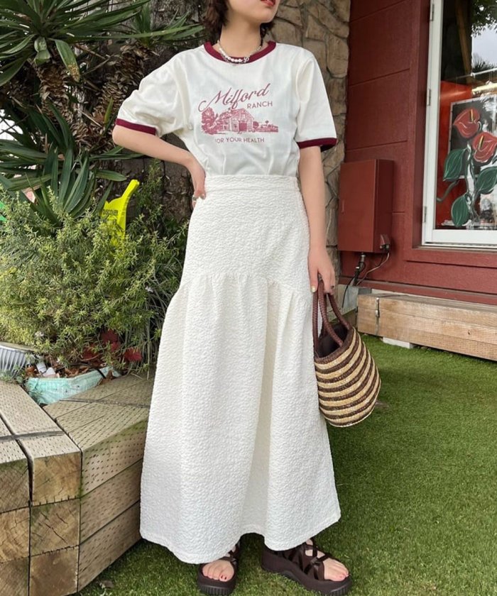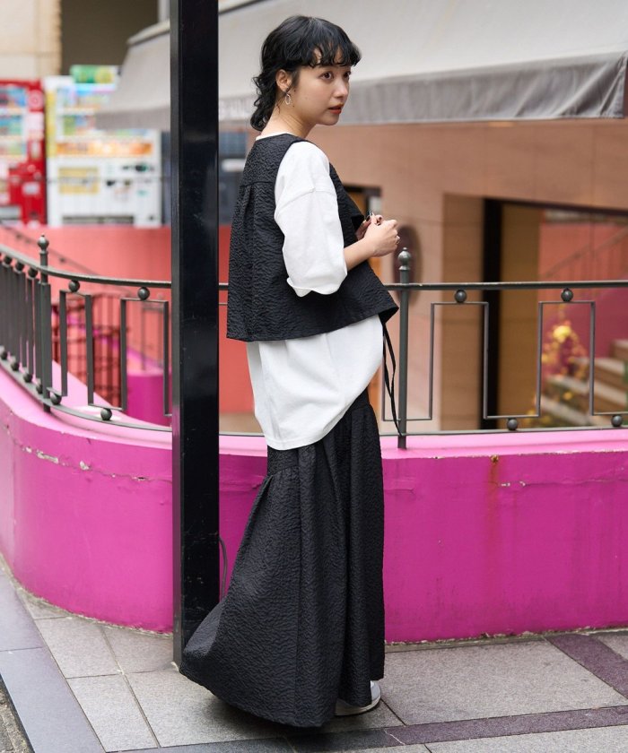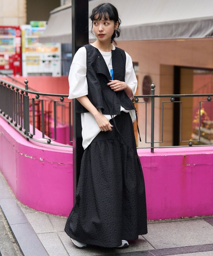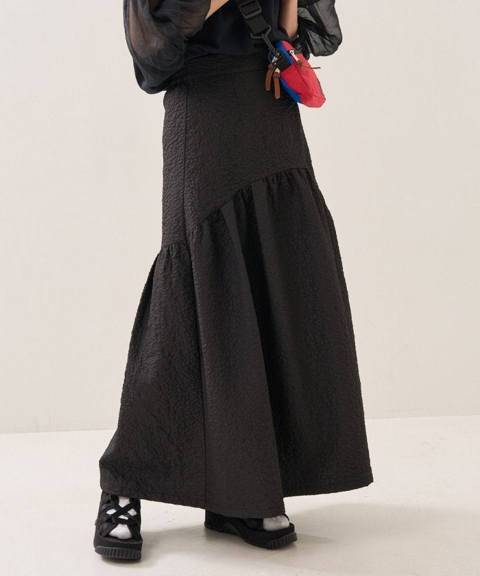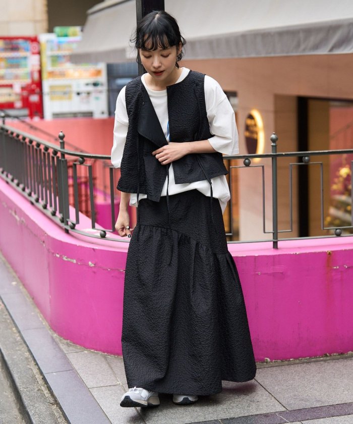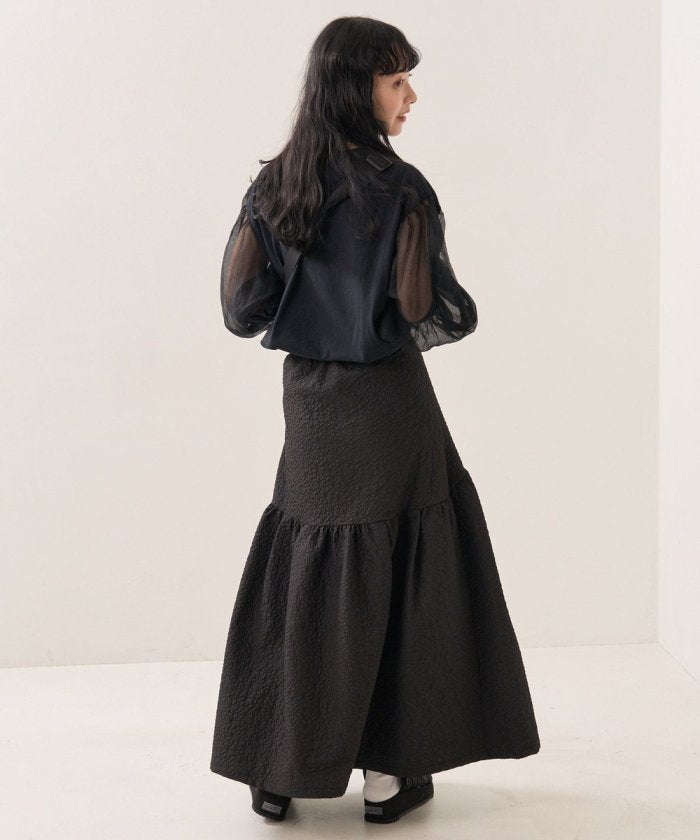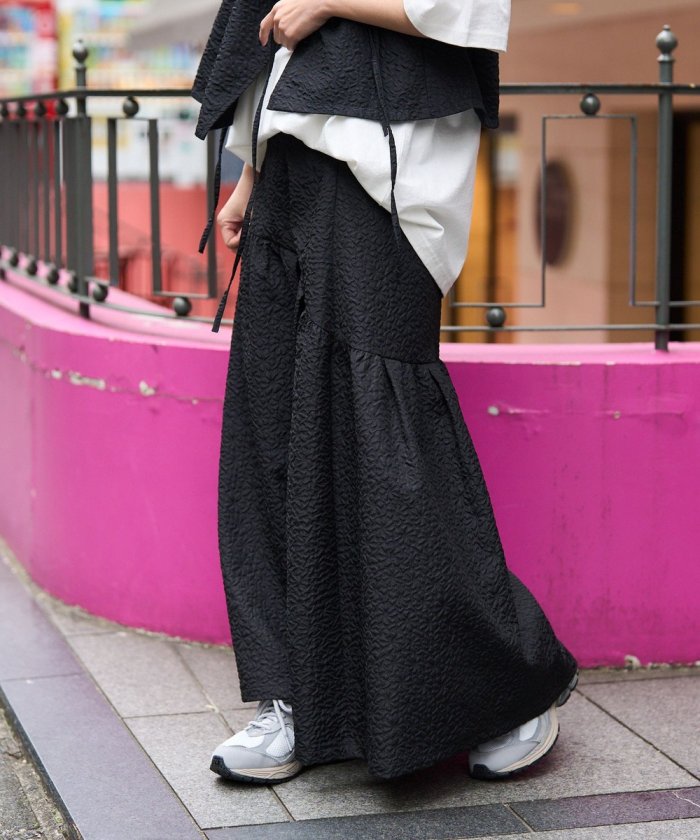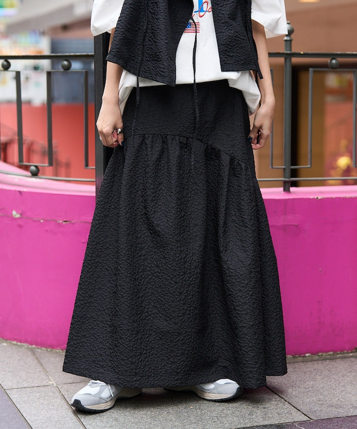 裙子採用時下流行的 Fouclé 提花面料,具有凹凸紋理和彈力感。