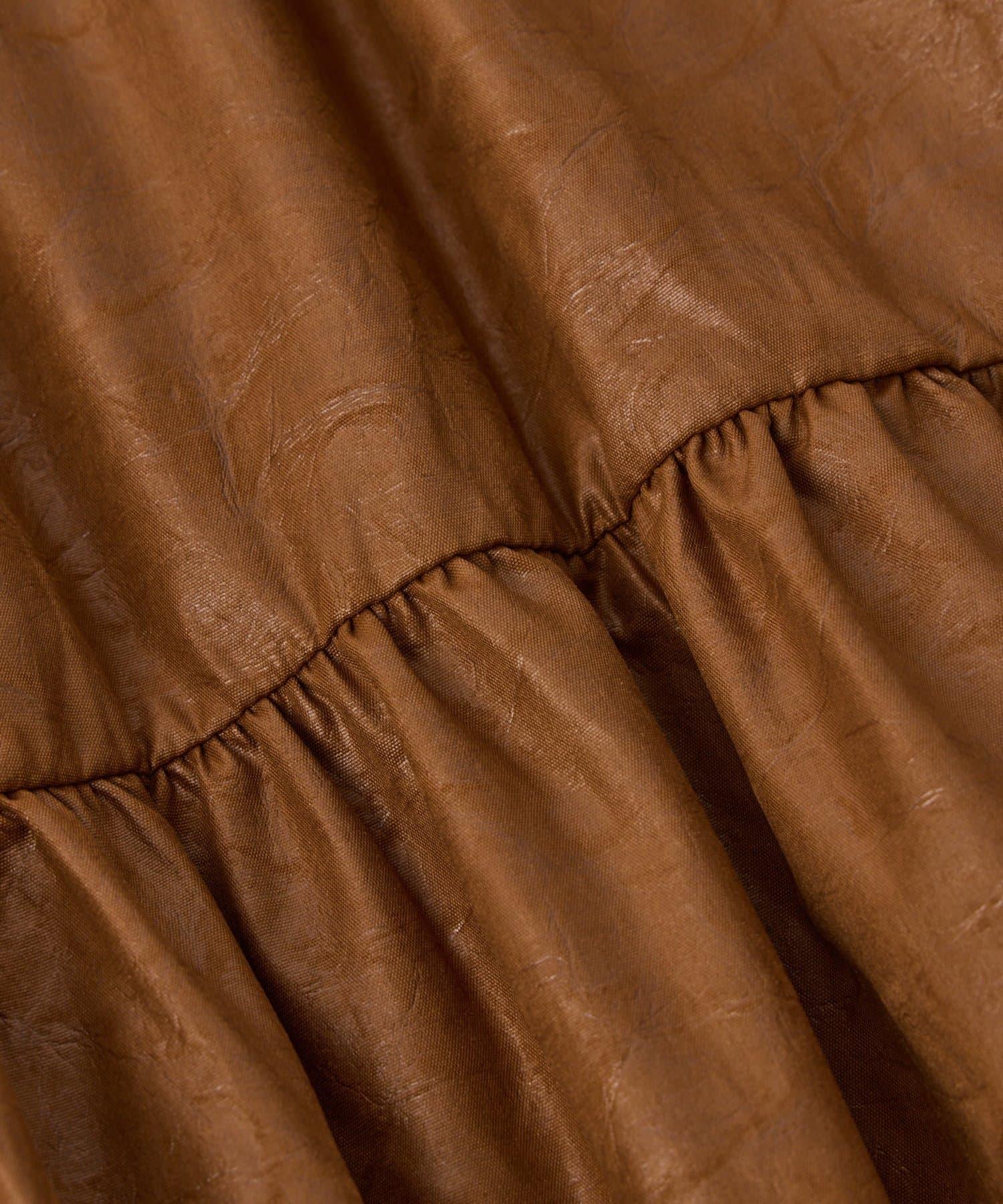 這是一款特別的裙子,乍一看給人一種硬邦邦的感覺,但穿在身上卻出奇地柔軟,更顯女性魅力。