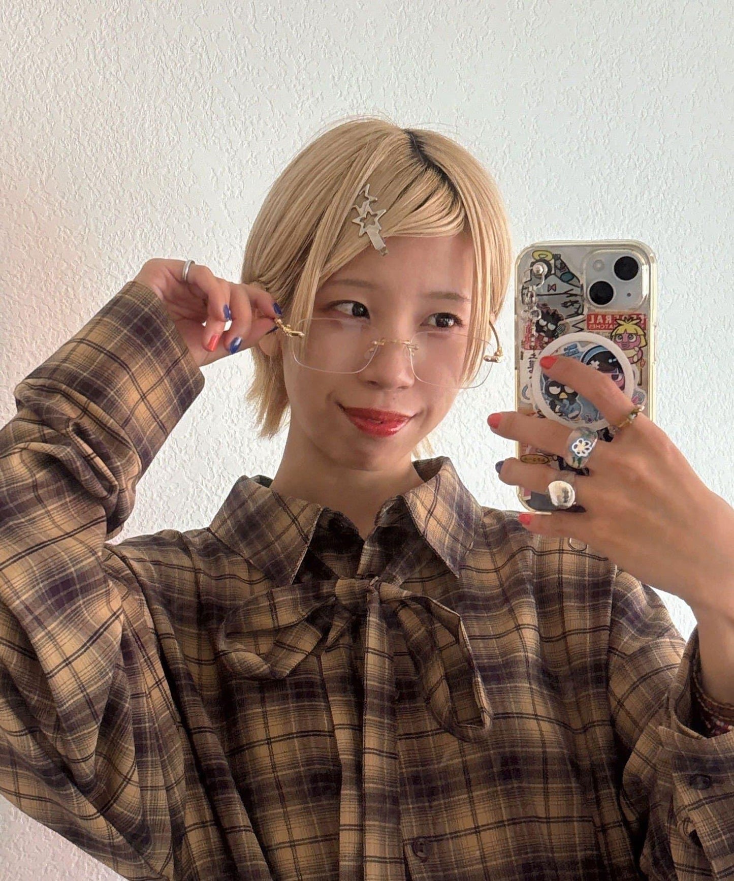 精緻的金屬鏡框和透明鏡片為臉部增添了一種慵懶感。