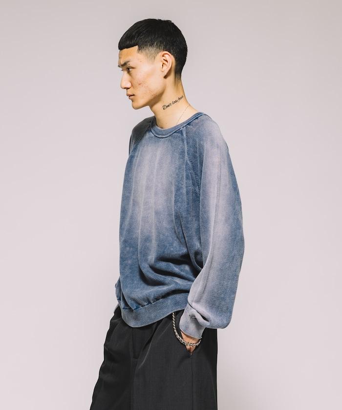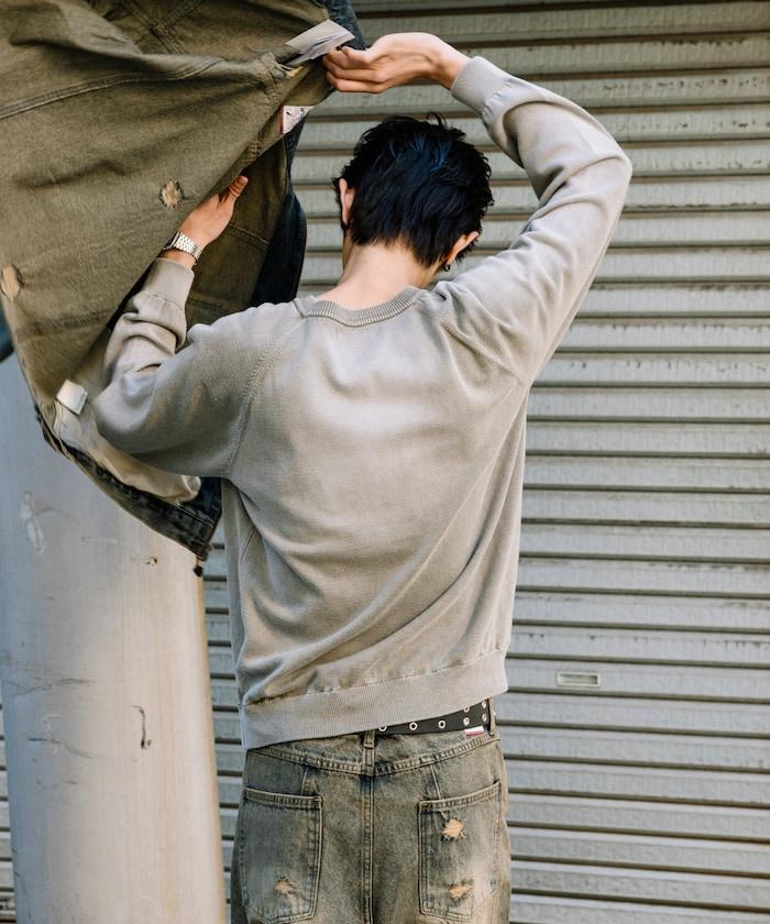 在顏料染色後,面料經過生物水洗和漂白,呈現出獨特的褪色外觀和復古色調。經過這種精細工藝製作的針織品,其獨特的設計在其他地方是找不到的。