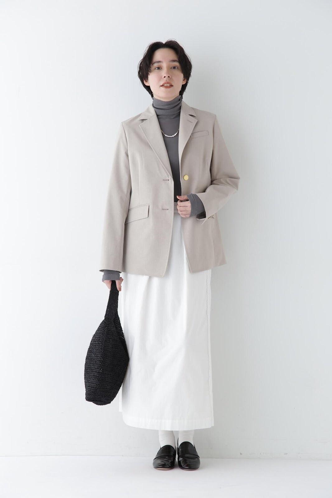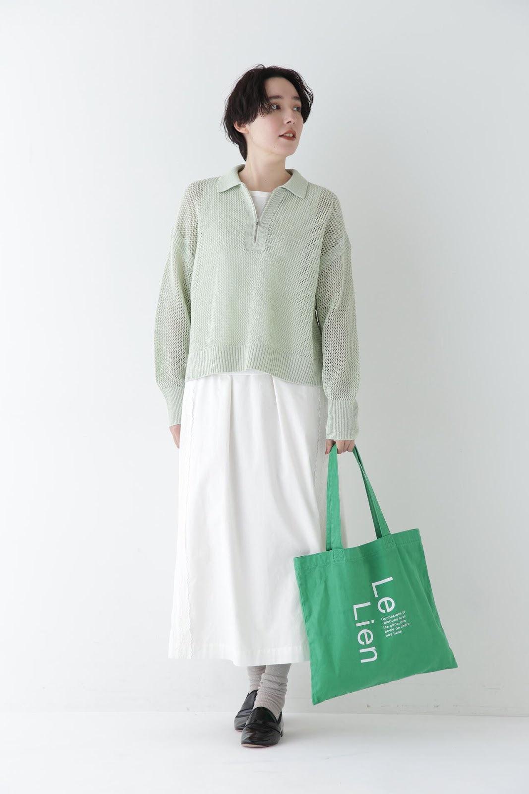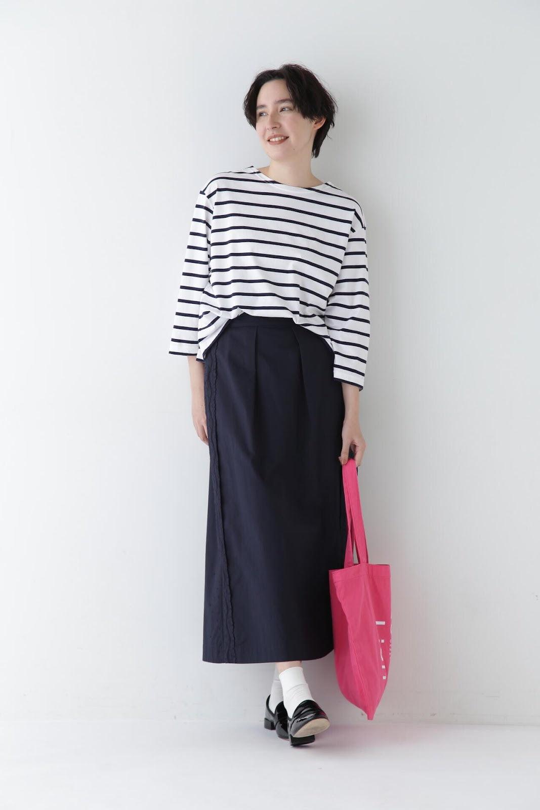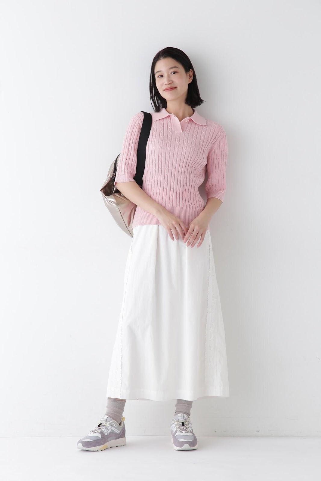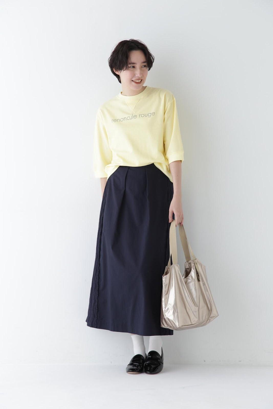 帶有復古蕾絲的 A 字裙 [設計要點] 簡單的 A 字裙,兩側帶有扇形蕾絲。👍初的扇形花紋靈感來自於 60Lloan 底布上的復古枕套花紋。裙子有兩種顏色:灰白色和海軍藍。蕾絲點綴簡單而有效,建議搭配春季色彩的針織衫或運動衫,腳踩樂福鞋或運動鞋,造型略顯厚重。