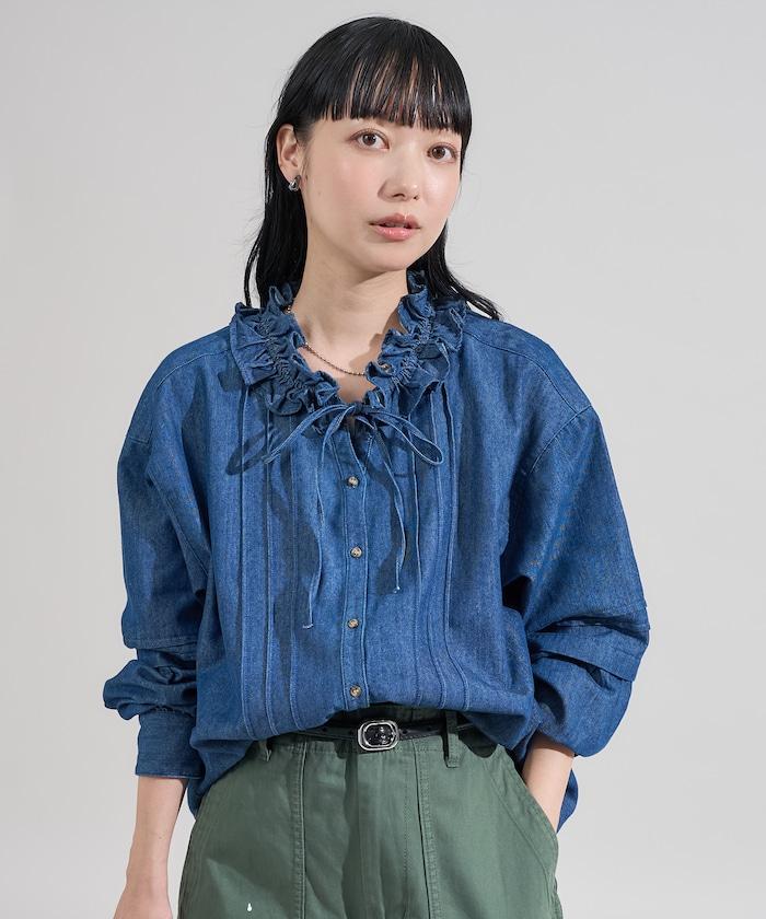 復古風雙層荷葉邊襯衫
