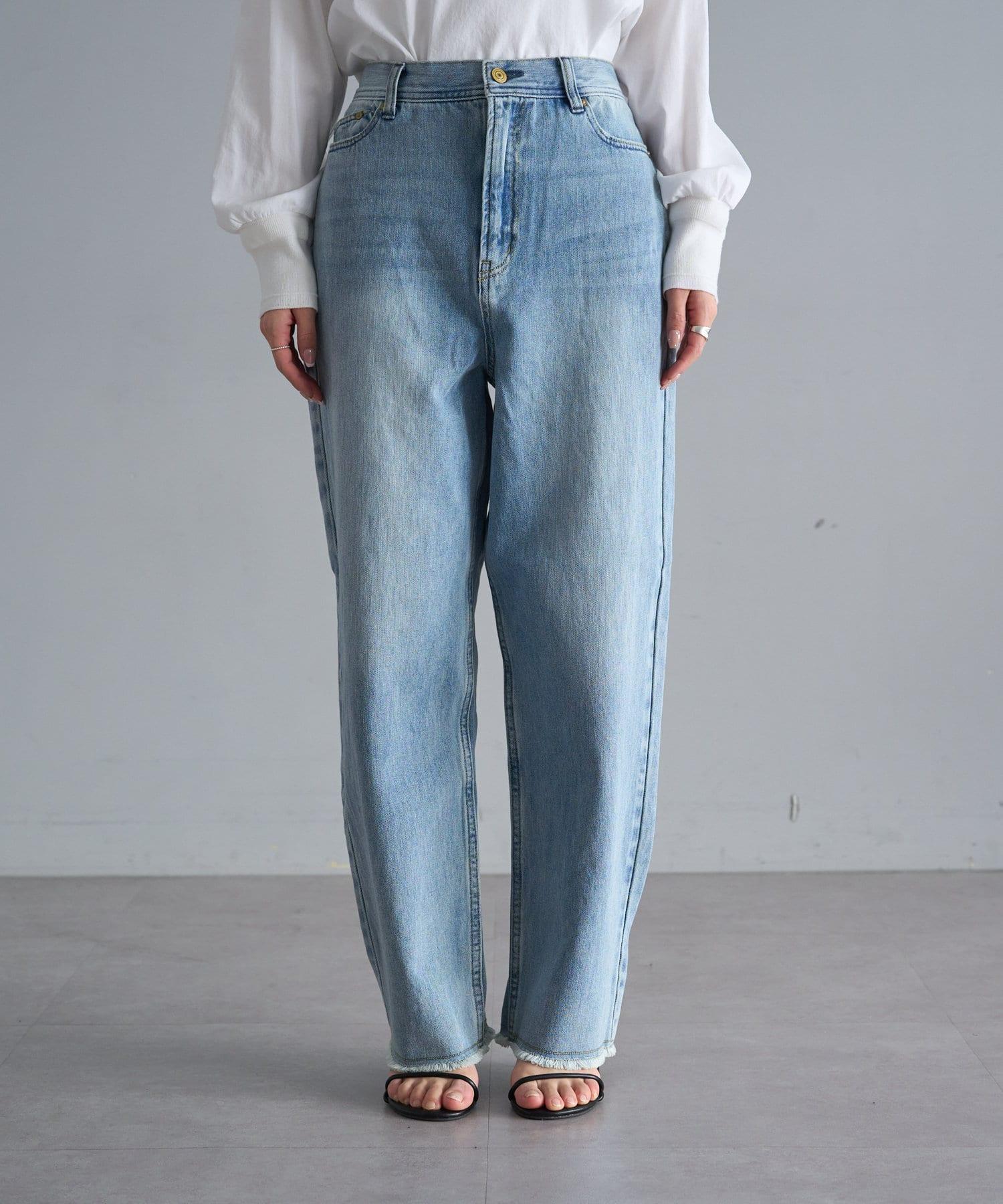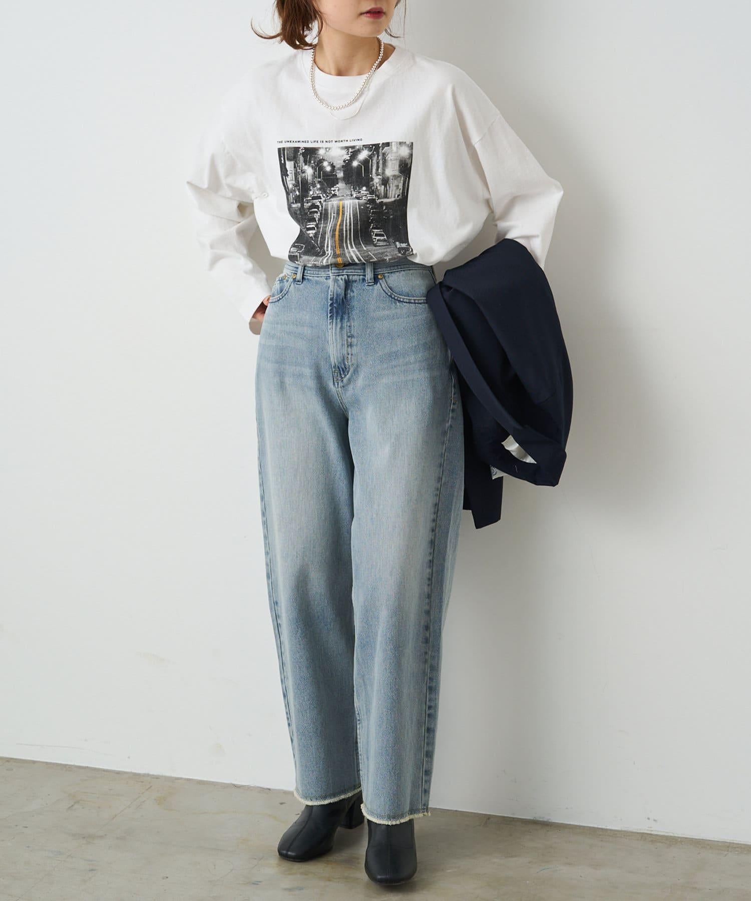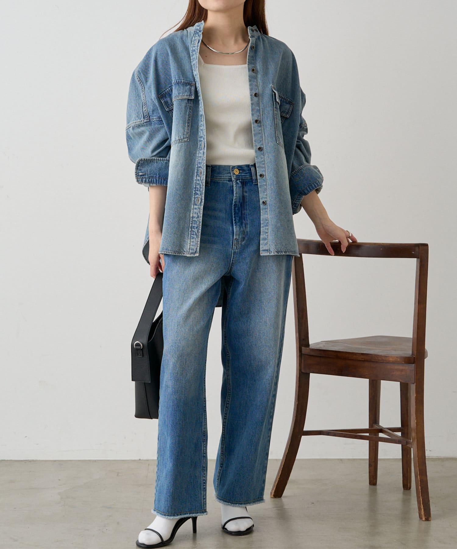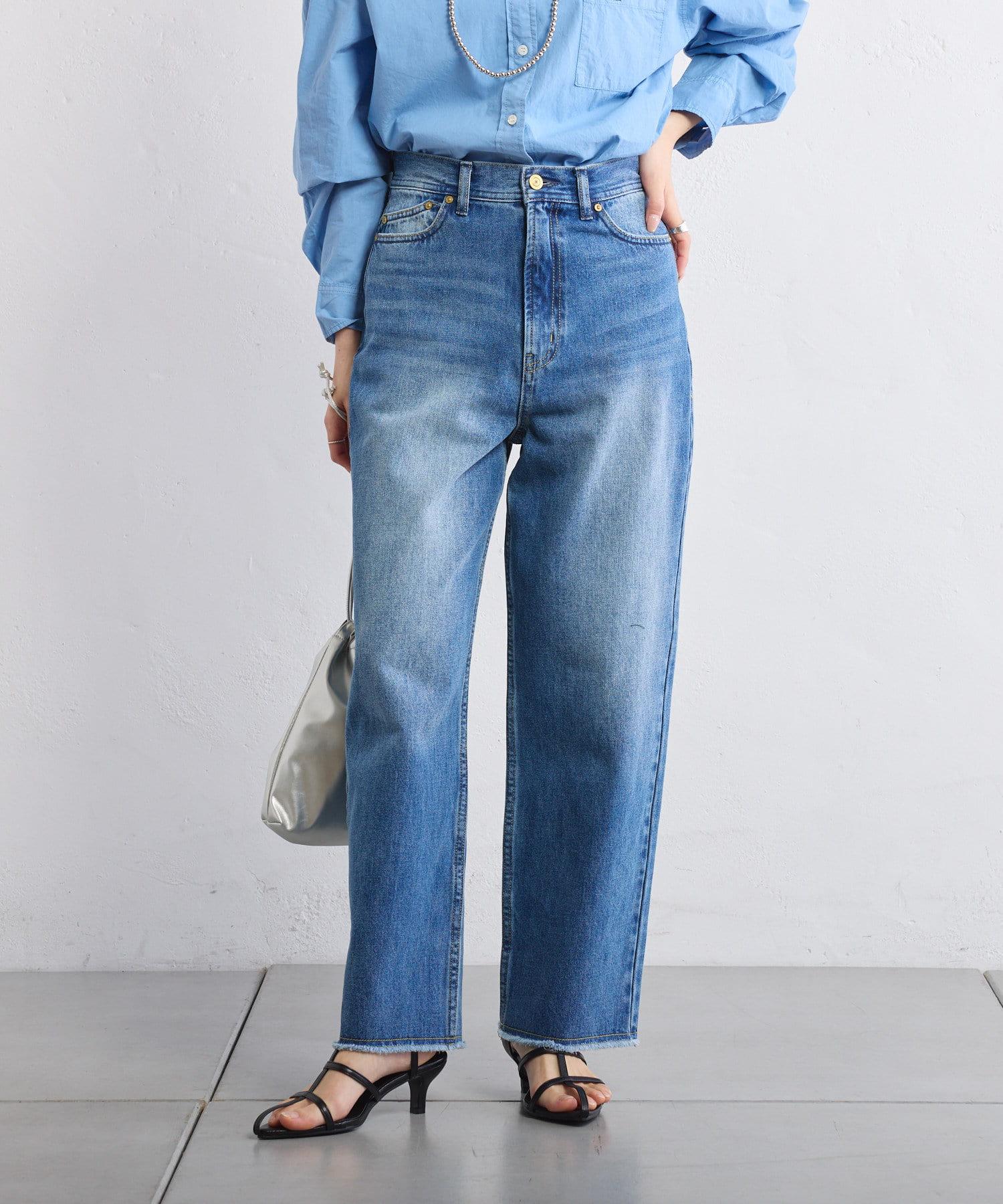 半寬大版型的直筒牛仔長褲,是裝扮衣櫥的好幫手。
