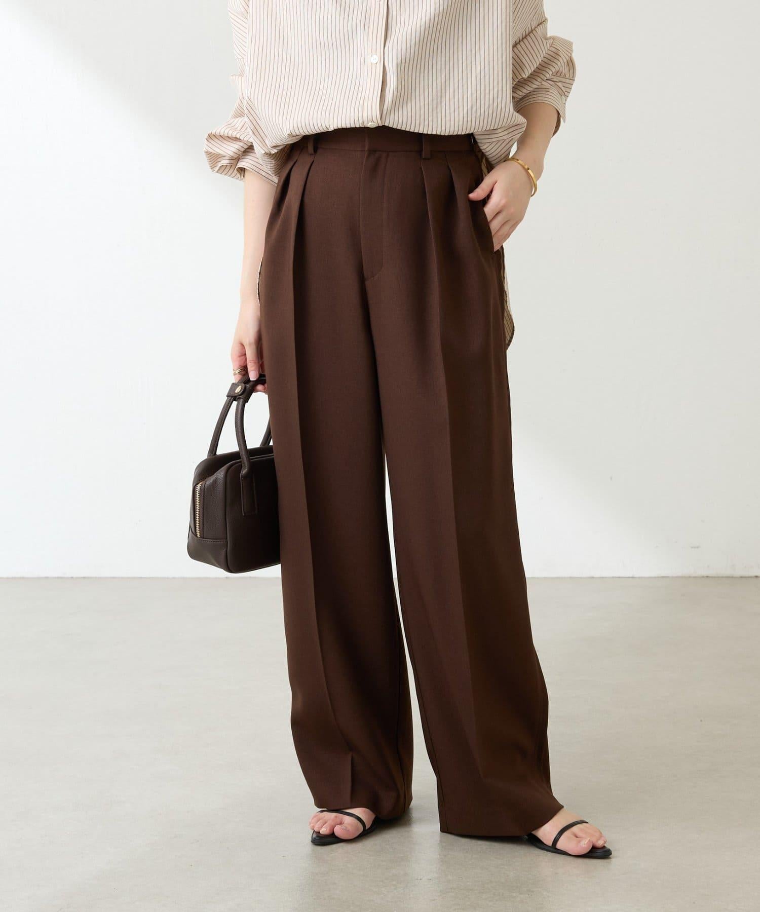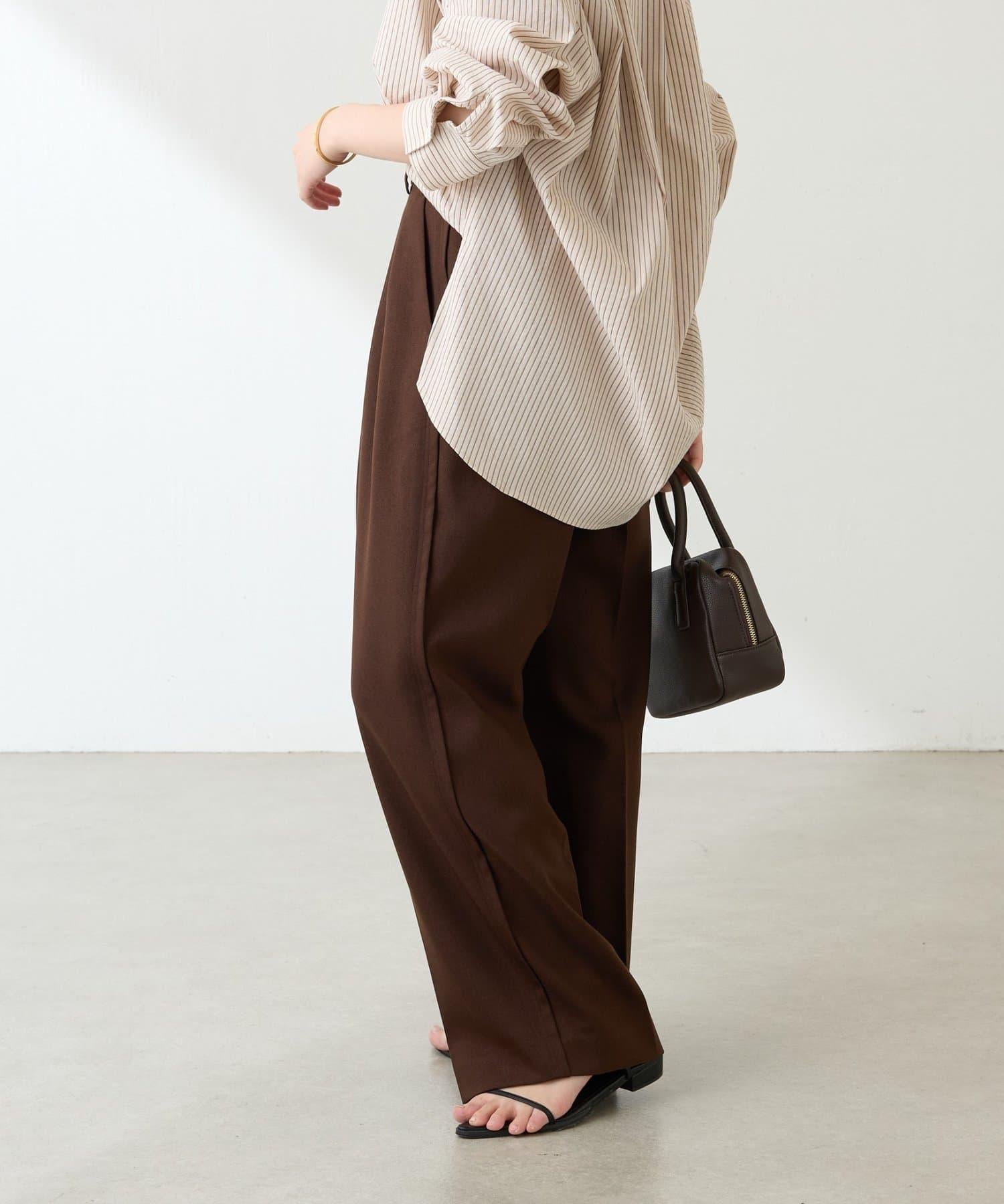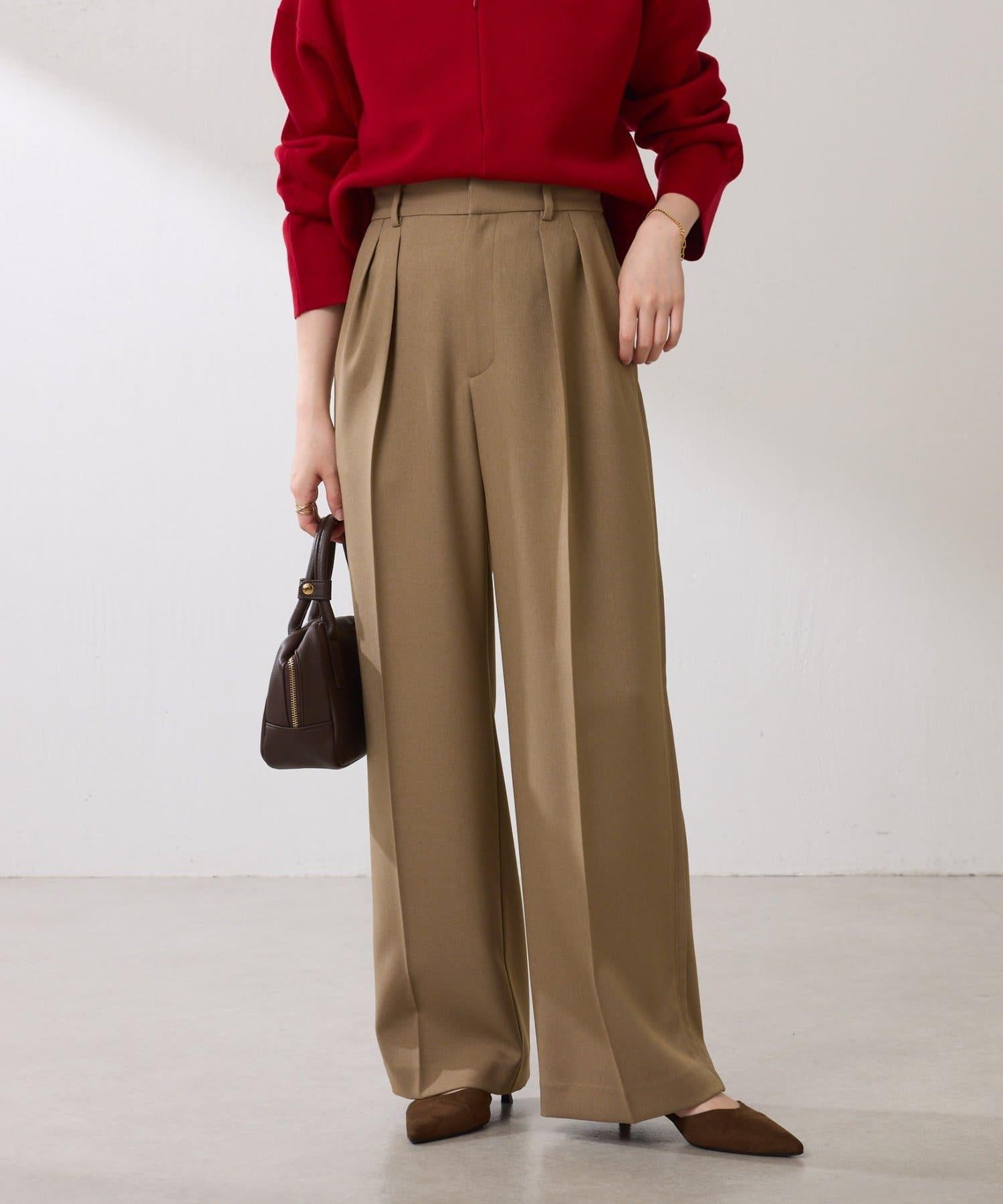【復古/修飾腿部線條】羊毛感折褶褲/卡塞特服