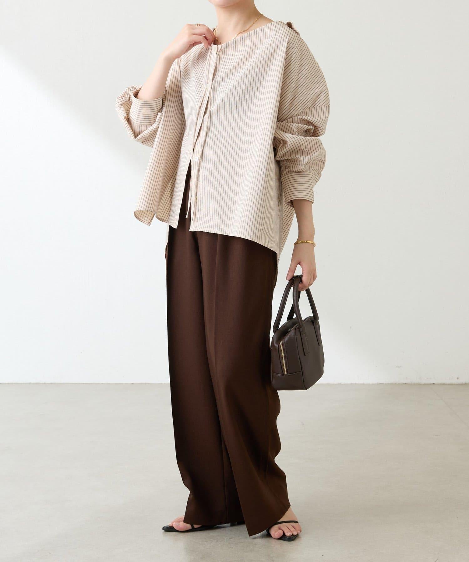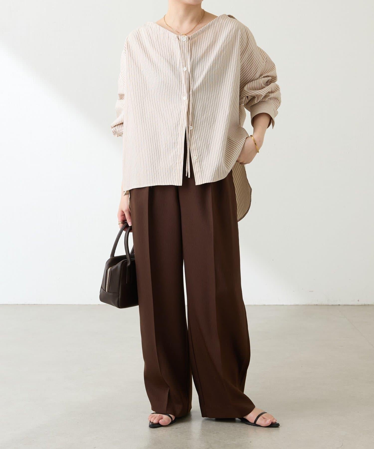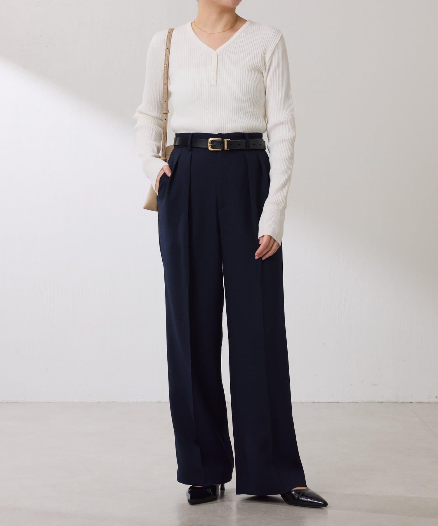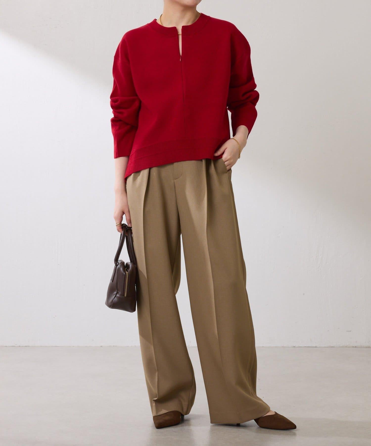 【復古/修飾腿部線條】羊毛感折褶褲/卡塞特服