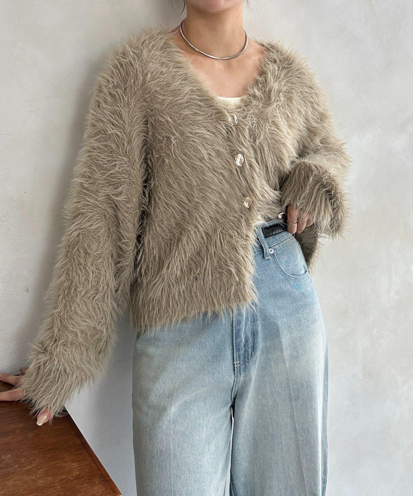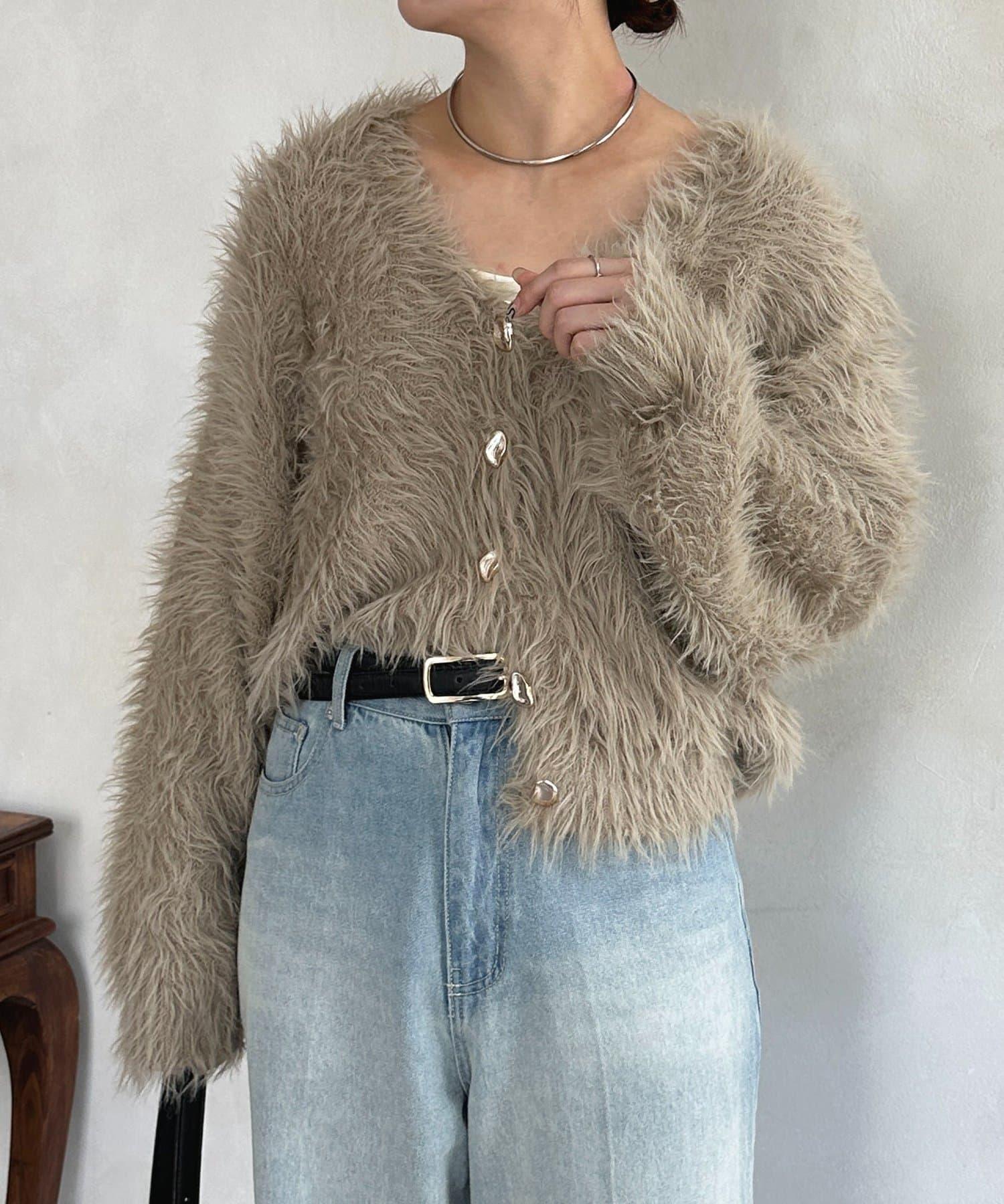 #長毛開衫 #紐扣 #發光開衫 #長毛