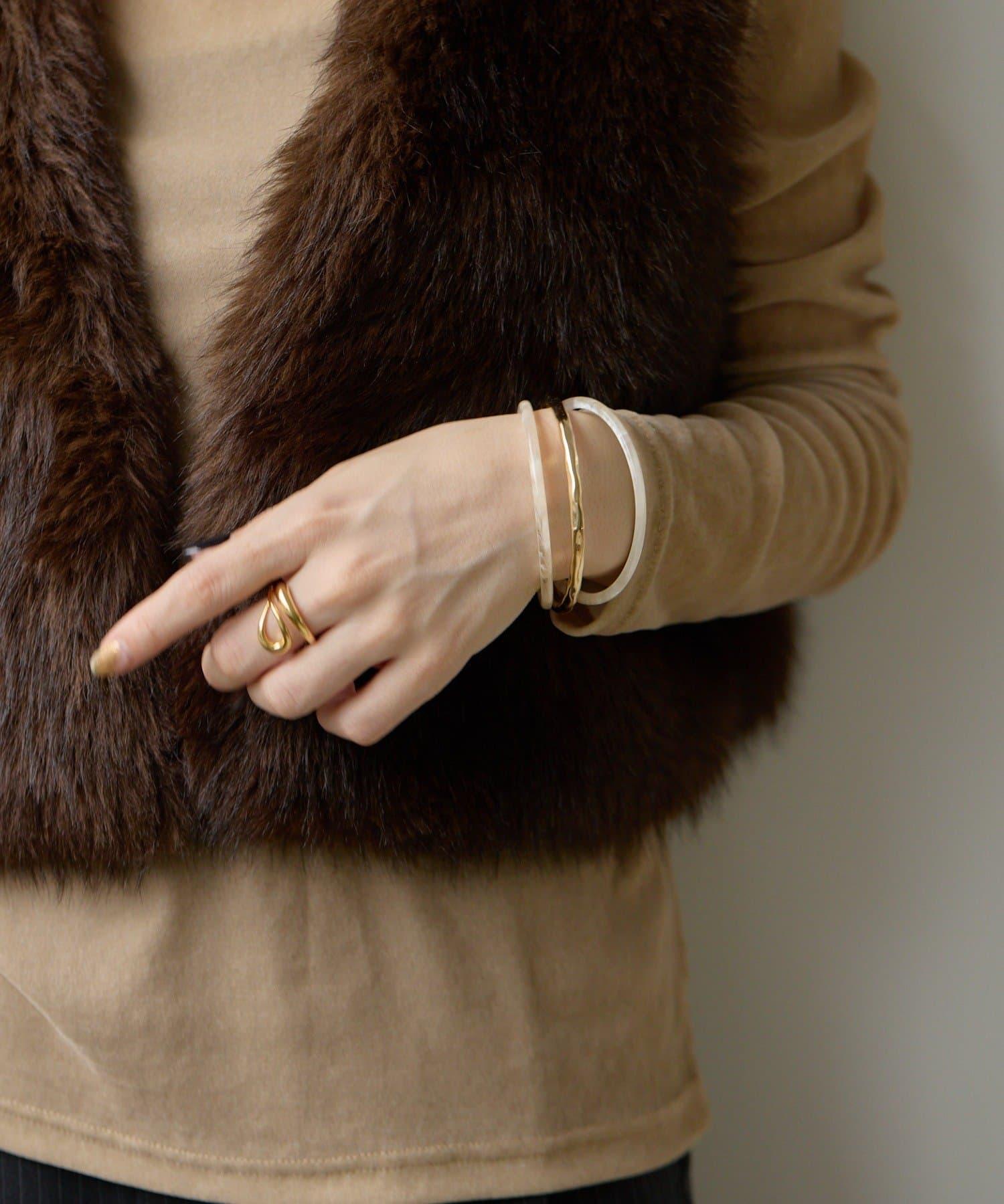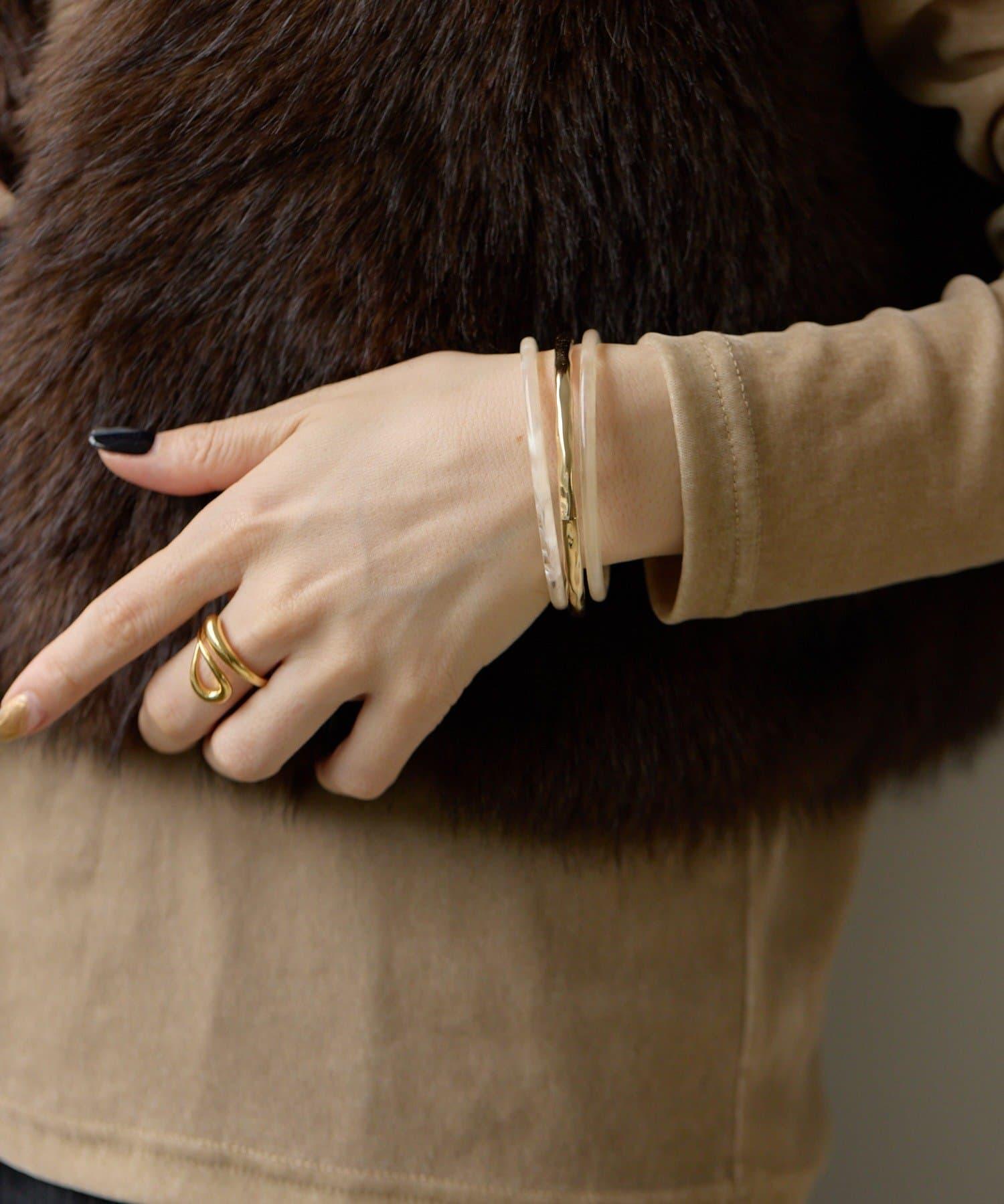 樹脂和金屬的結合散發出柔和的光澤,為手部增添了一絲優雅。