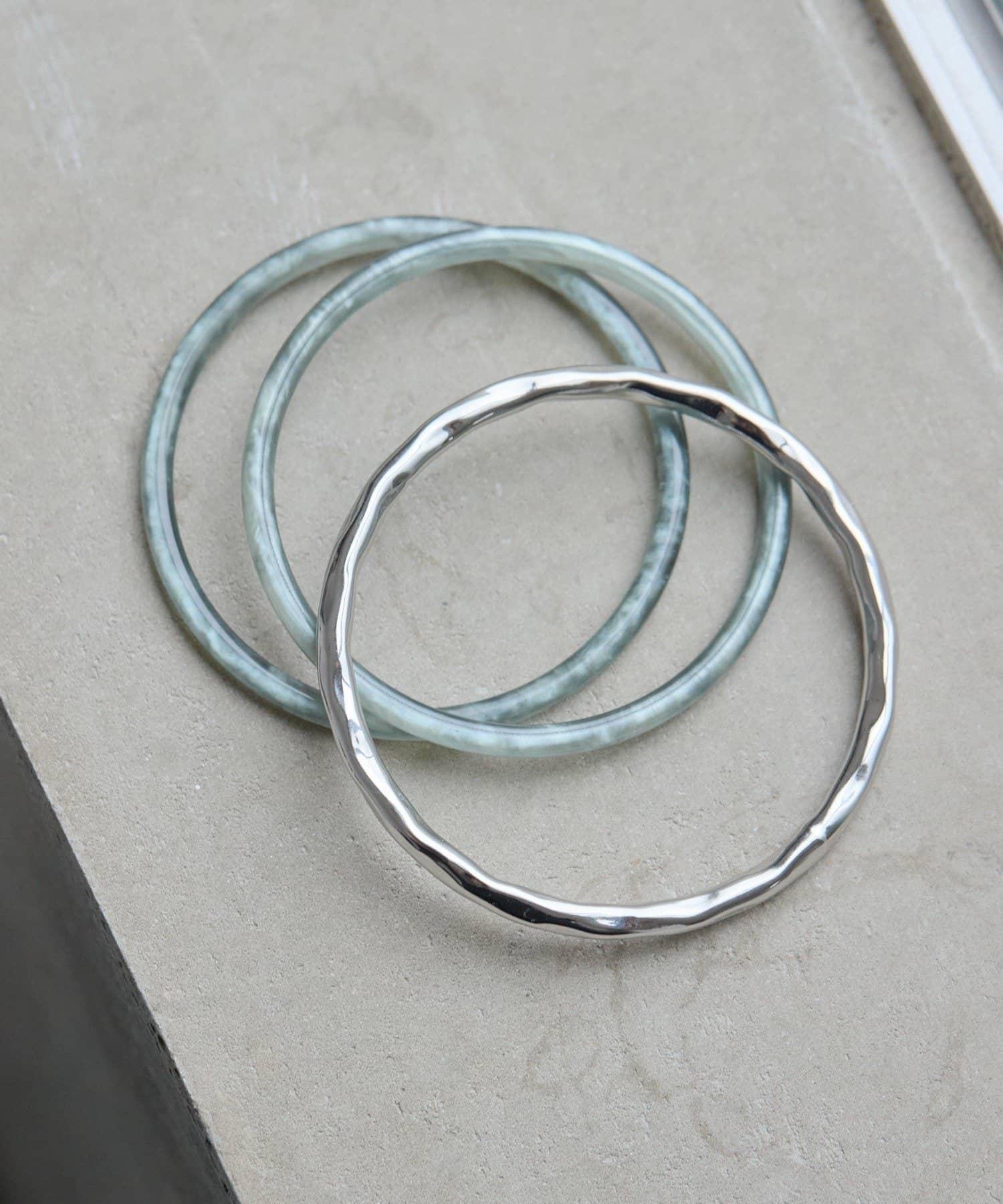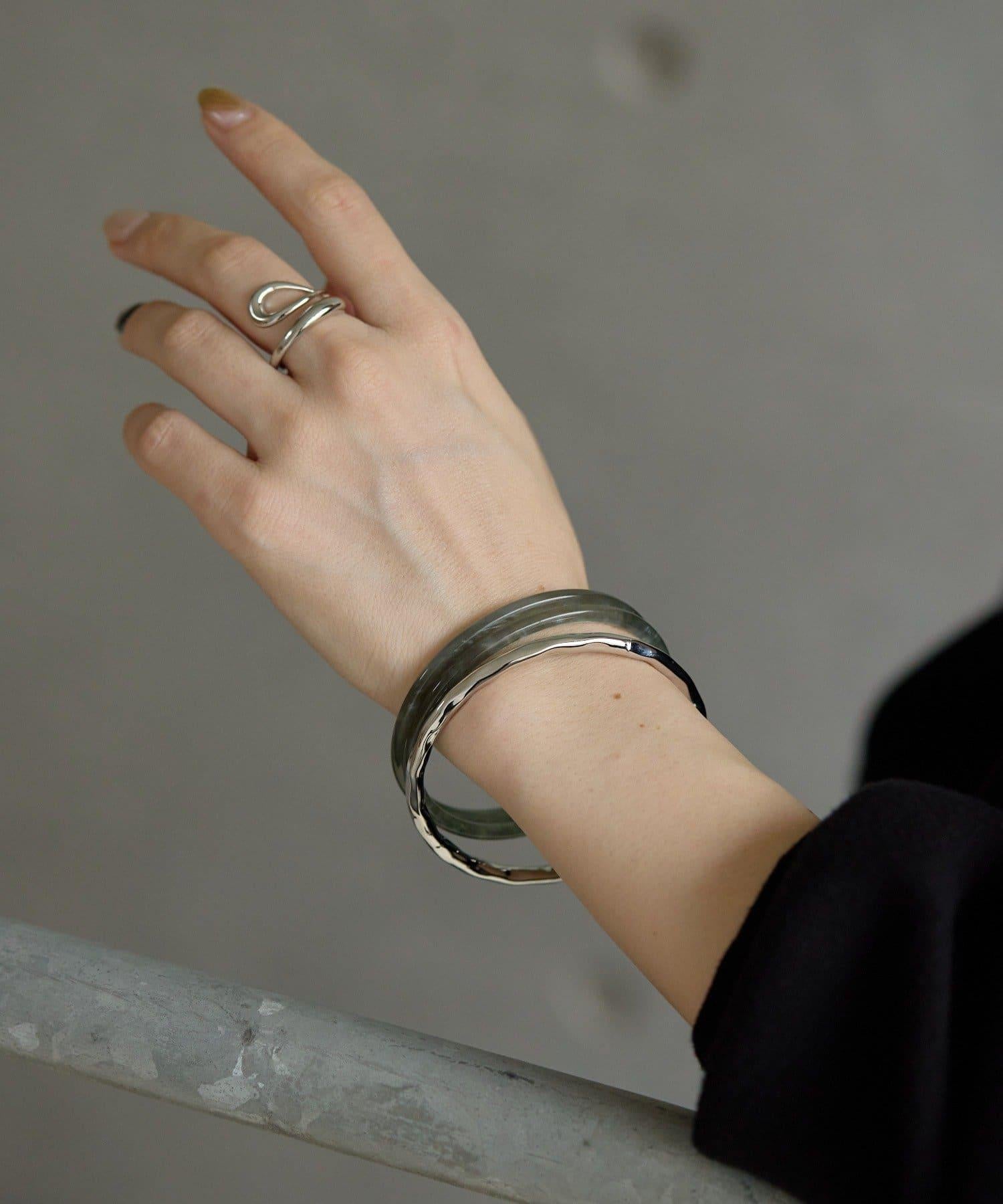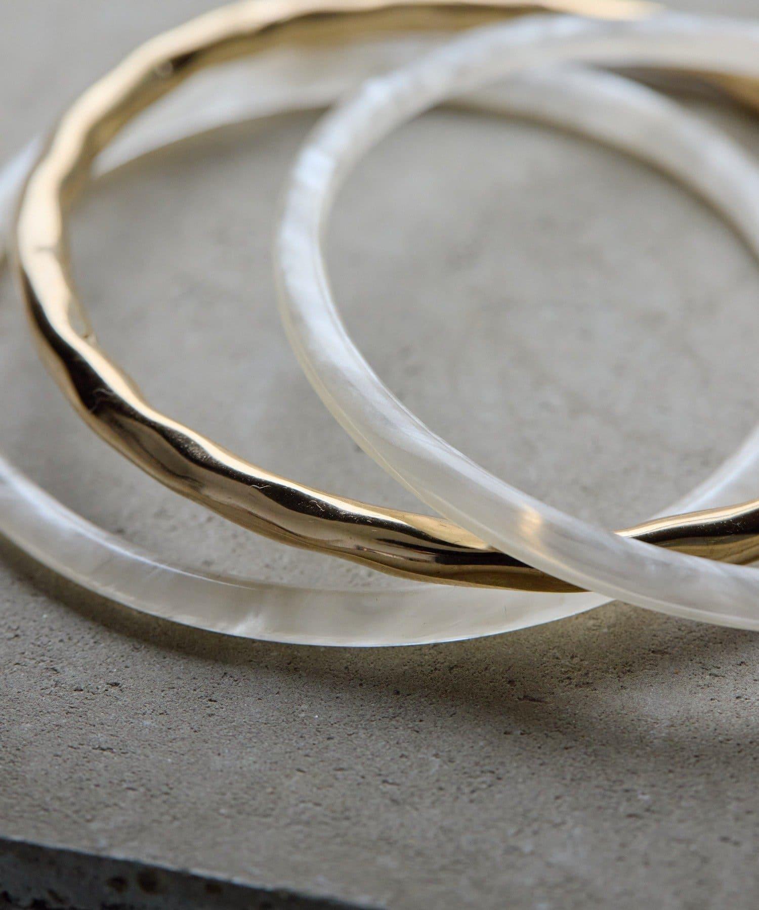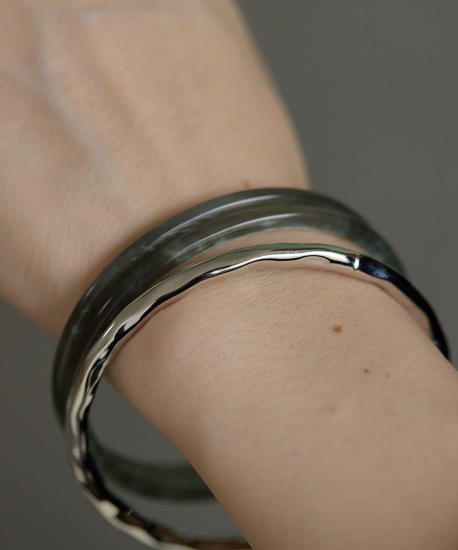 樹脂和金屬製成的手鍊套裝,散發著柔和的光澤。