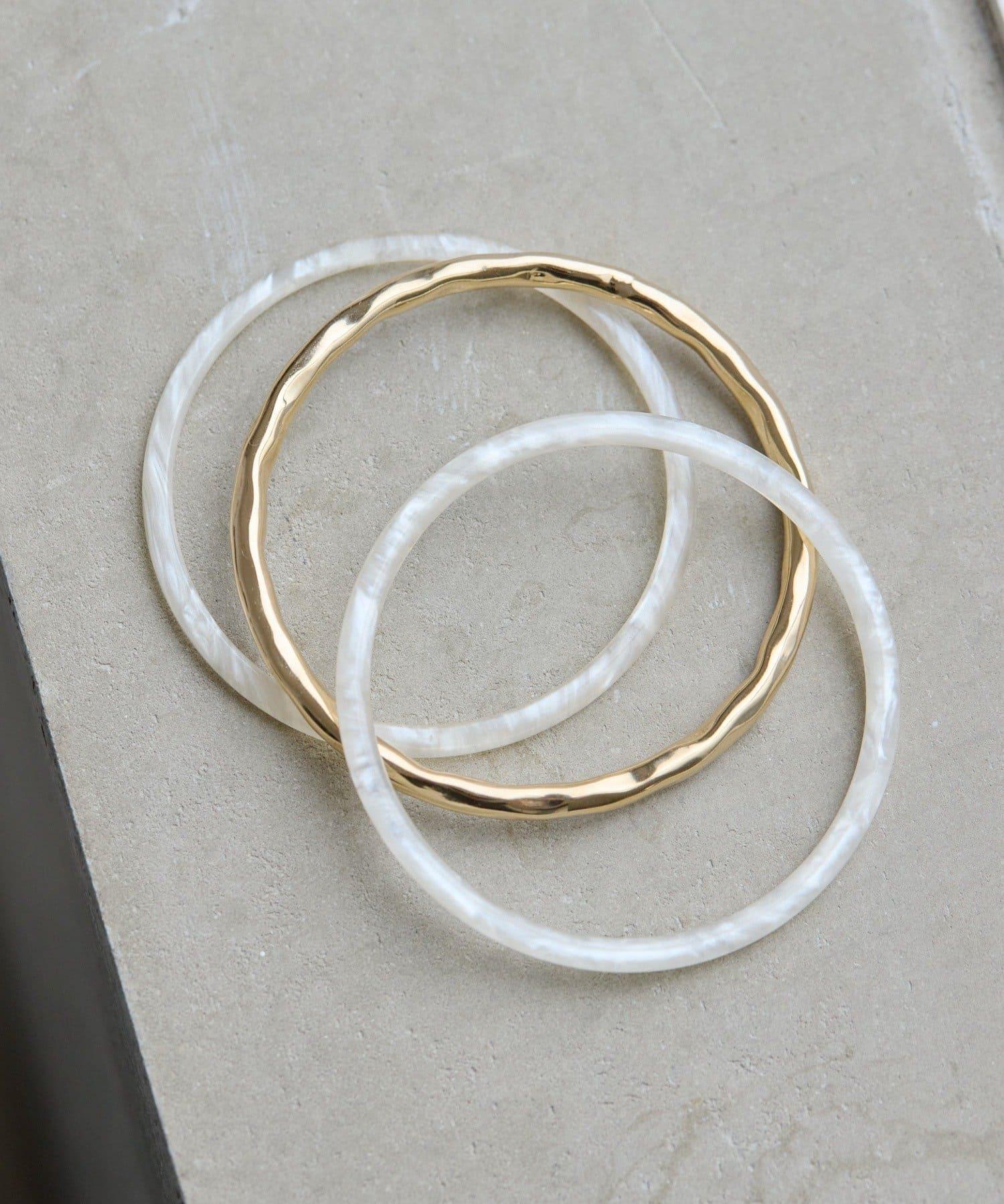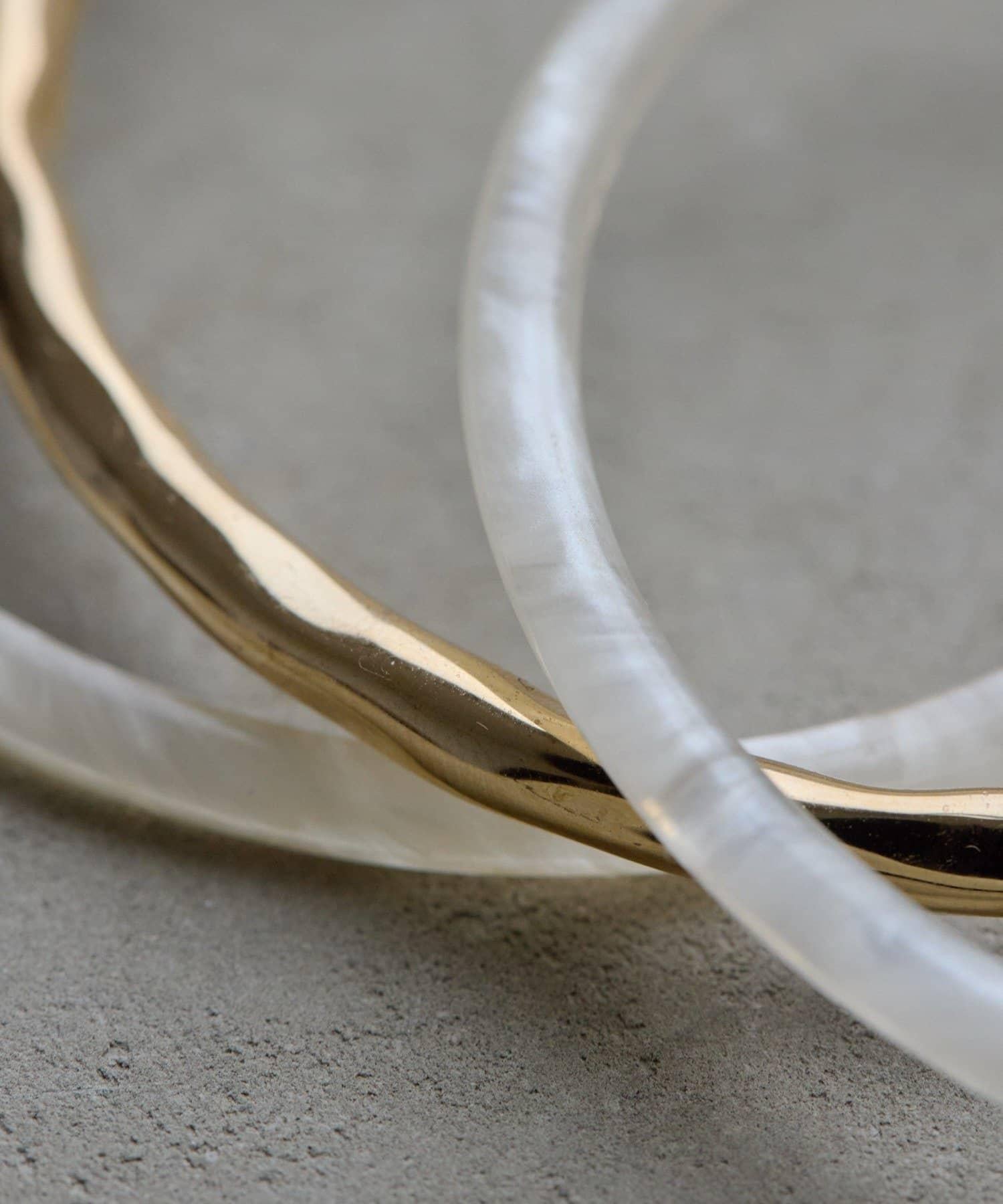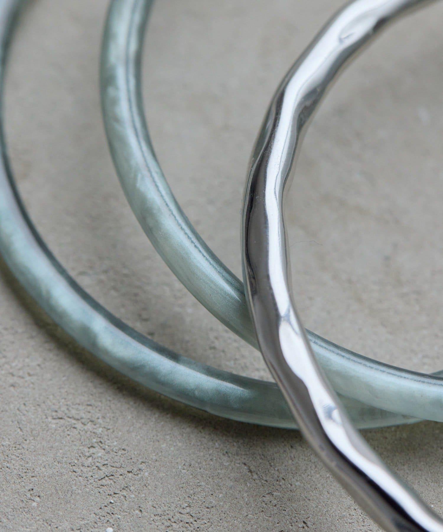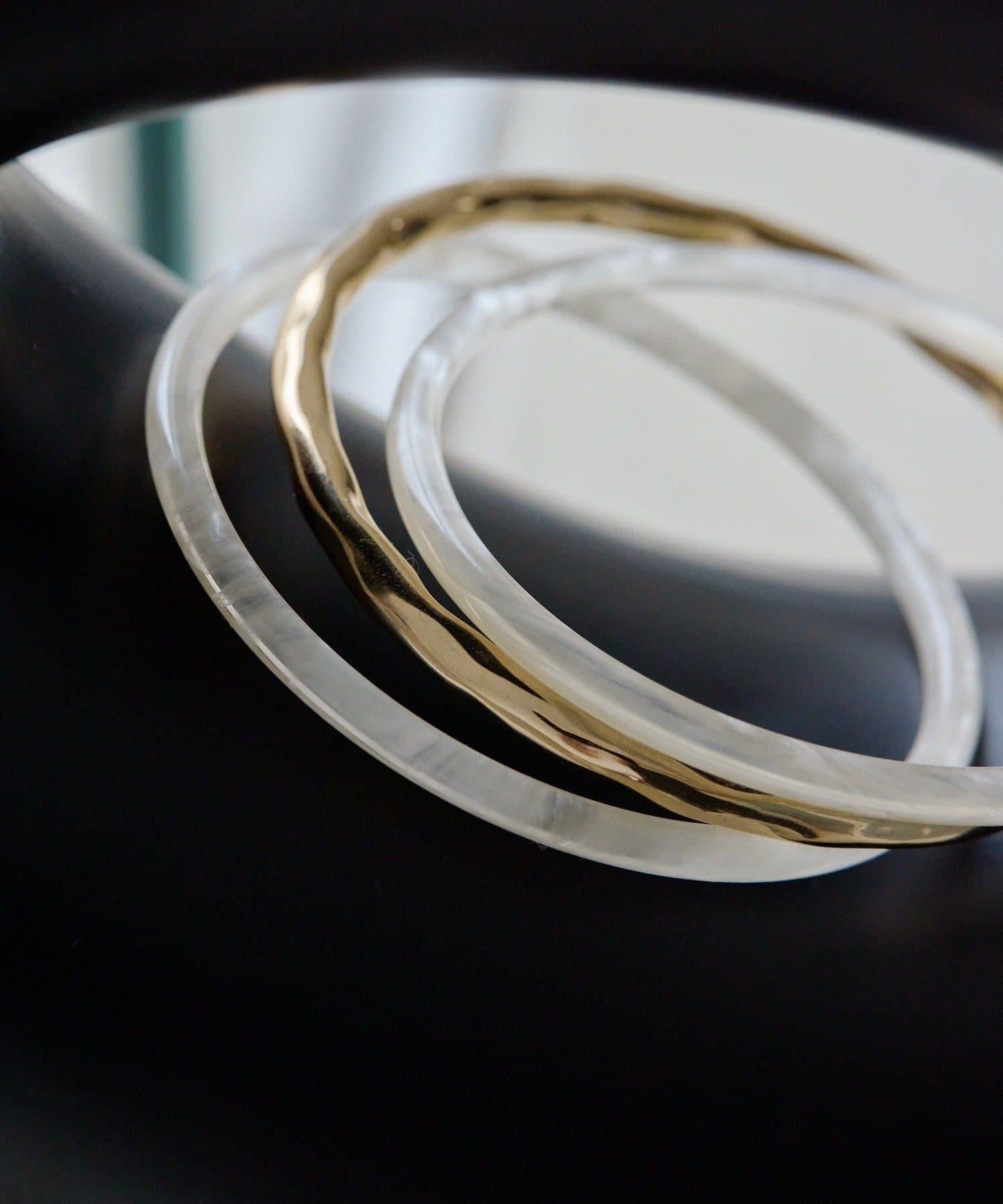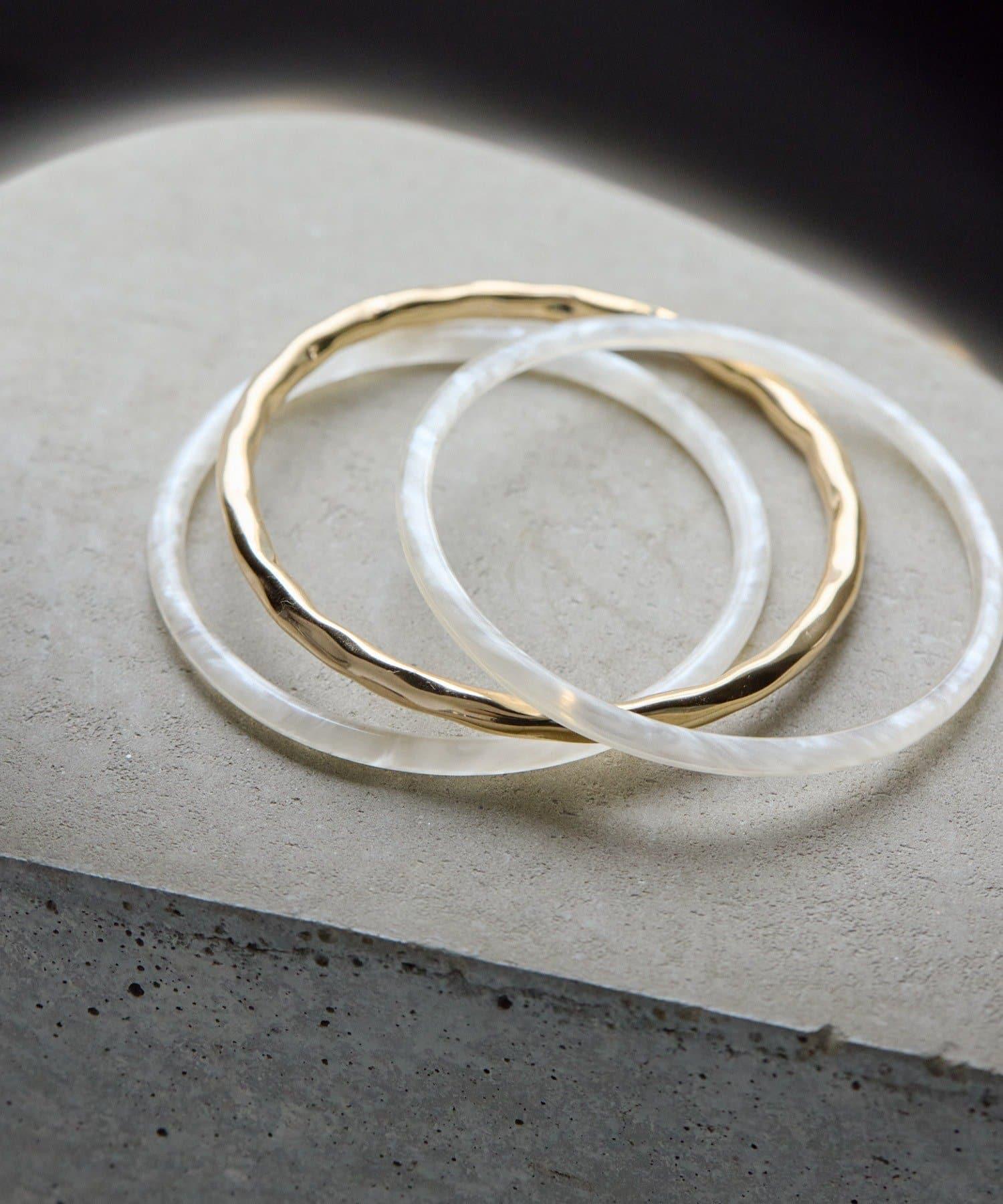 樹脂和金屬製成的手鍊套裝,散發著柔和的光澤。