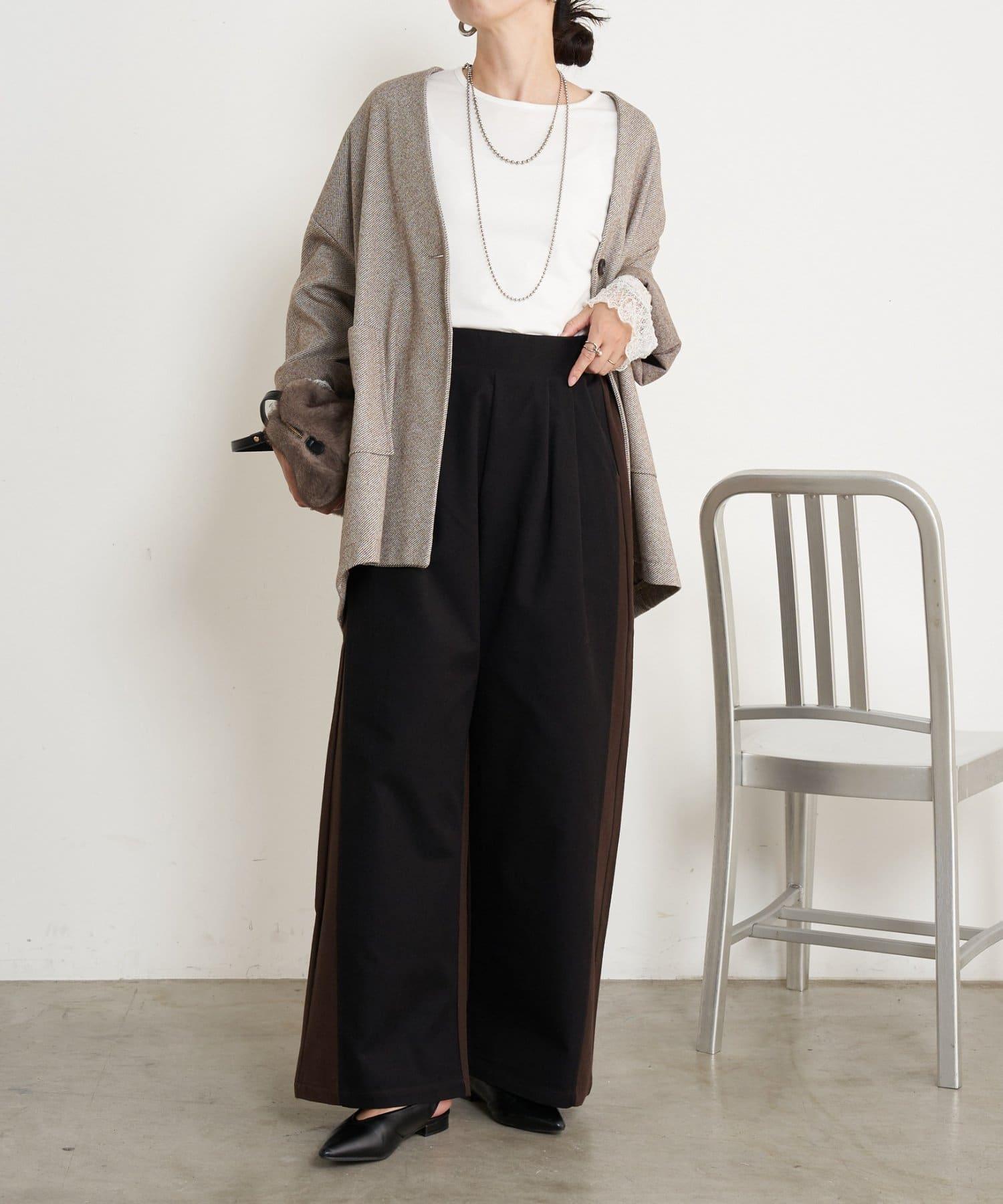 靠近內側的顏色切換和腰部的雙襉設計使其具有出色的修身效果。