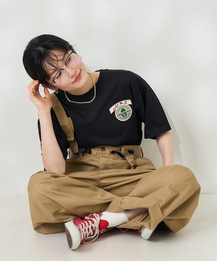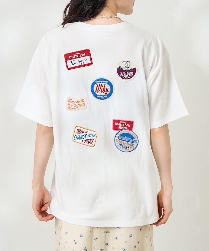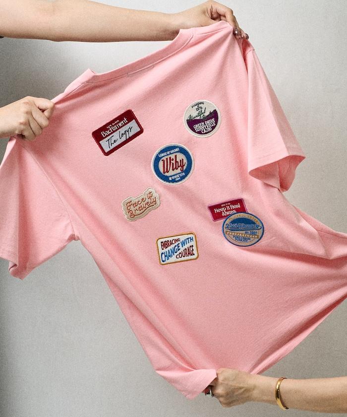 這是一款前後都有補丁、極具衝擊力的 T 恤。