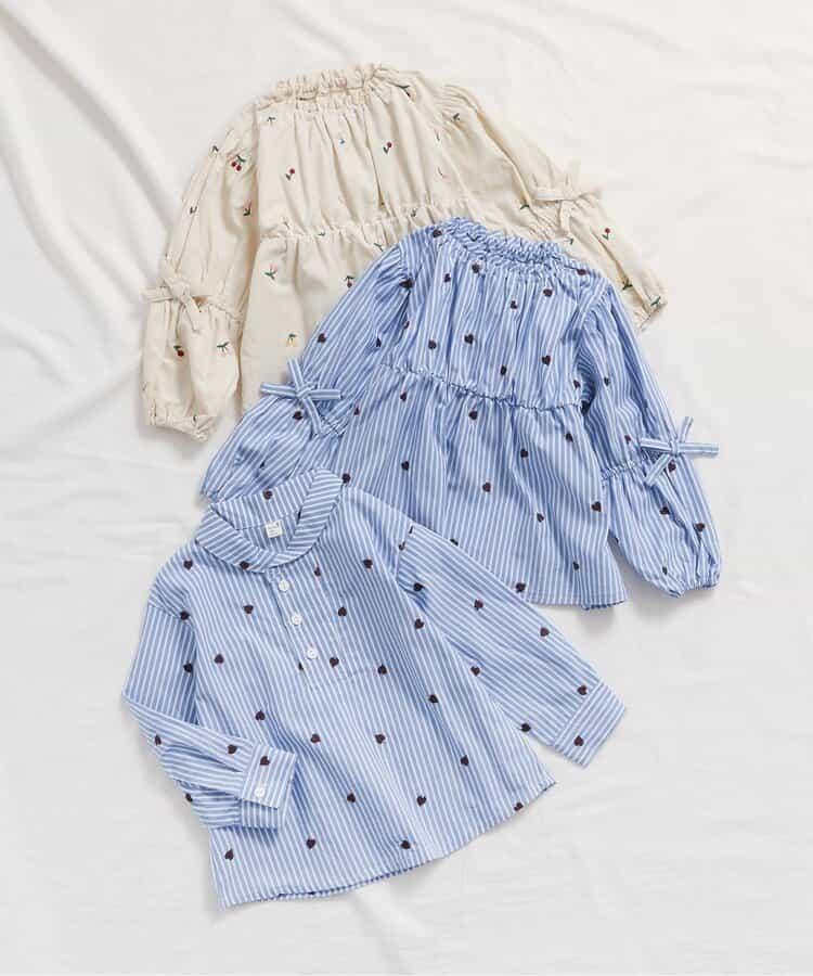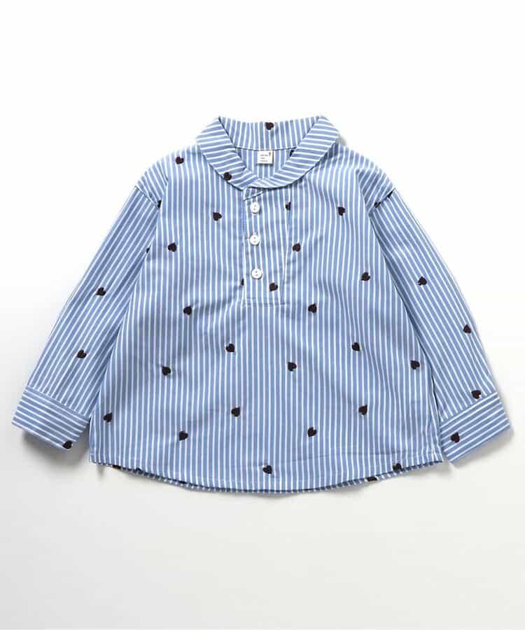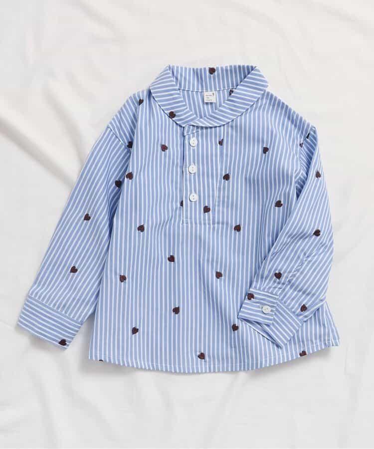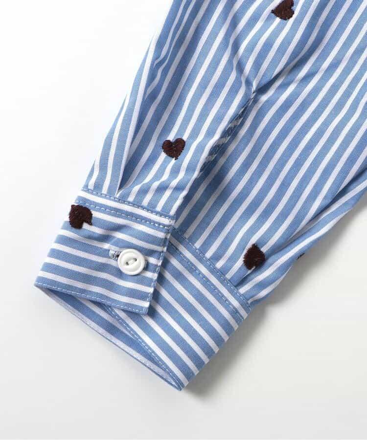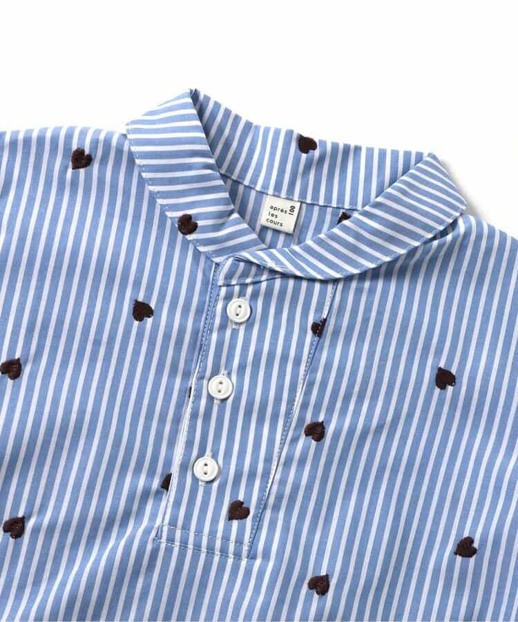 apres les cours 的"[Link] Heart Embroidery Stripe Shirt "是在自然風格中加入精巧設計的時尚單品*也推薦給上學和去學校的時候穿♪。