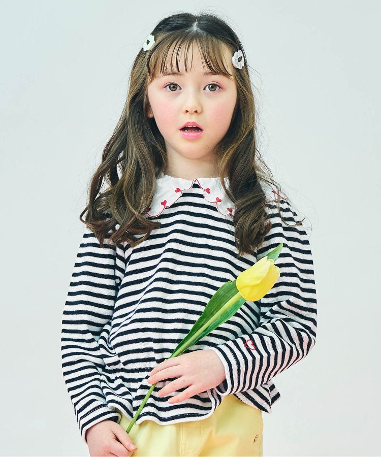 時尚的扇形衣領上有許多心形圖案♪。