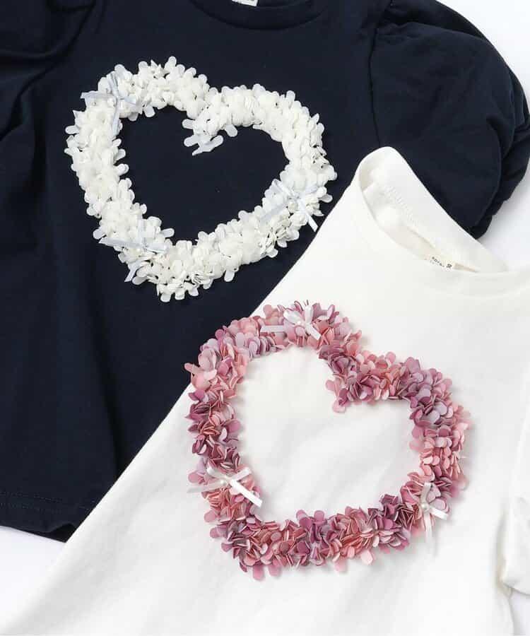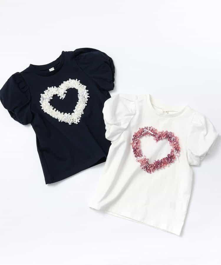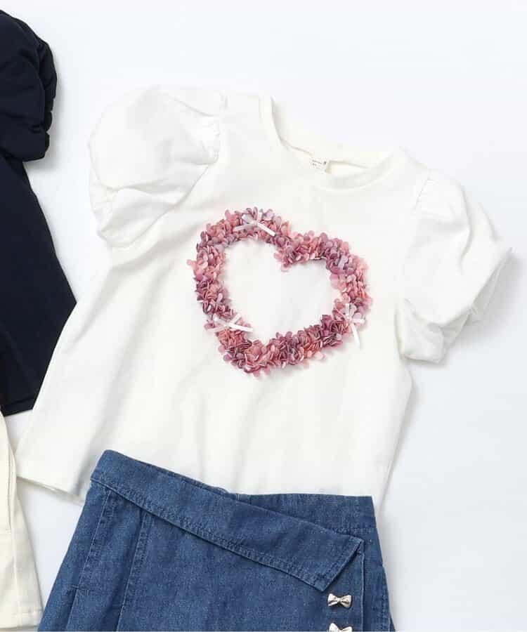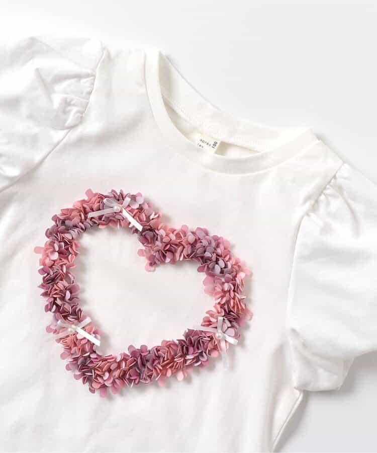 來自 apres les cours 的 "心形圖案氣球袖短袖 T 恤 "是一款時尚單品,為自然風格*增添了微妙的設計。