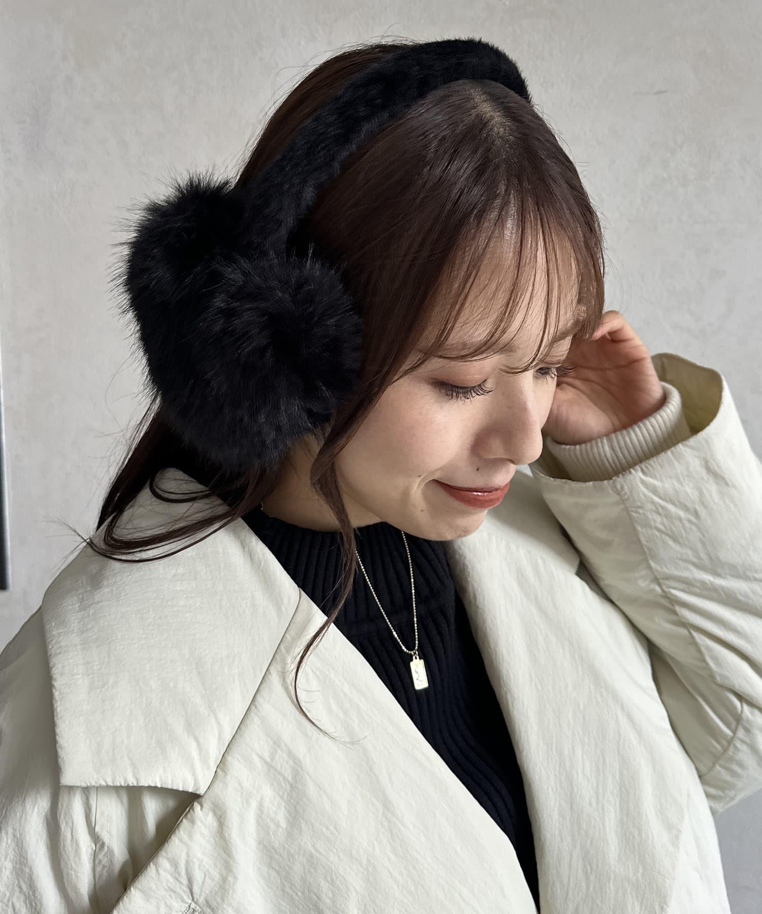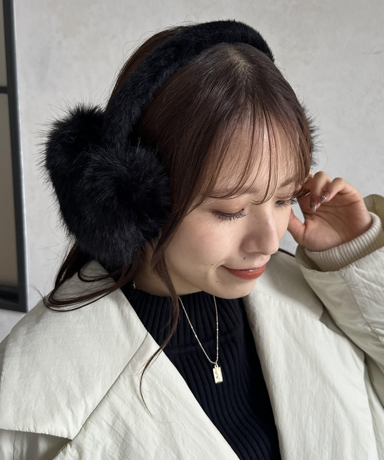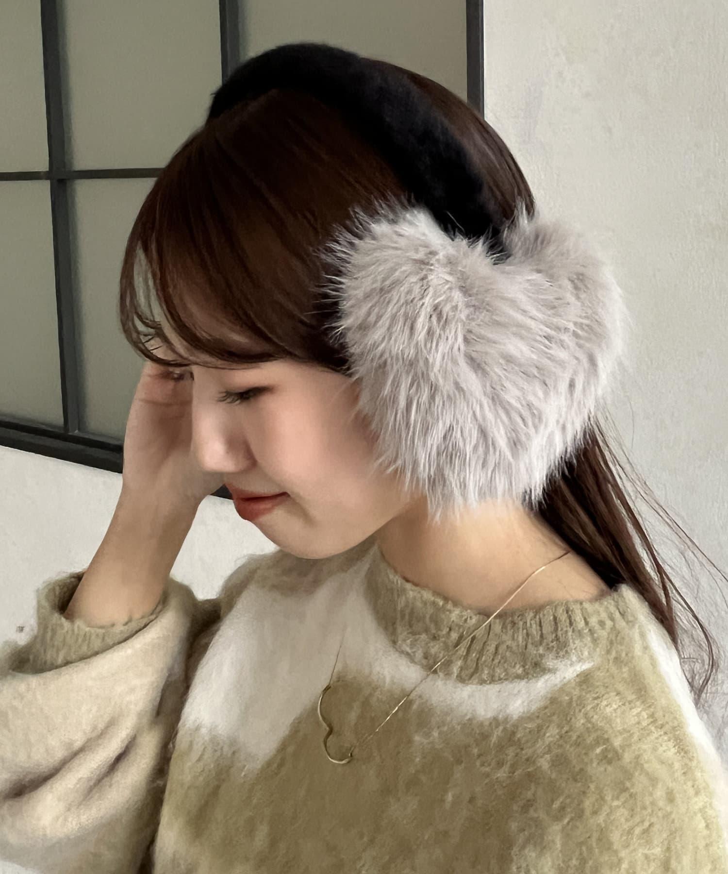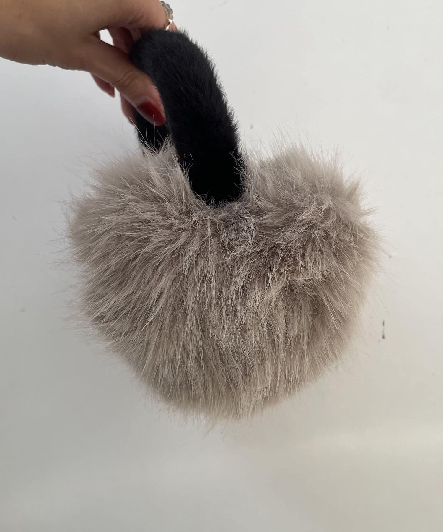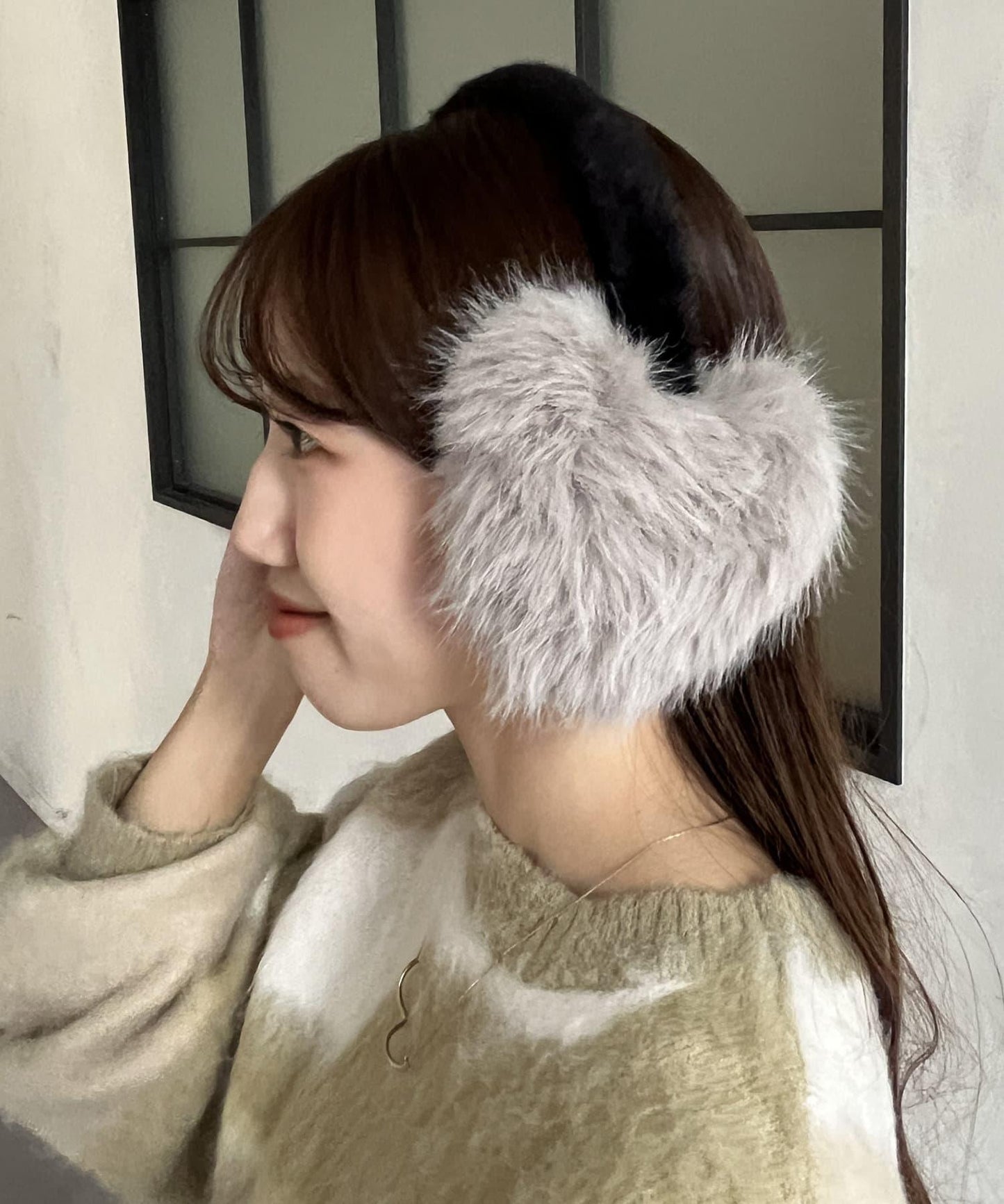 帶有心形圖案的人造皮草耳罩。