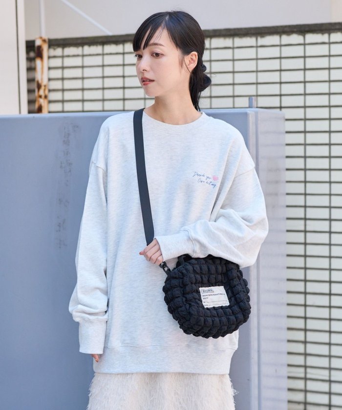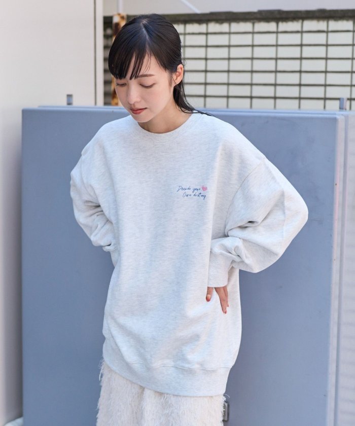 將 T 恤上流行的心形圖案印花融入運動衫中。