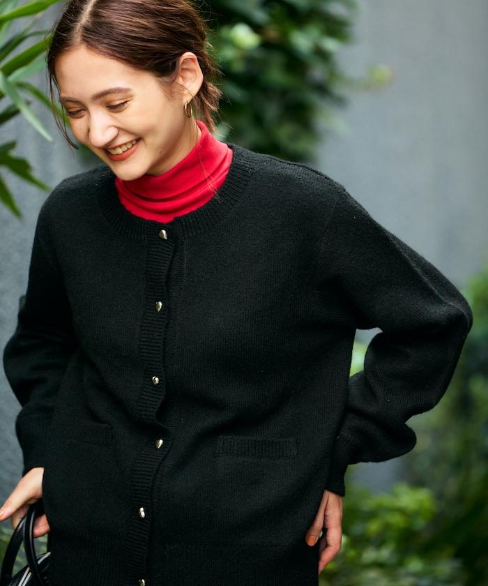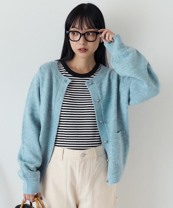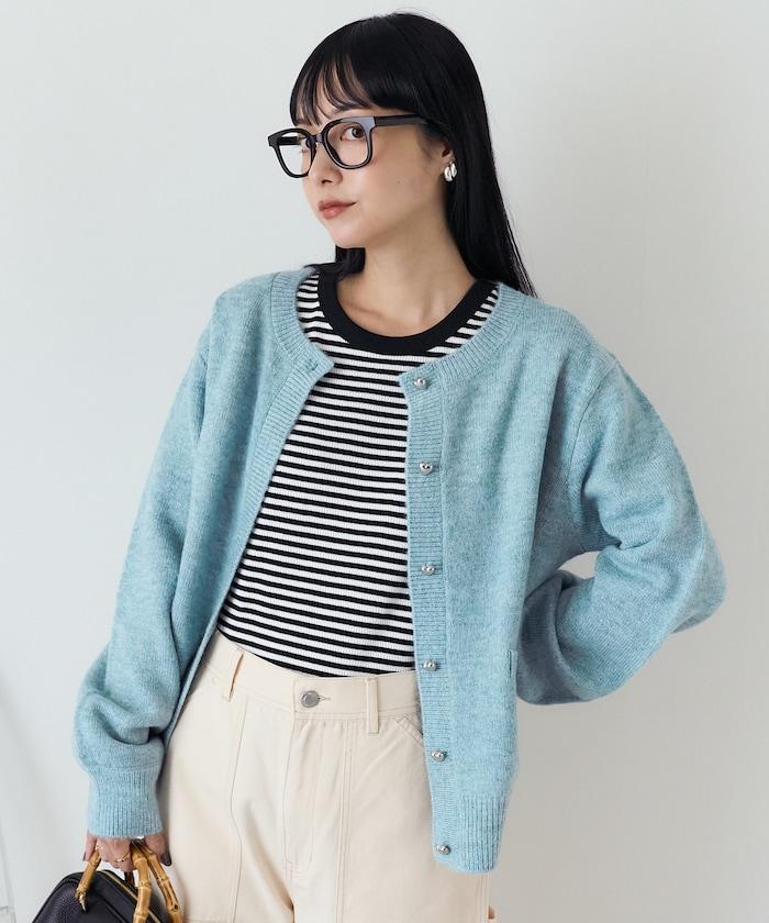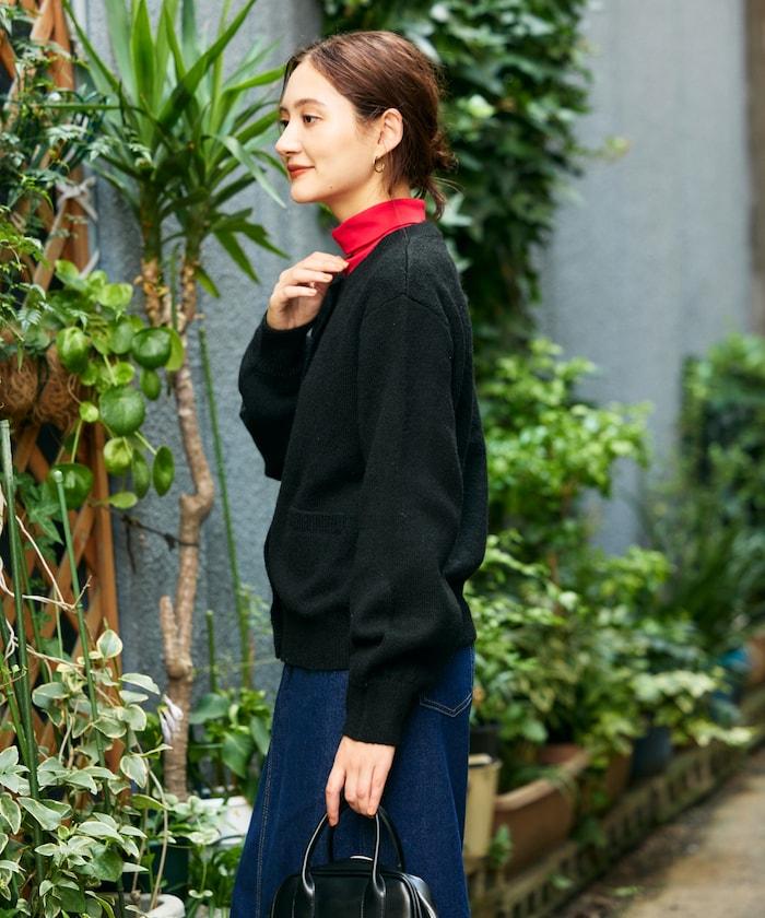 它既可作為條紋圖案的內搭,也可作為釦子全部扣上的套頭款式。