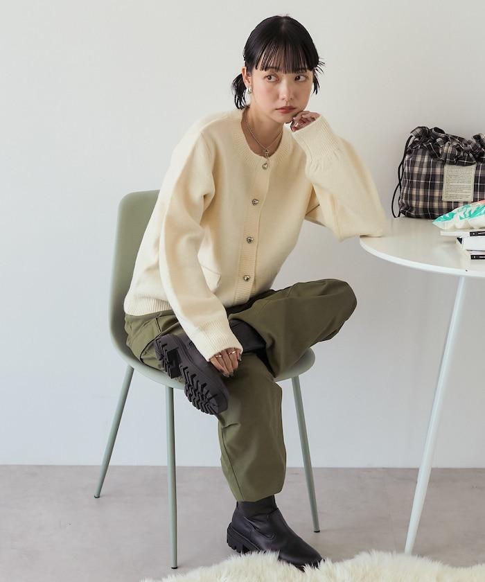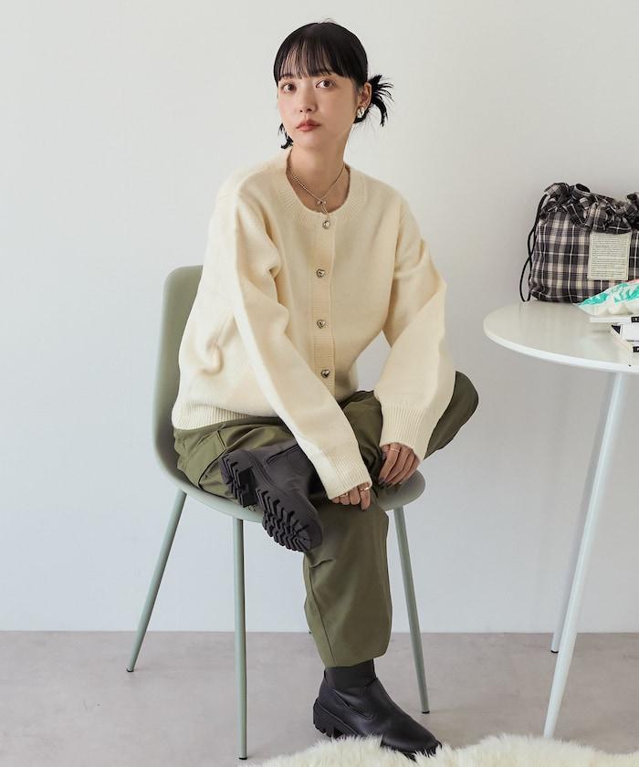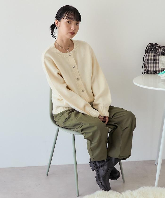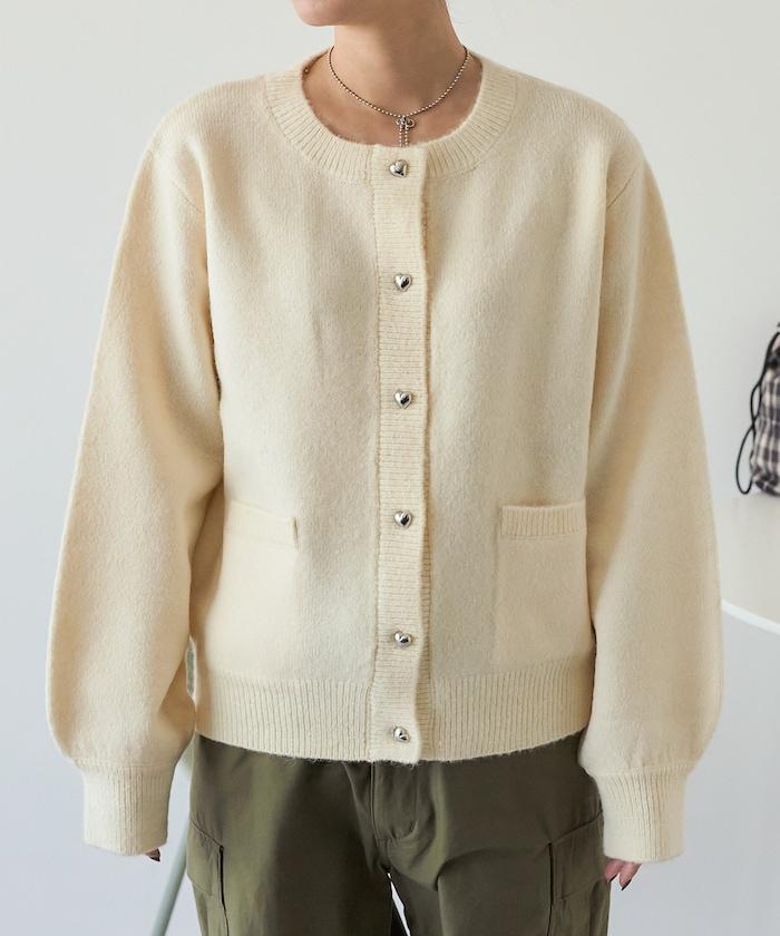 開衫上的原創心形紐扣採用精挑細選的材質和顏色。