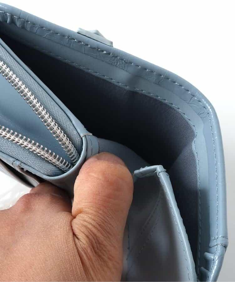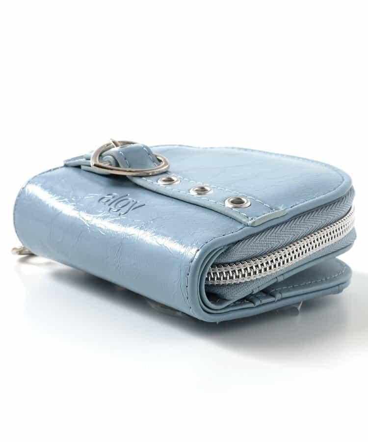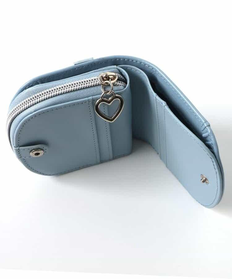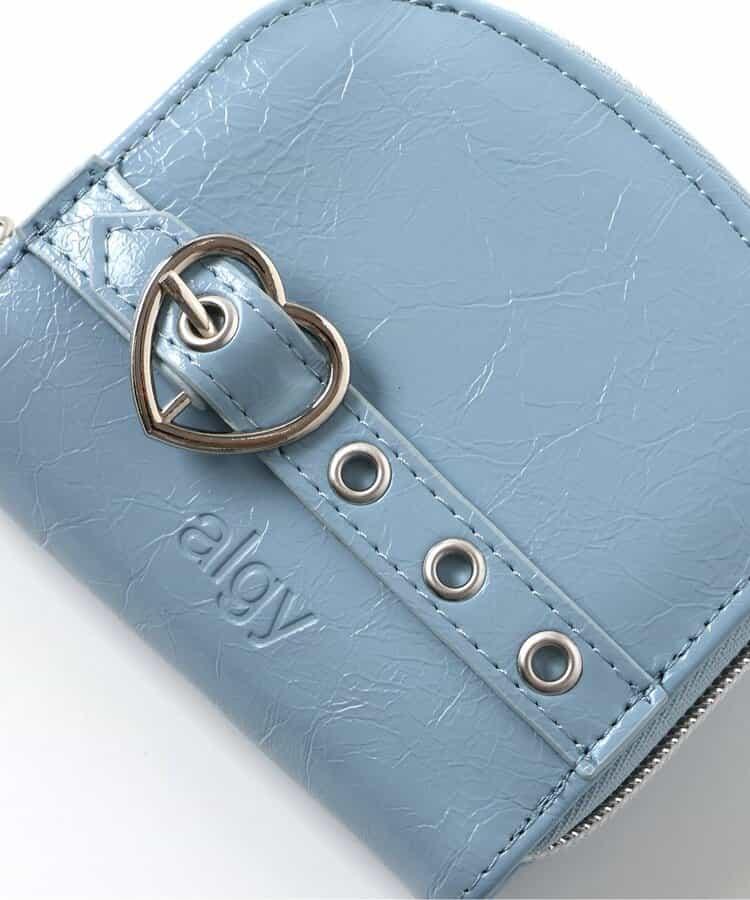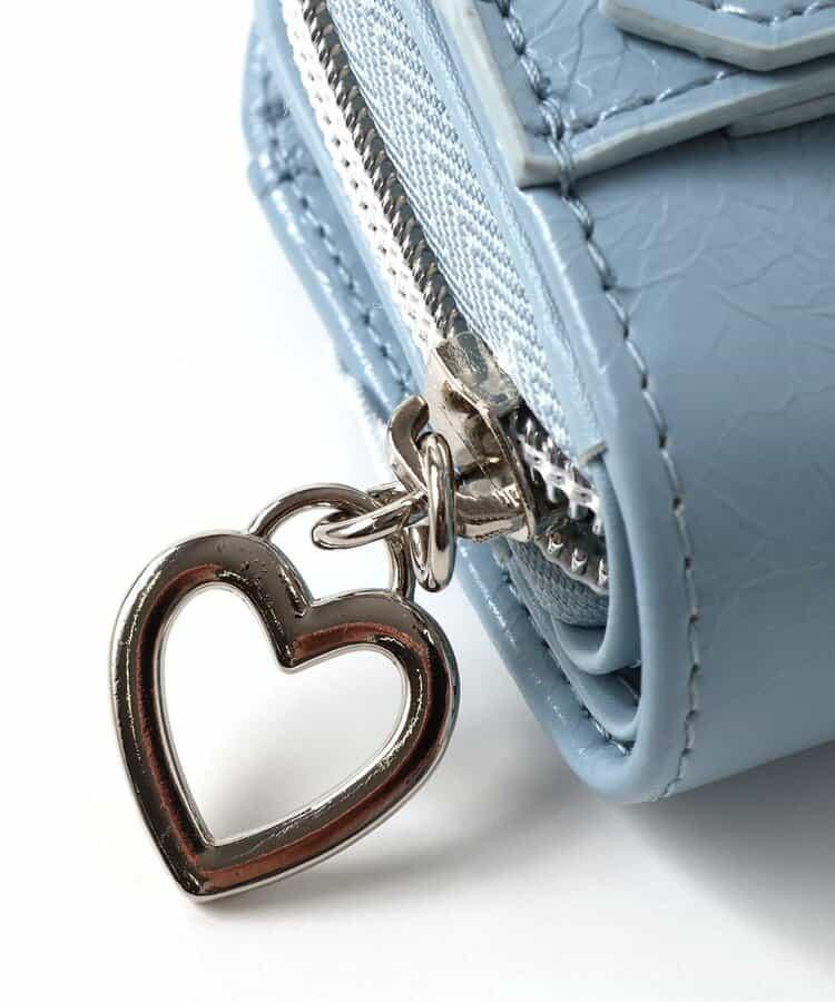心形腰帶和裂紋人造革讓它 "更成熟一點......" 這款雙摺錢包的設計與 "我想擁有成熟一點的東西...... "相得益彰。