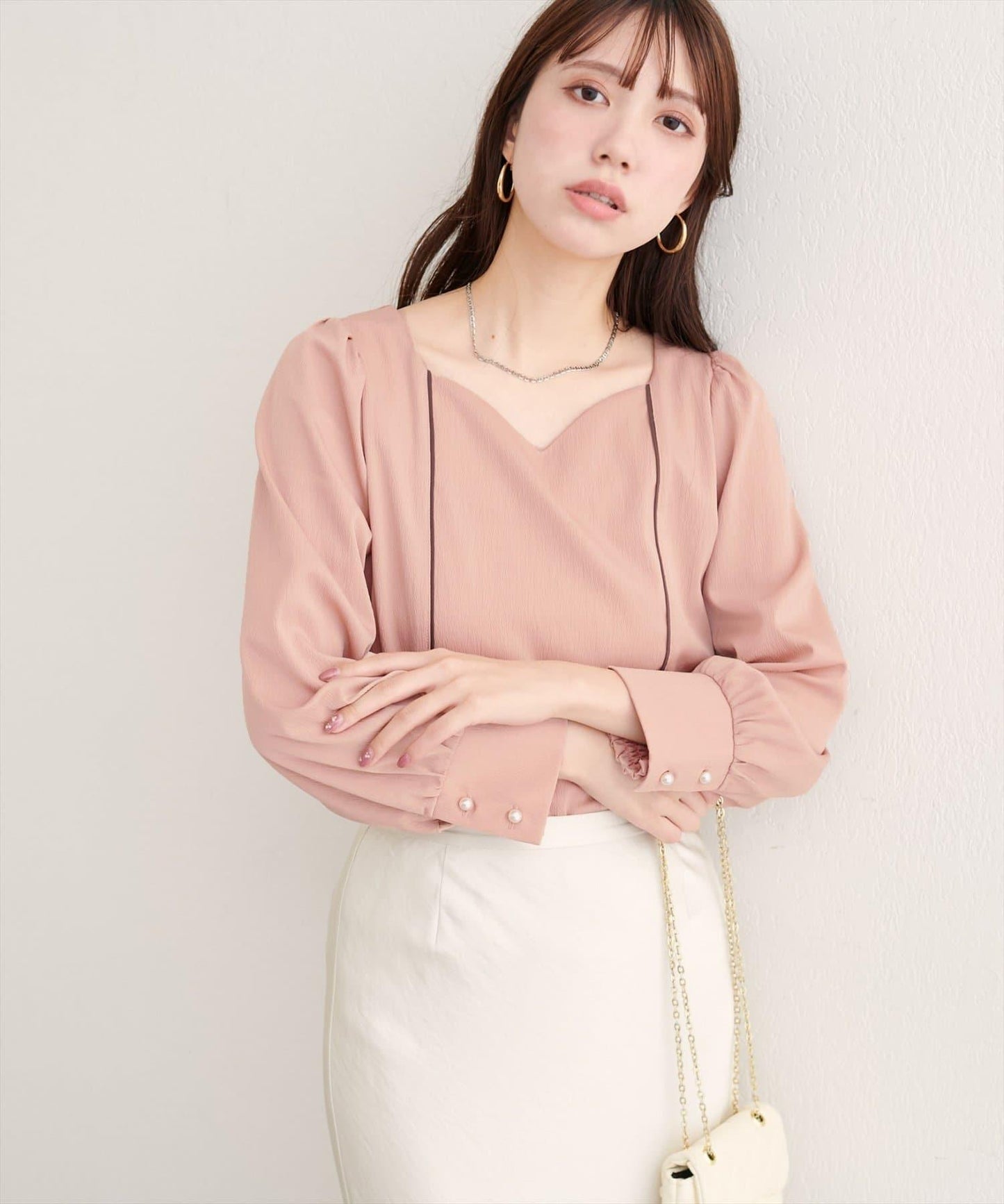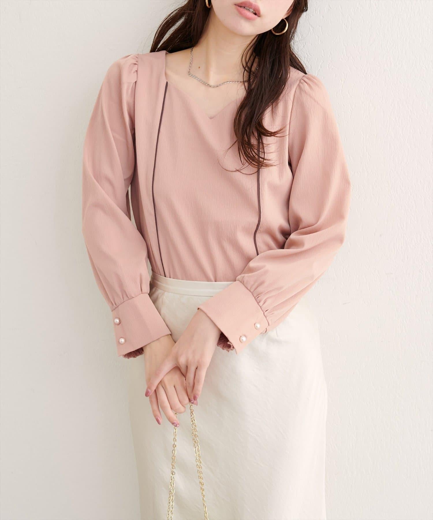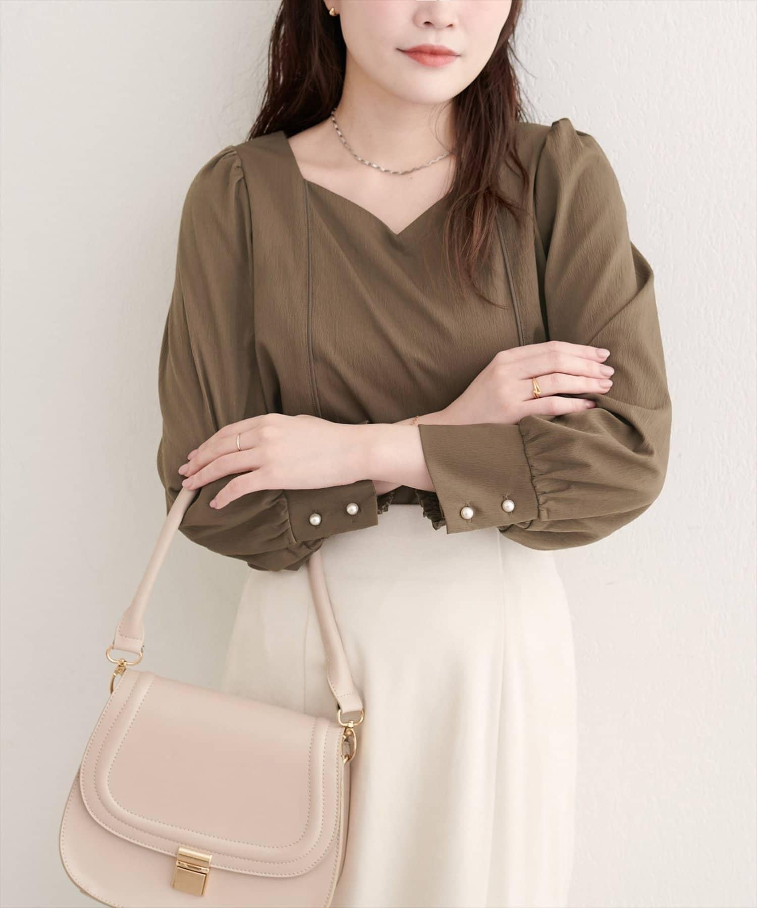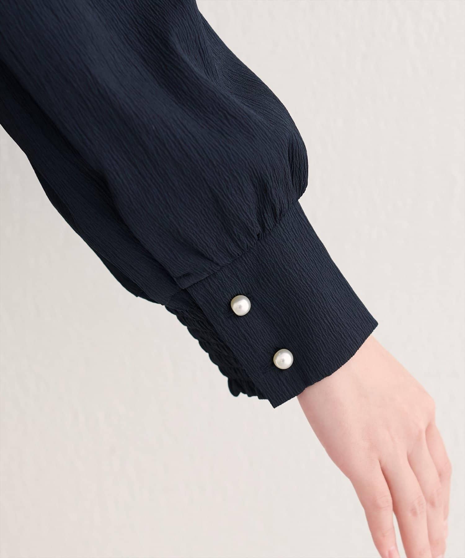 袖口飾有珍珠風格的紐扣,是優雅的點睛之筆。
