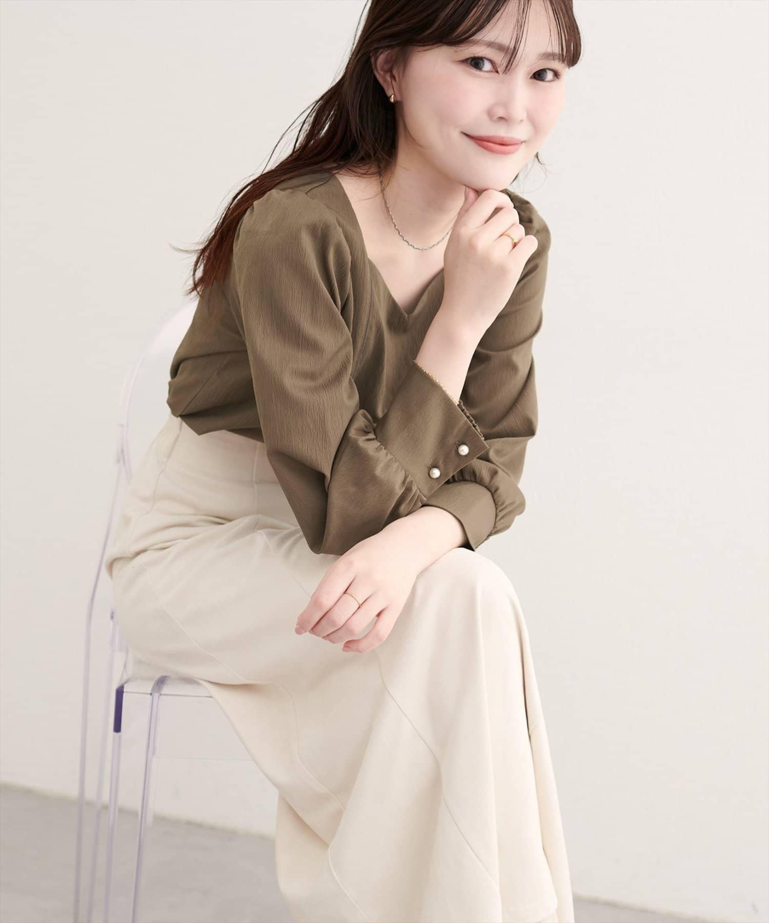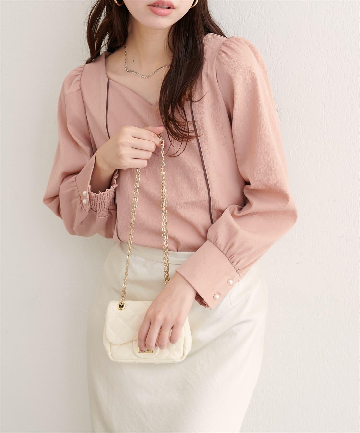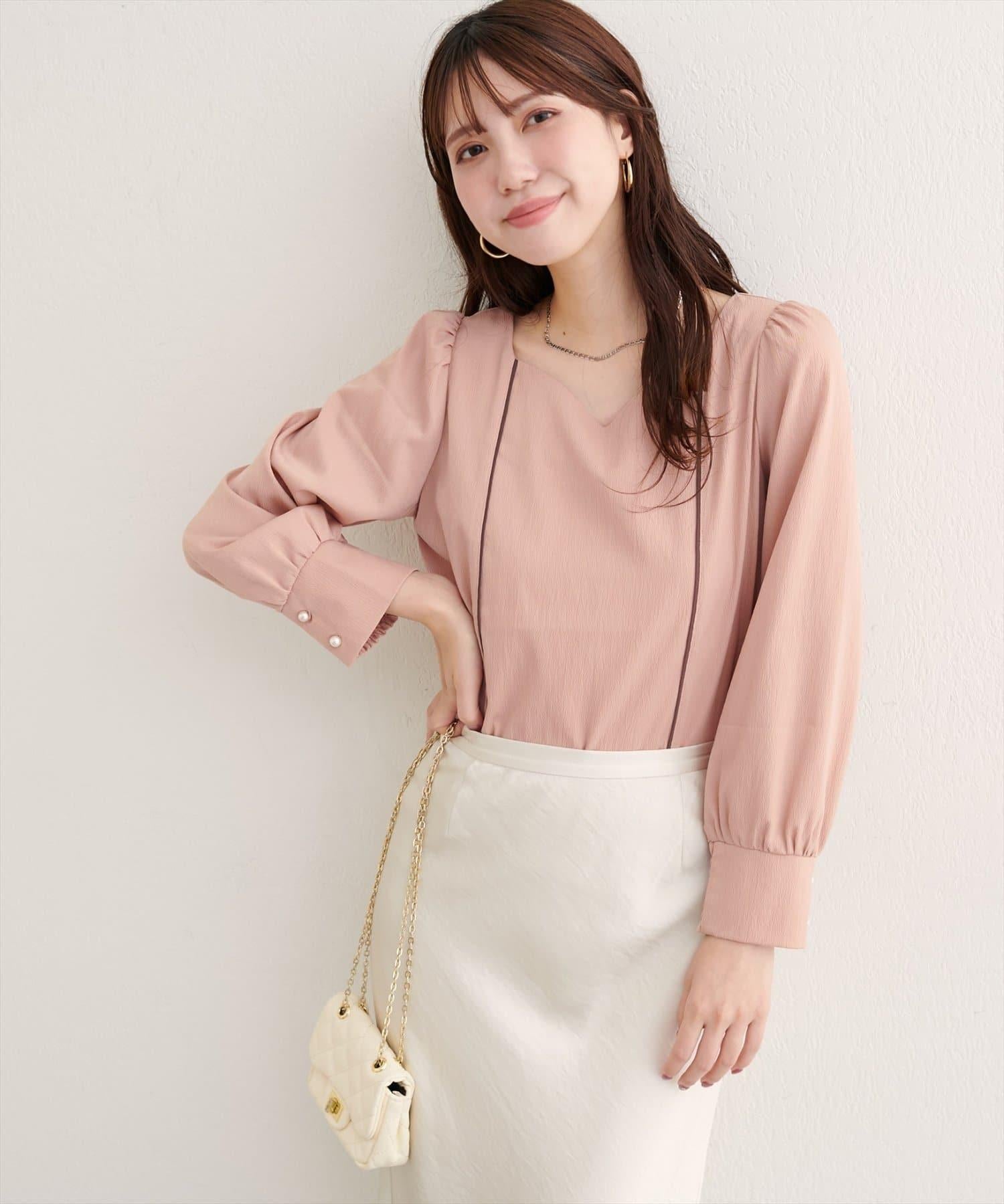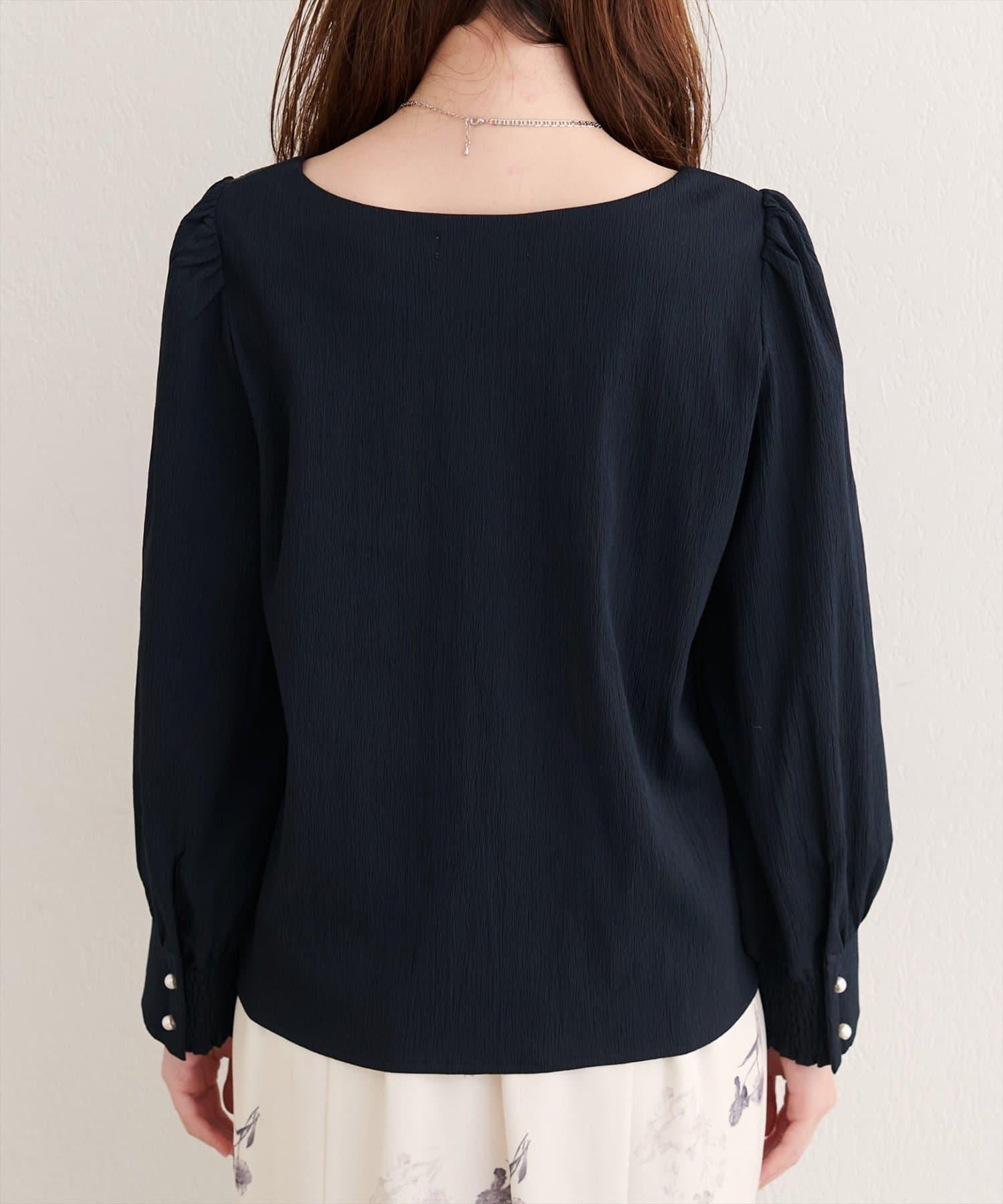 袖口飾有珍珠風格的紐扣,是優雅的點睛之筆。
