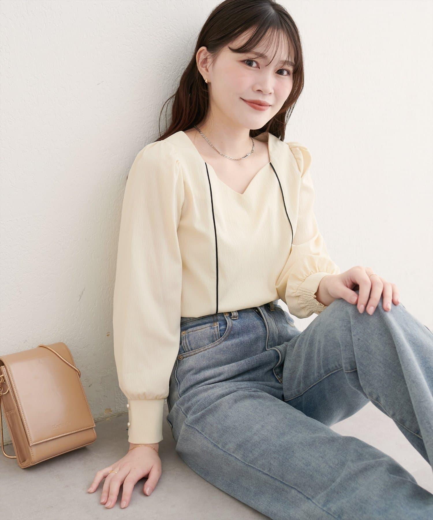 心形領滾邊配色上衣