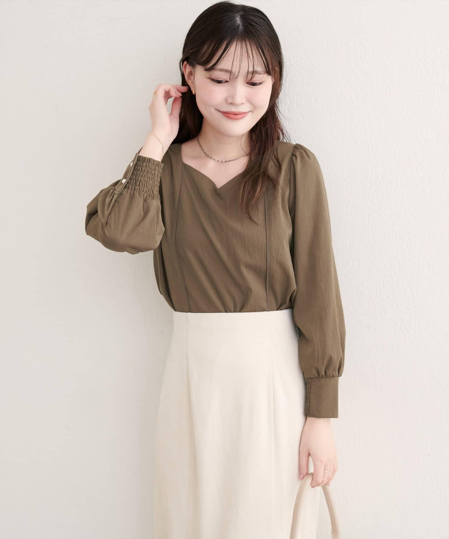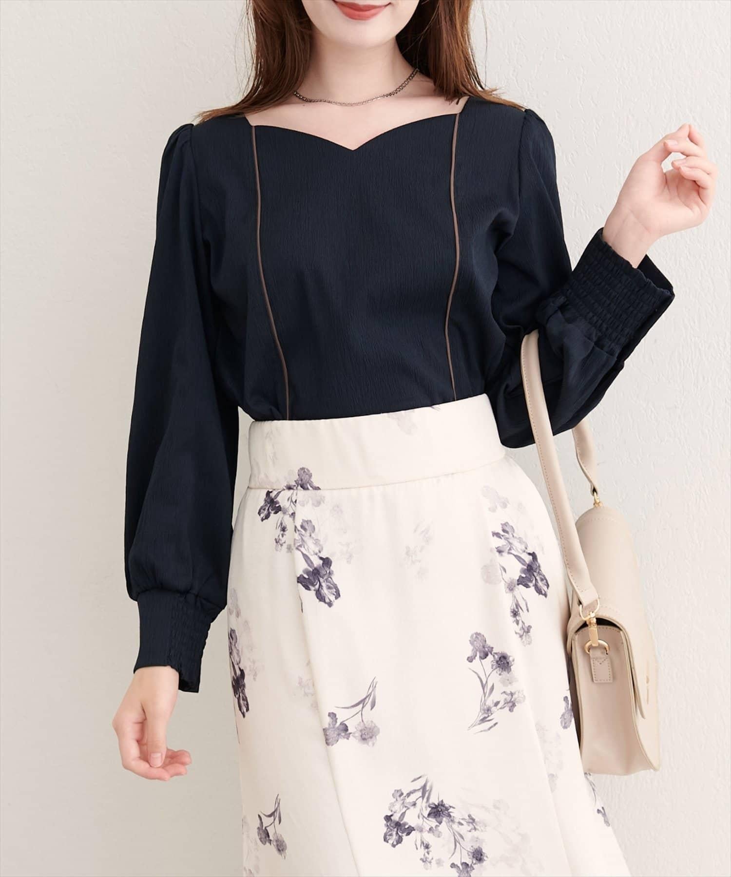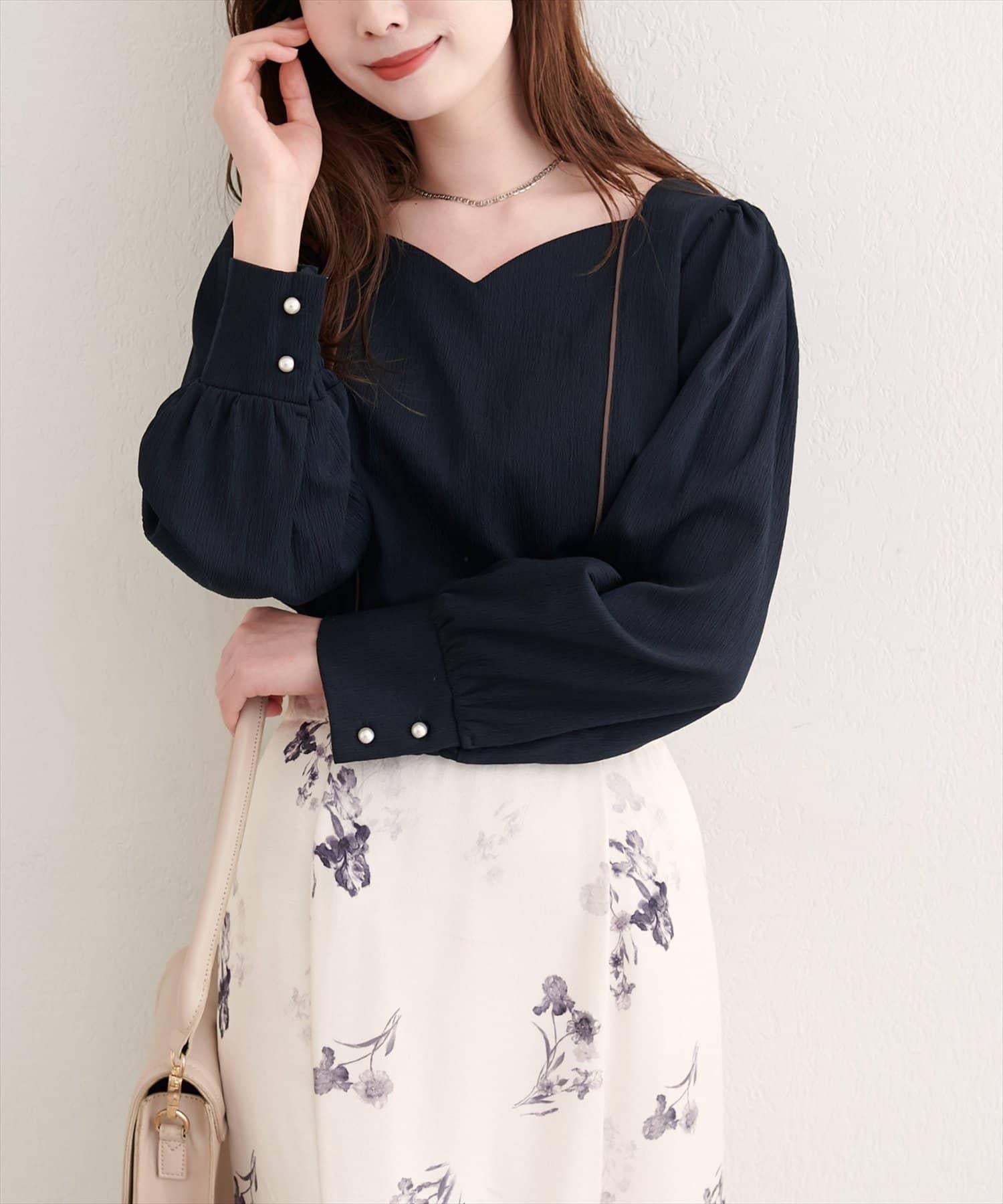 心形領口整齊美觀地展示了肩部。它給人以優雅、沉靜的印象,同時提升了女性魅力。
