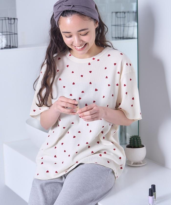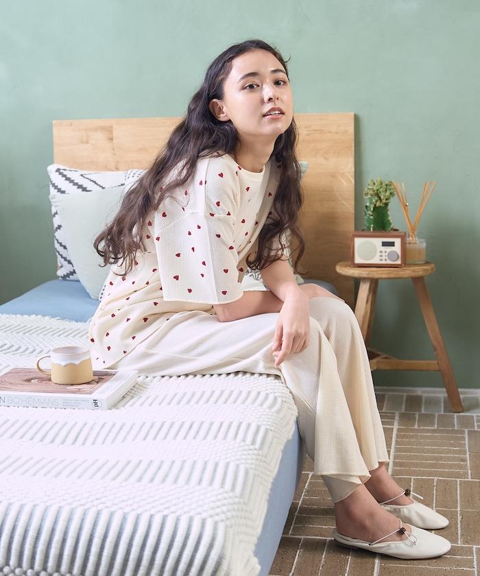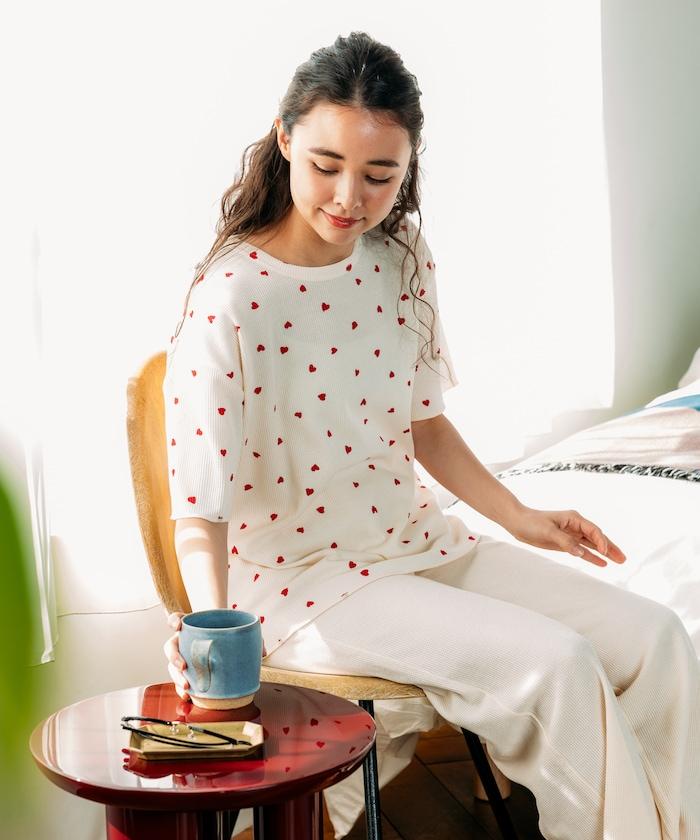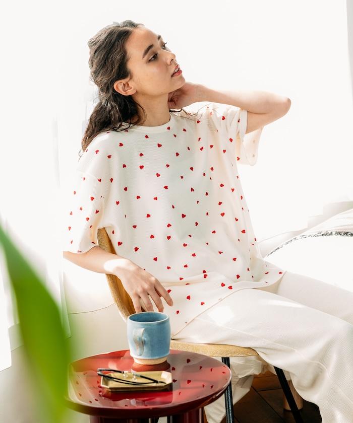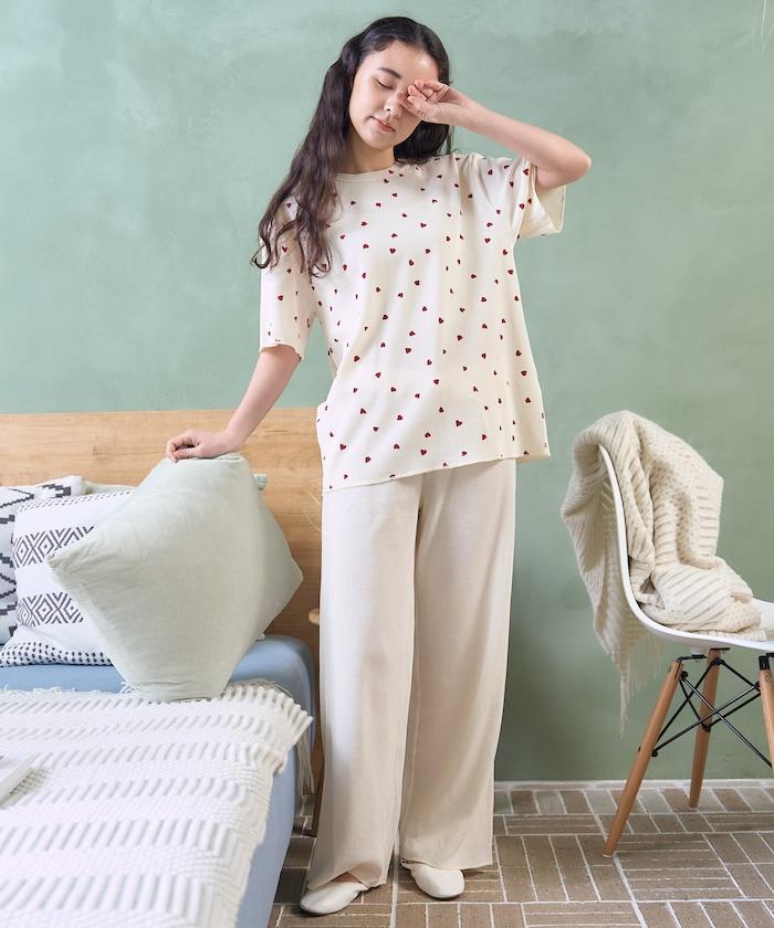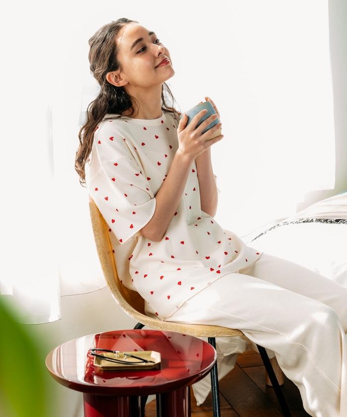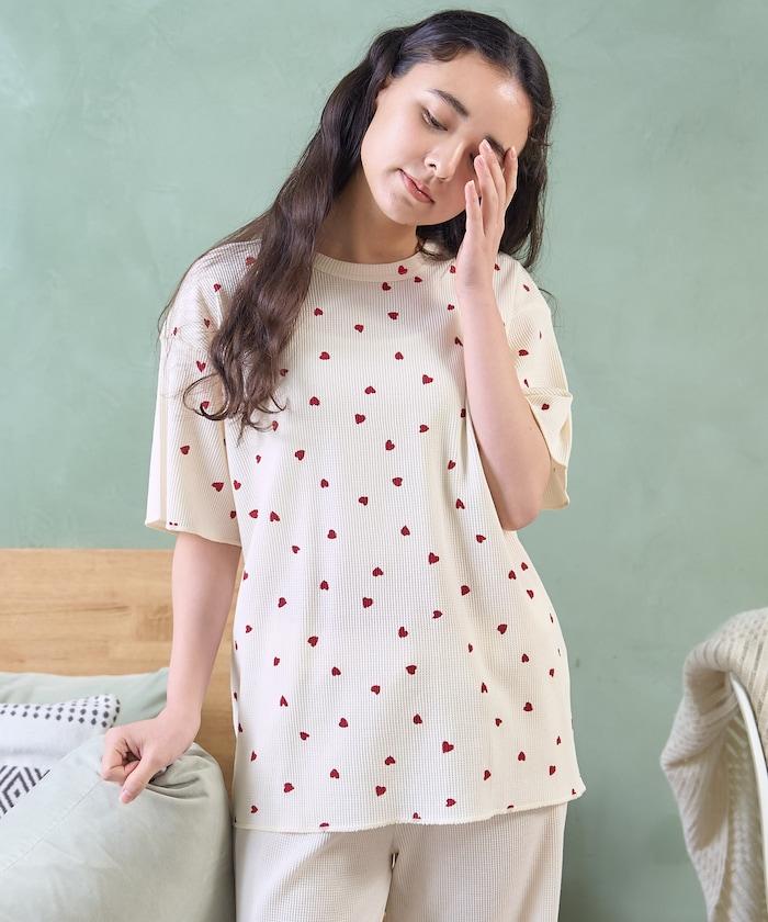 心形圖案短袖華夫格T恤和長褲套裝單品