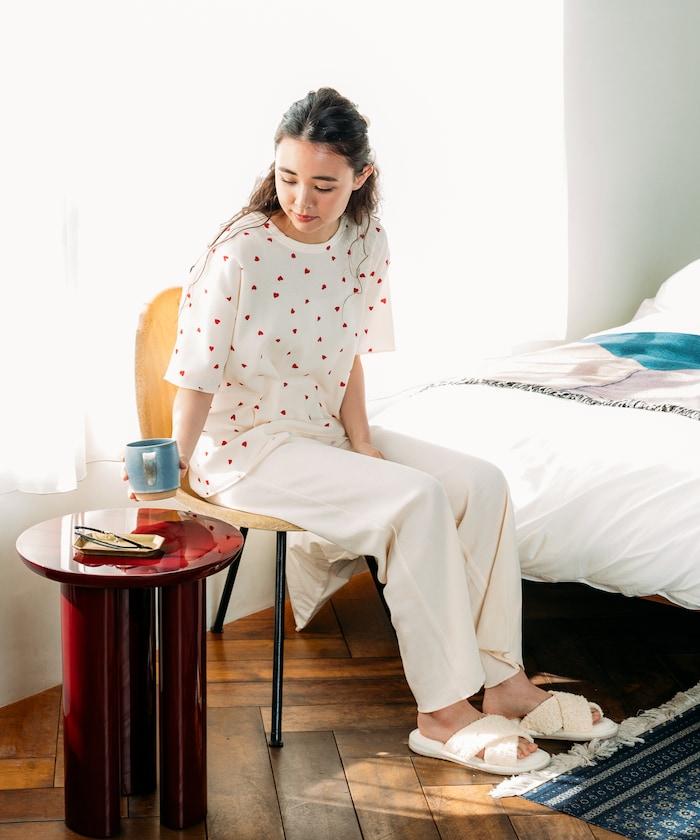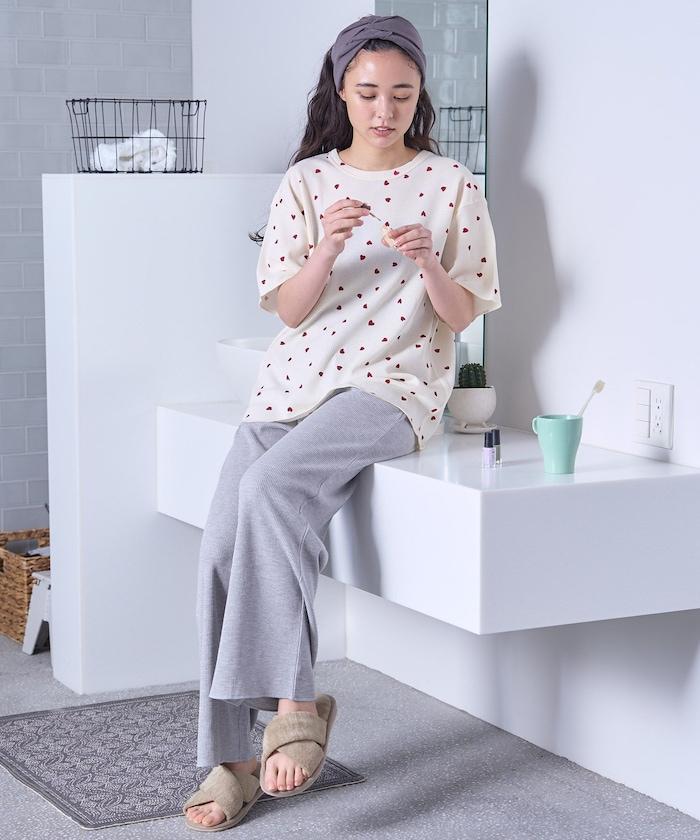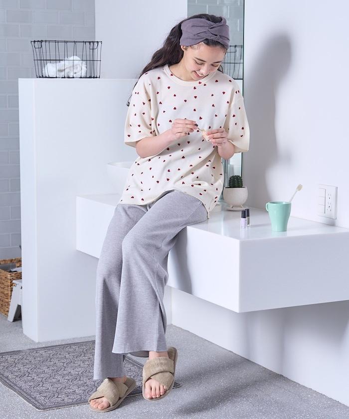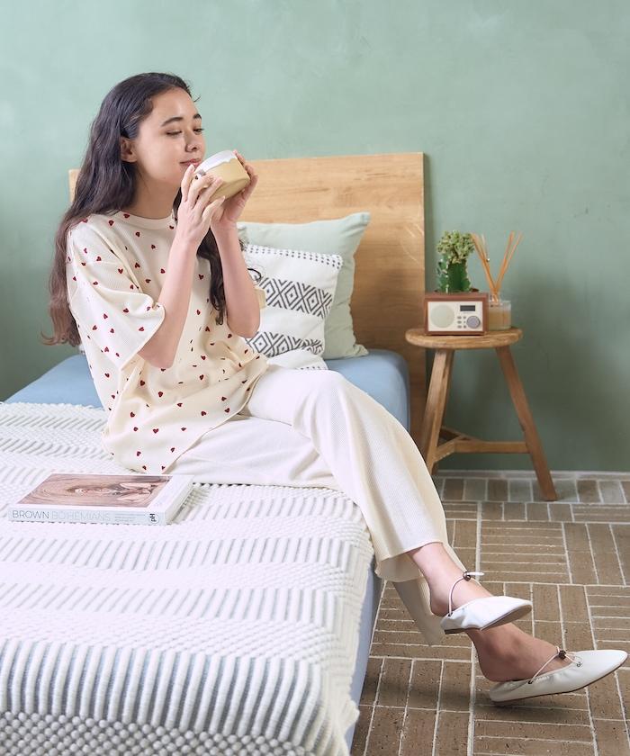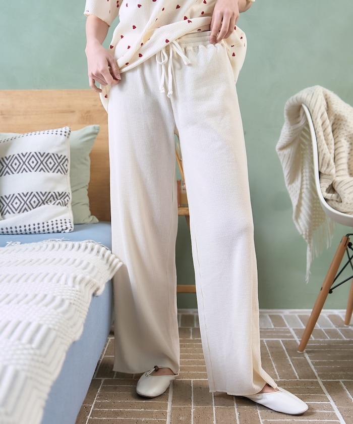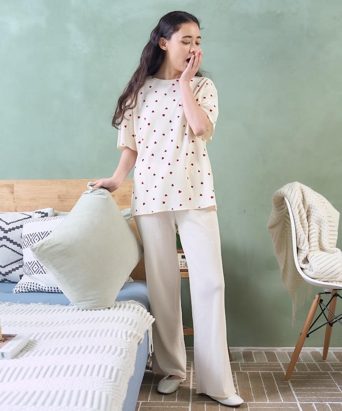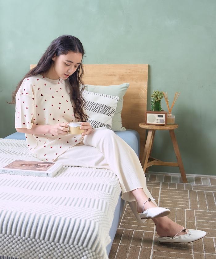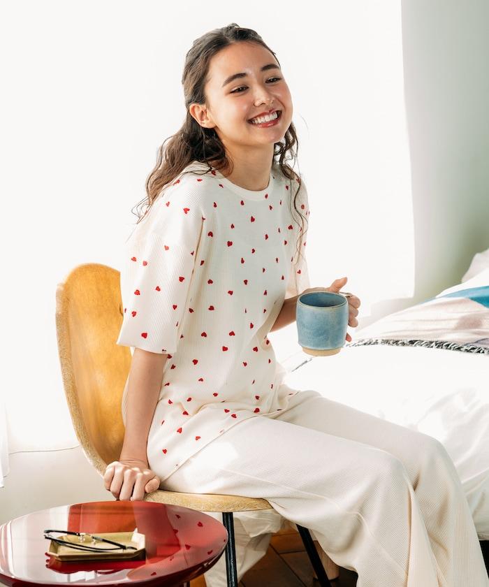 心形圖案短袖華夫格T恤和長褲套裝單品