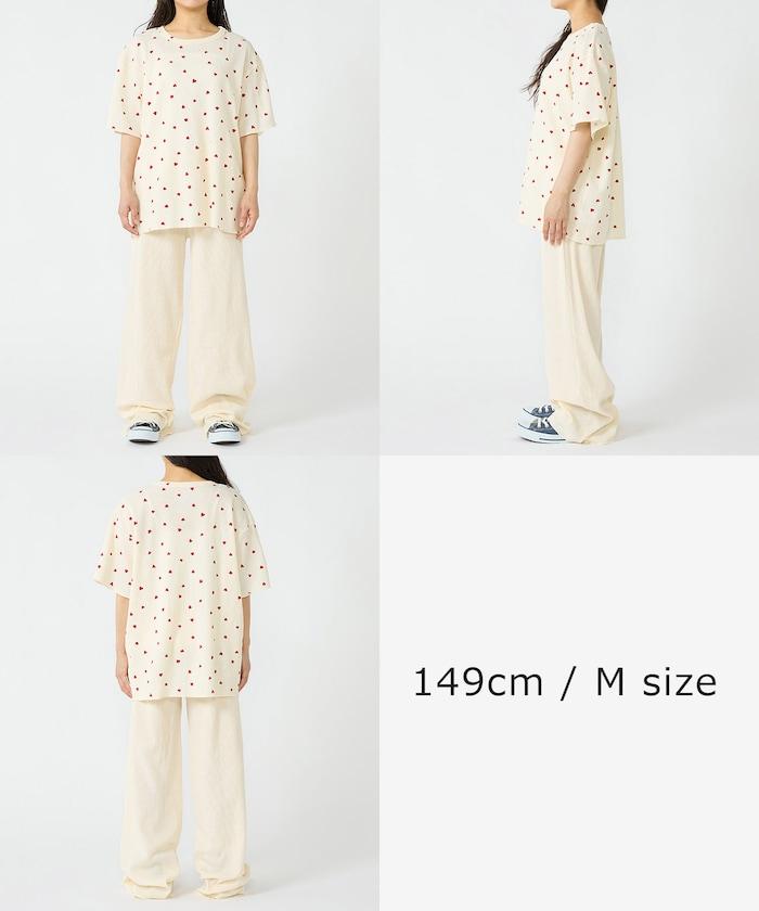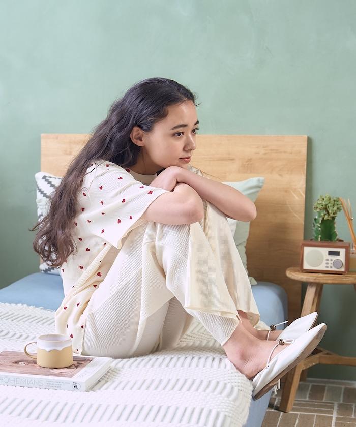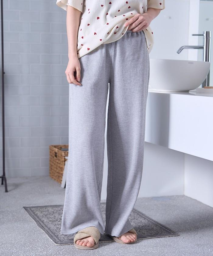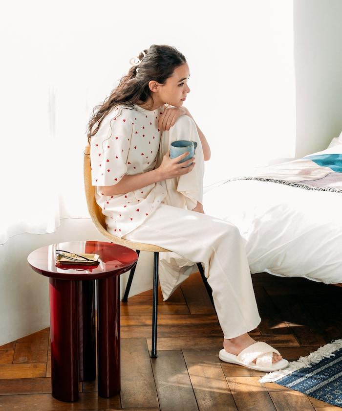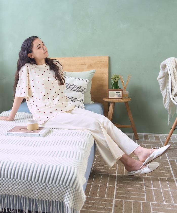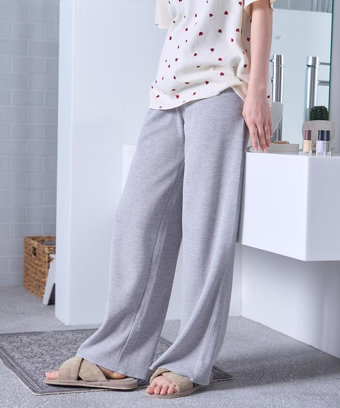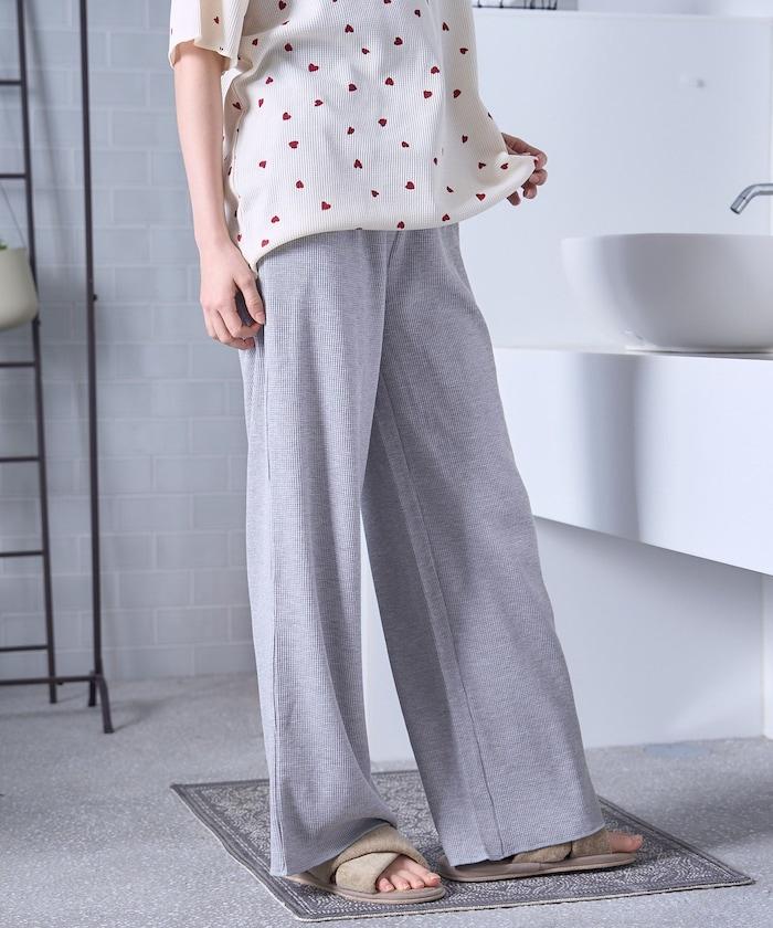 心形圖案短袖華夫格T恤和長褲套裝單品