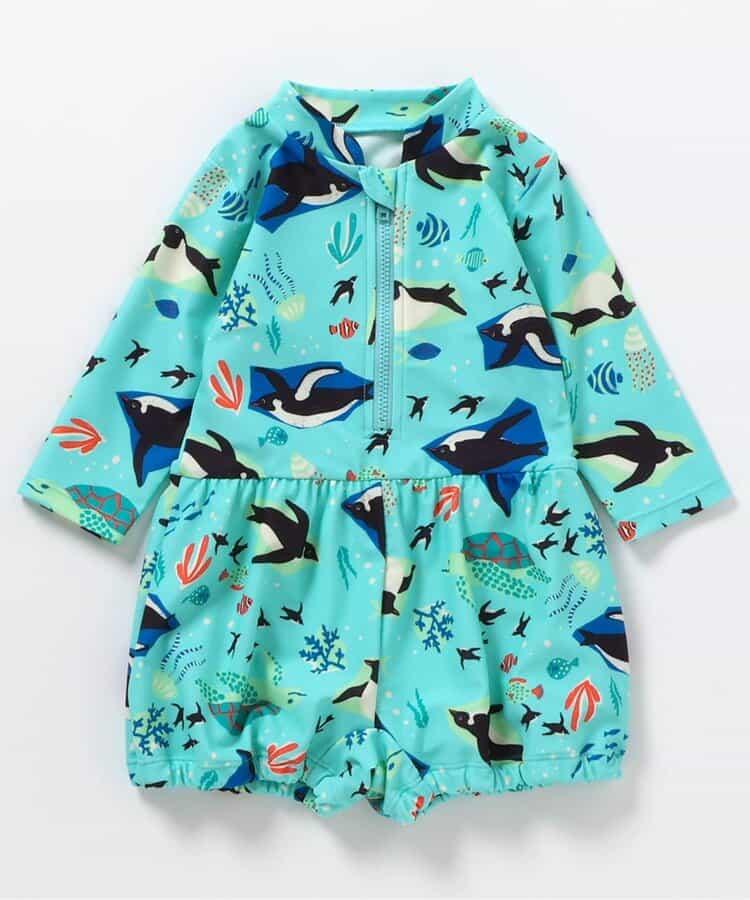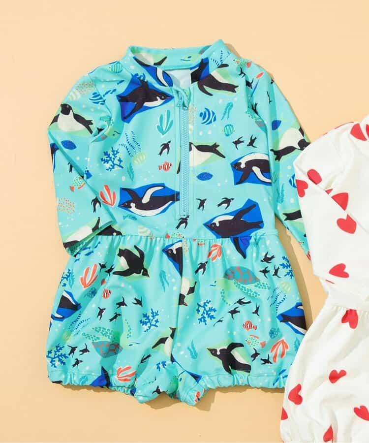 可愛的嬰兒游泳衣,腳部有氣球輪廓。