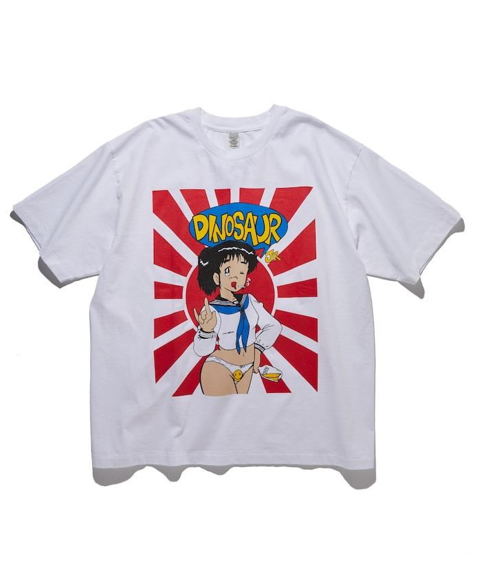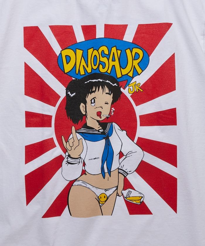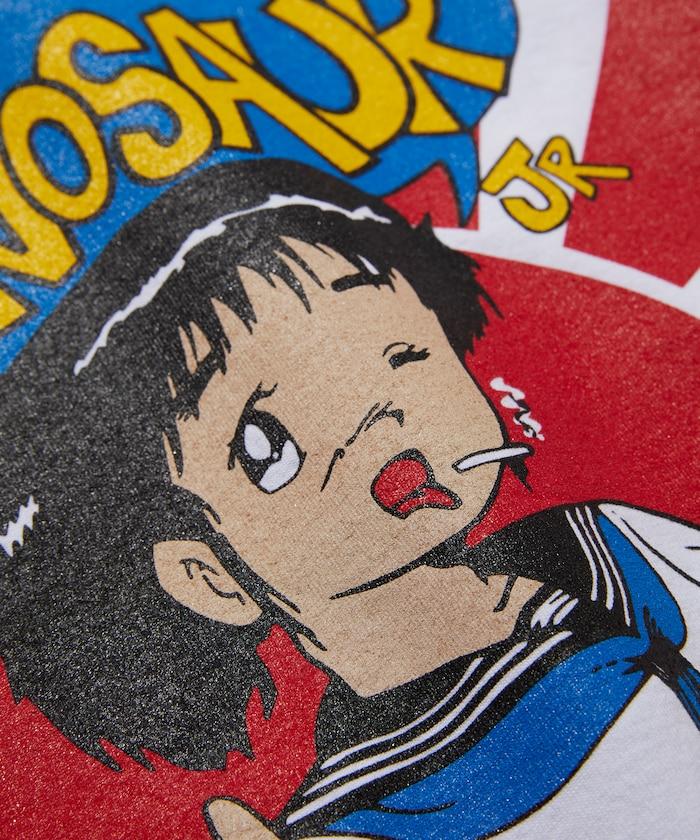 這是 20 世紀 90 年代大印花圖案的複製品。這件 T 恤出自曾為眾多樂隊創作現場海報的標誌性平面藝術家 FRANK KOZIK 之手,以 1992 年小恐龍樂隊在休斯頓的現場海報為藍本,圖案取材於 20 世紀 80 年代的日本漫畫。圖案取材於上世紀 80 年代的日本漫畫。