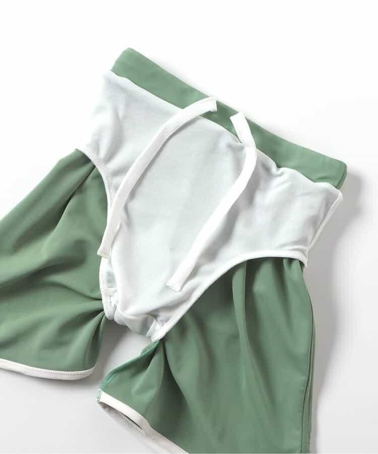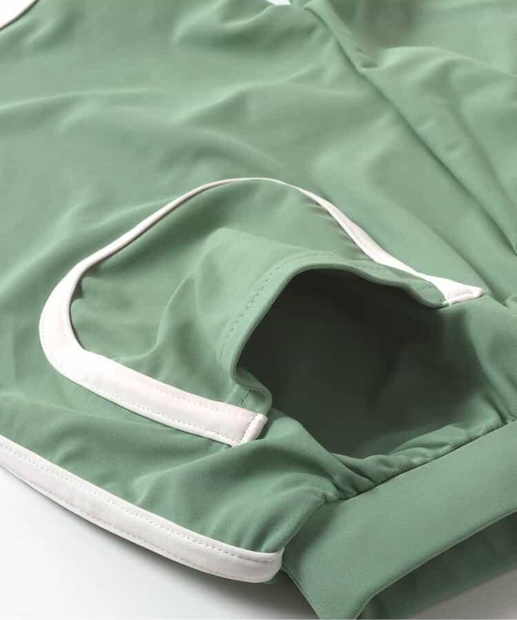 拳擊手泳衣,有斜襟袖和護身衣,便於活動。