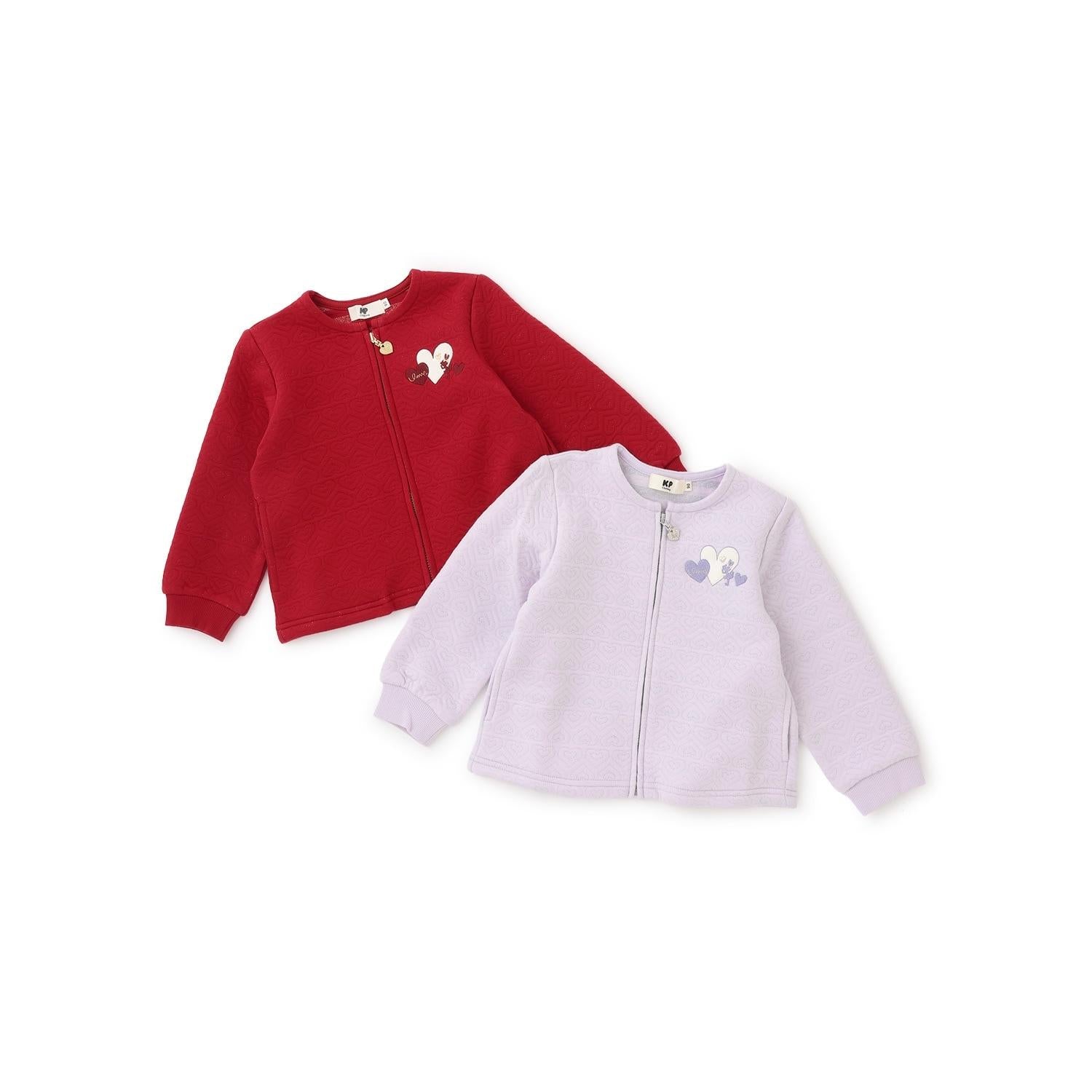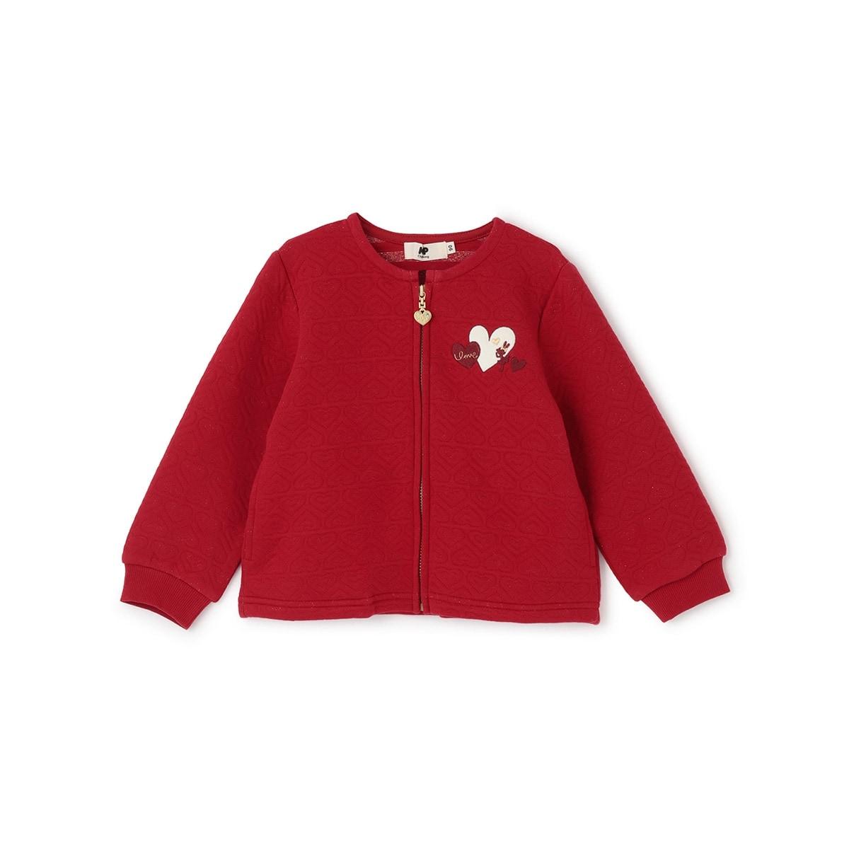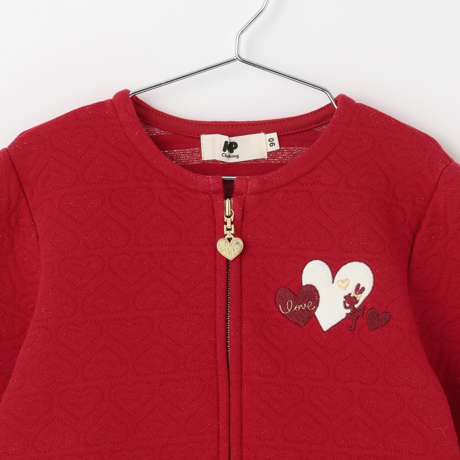 心形圖案提花拉鍊開衫。