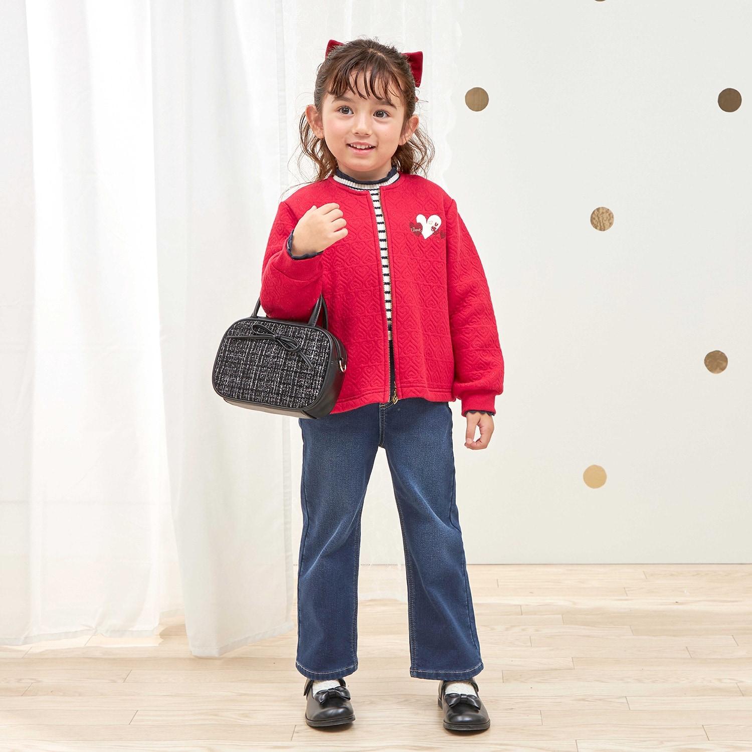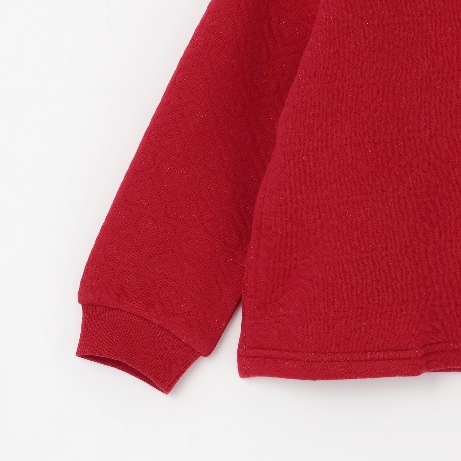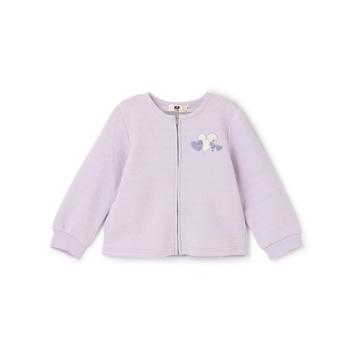 心形圖案提花拉鍊開衫。