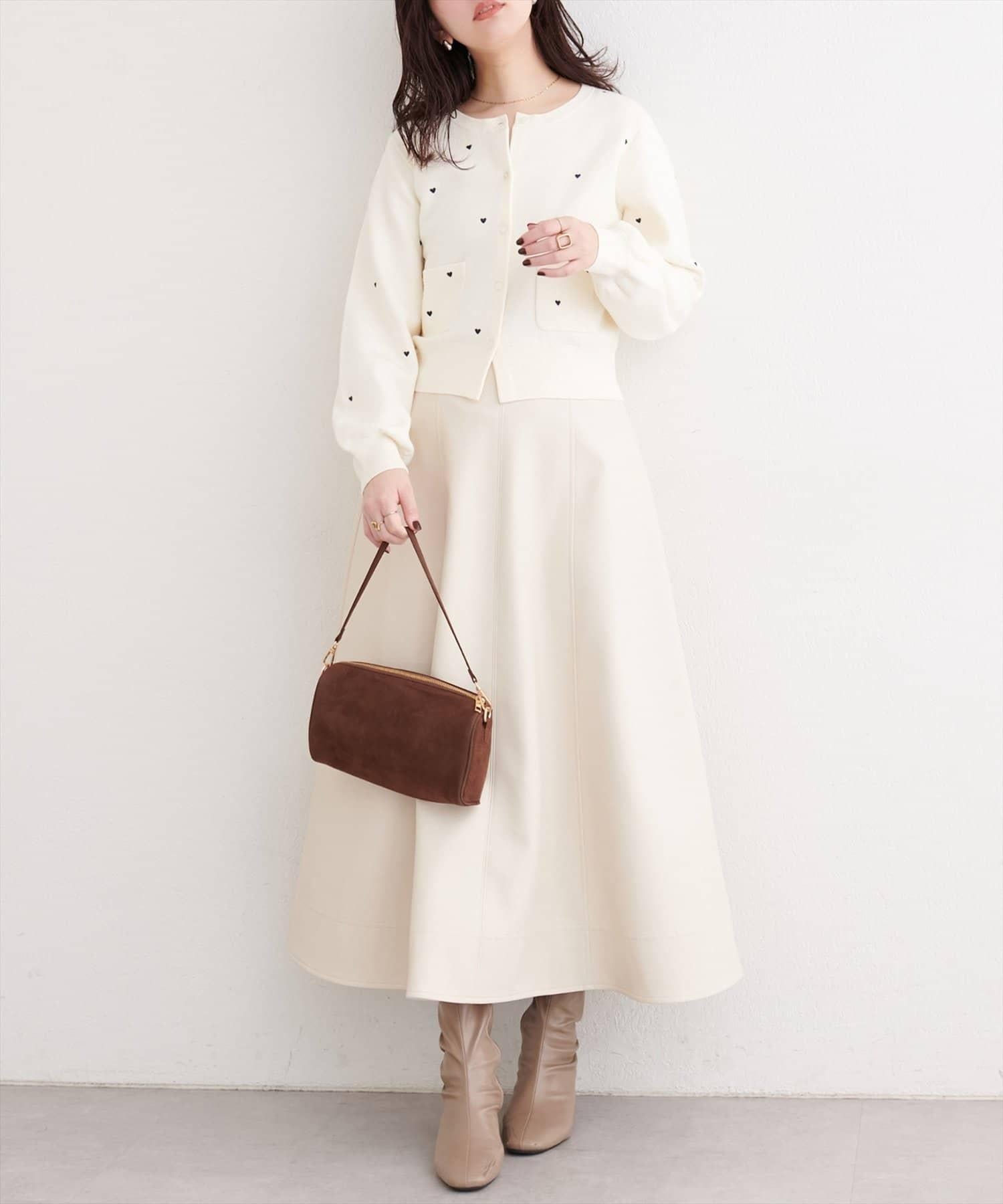 開襟羊毛衫的基礎設計簡單易穿。圓領設計具有使臉部看起來更圓潤的效果。