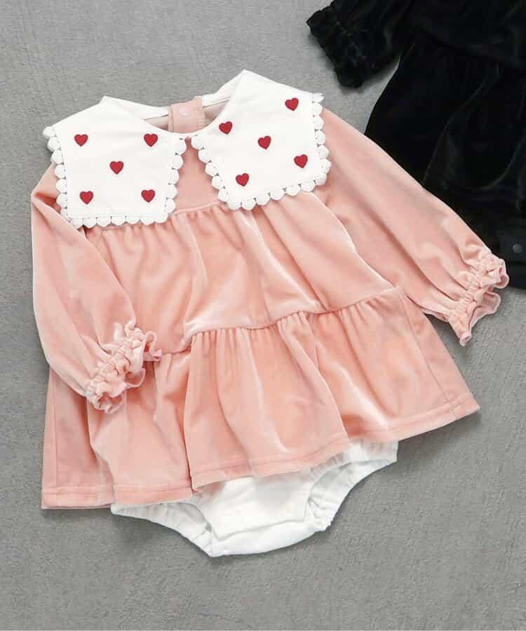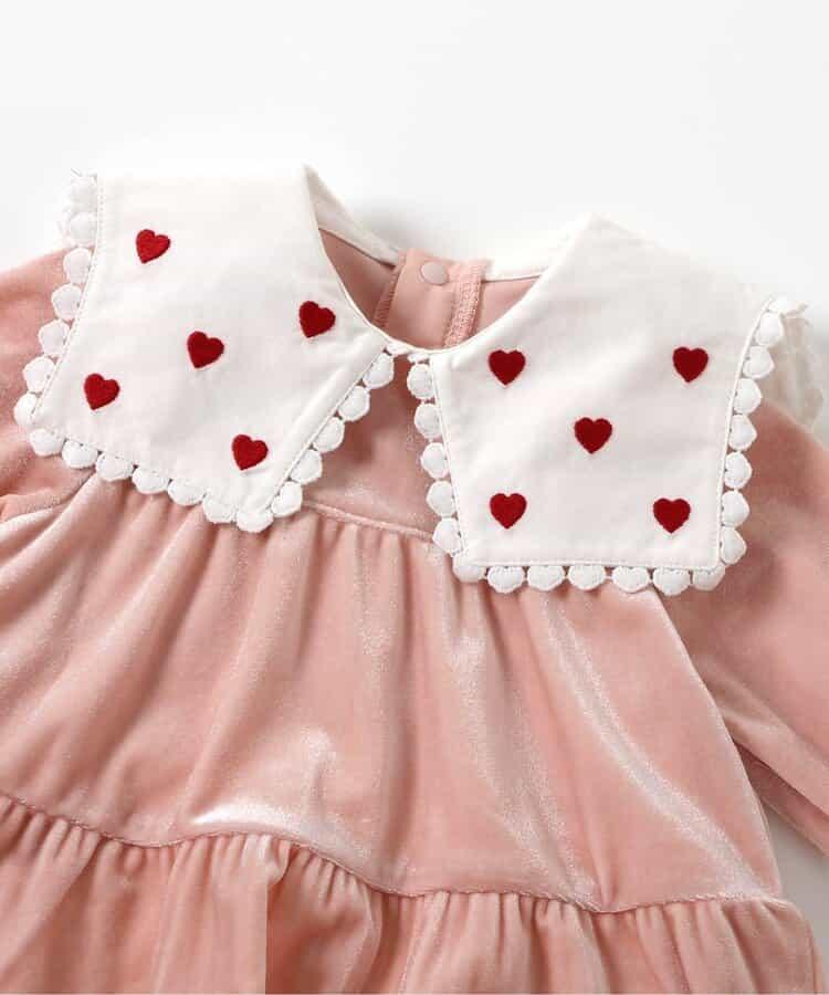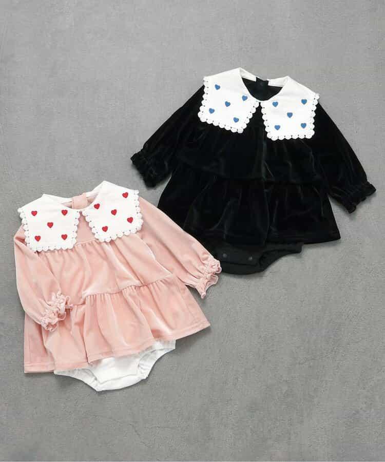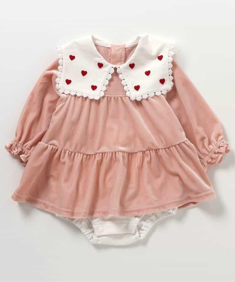 apres les cours coverall 連身裙"[Link] Heart Collar Embroidery Tiered Coverall "的設計溫柔、細緻、自然。嬰兒禮品和嬰兒禮物中的明星