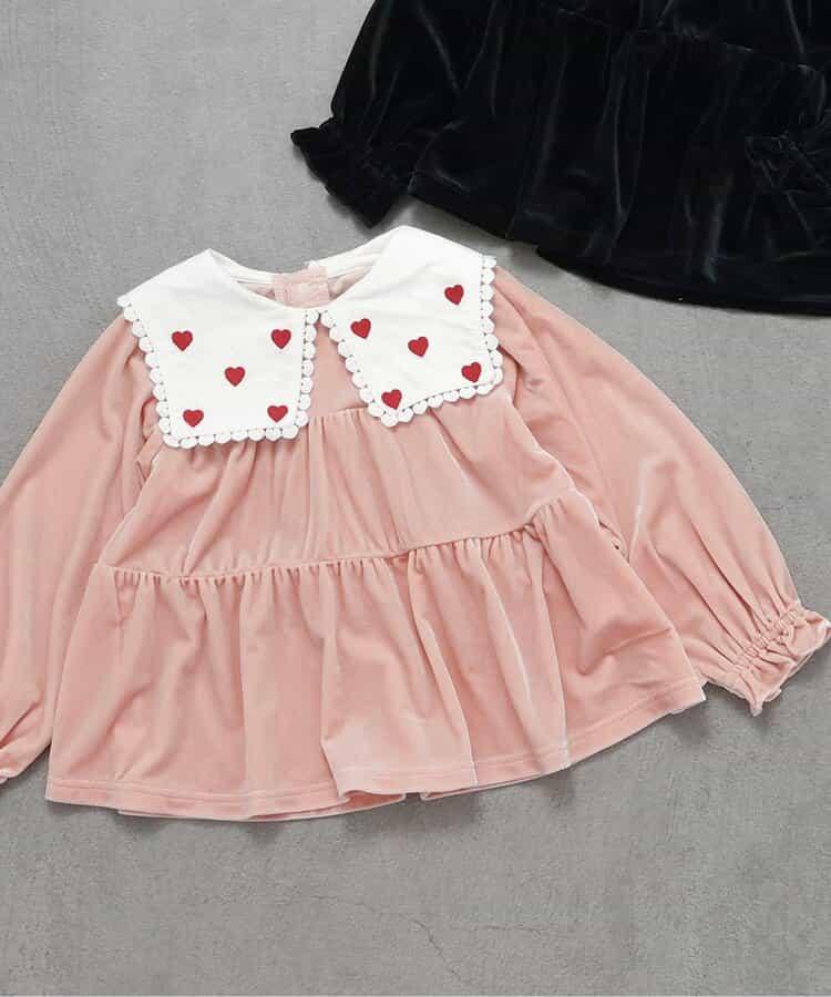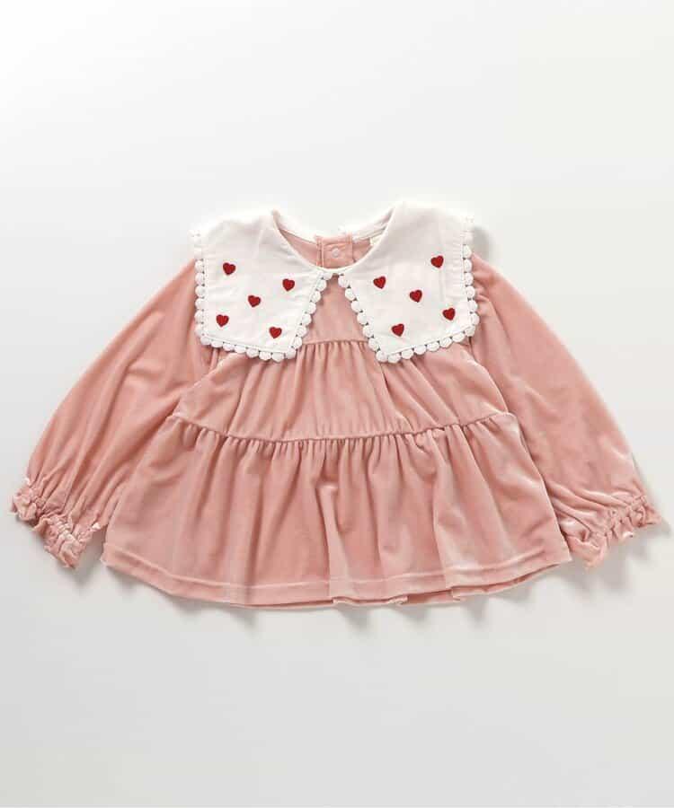 apres les cours 襯衫和襯衫"[Link] 心形領刺繡層疊長衫 "是一款時尚單品,為自然風格*增添了精巧的設計。