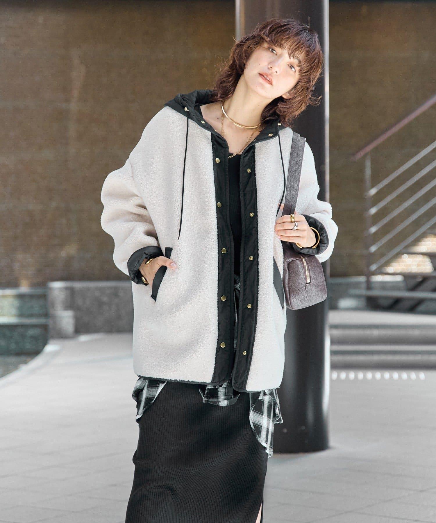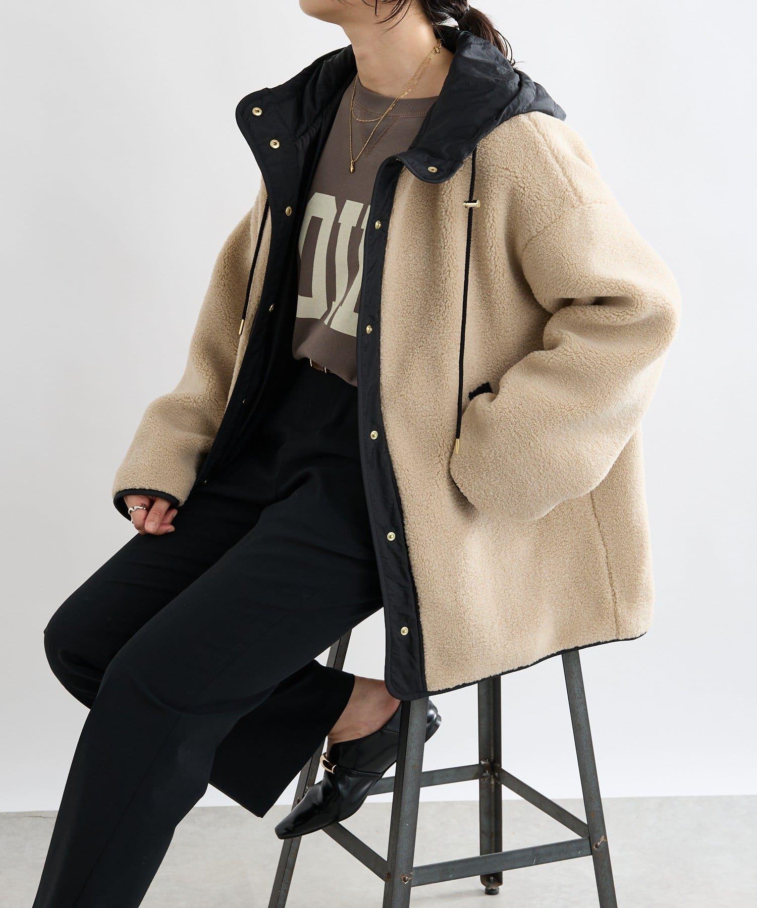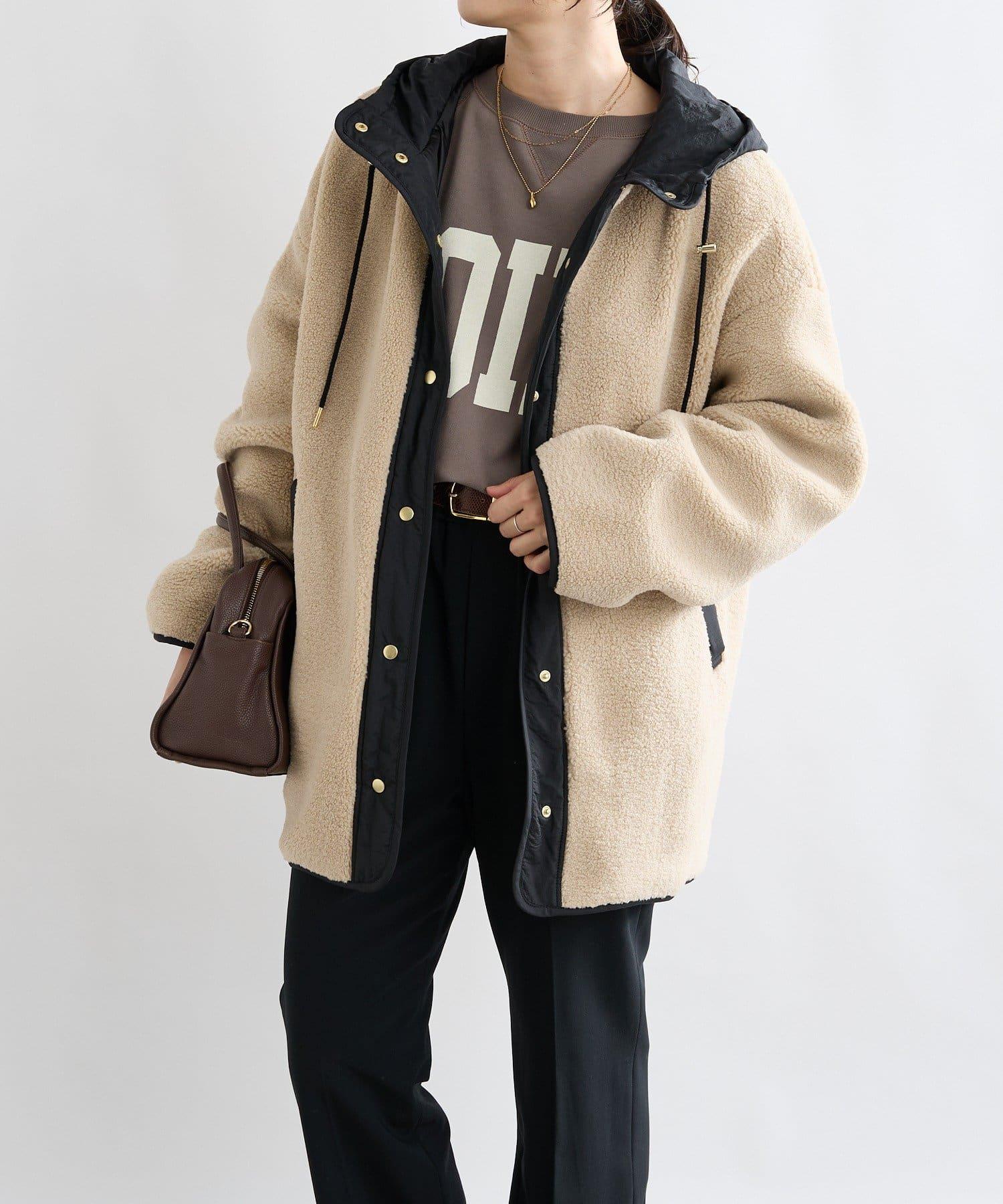 【感動的輕盈/復刻版】連帽仿羊羔絨大衣/預計11月上旬發貨