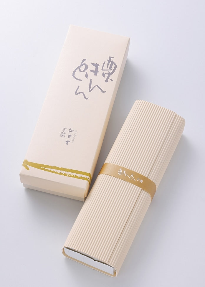 Shougetsudo的 "Kurikinton Yokan "是栗子之鄉中津川特有的栗子糖果,由新鮮栗子製成,是一種光滑、溼潤的 "Kurikinton",包裹在柔軟的甜Yokan凍中。這種新型的羊羹可以讓你享受到Koshi-an(甜豆沙)的光滑口感和Kuri-kinton(一種傳統的日本糖果)的溼潤口感,兩者合二為一。