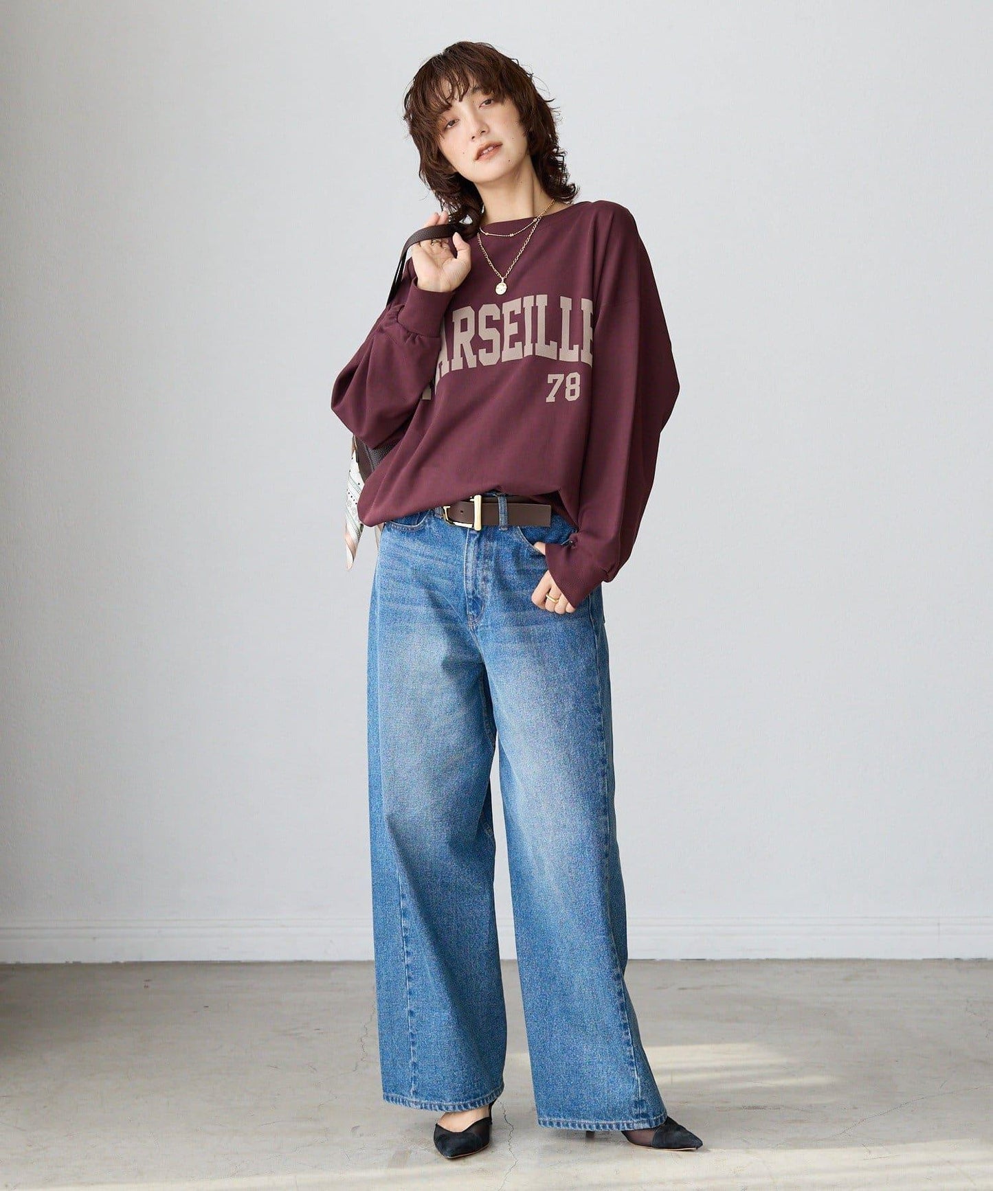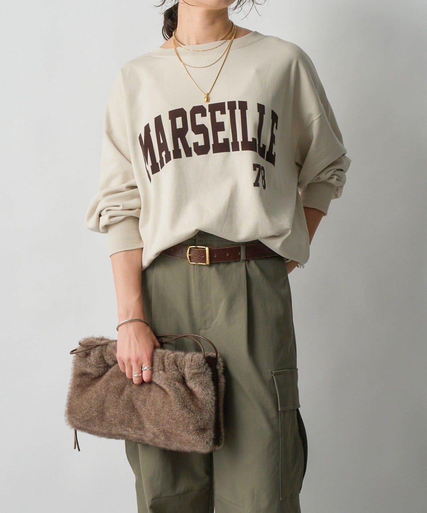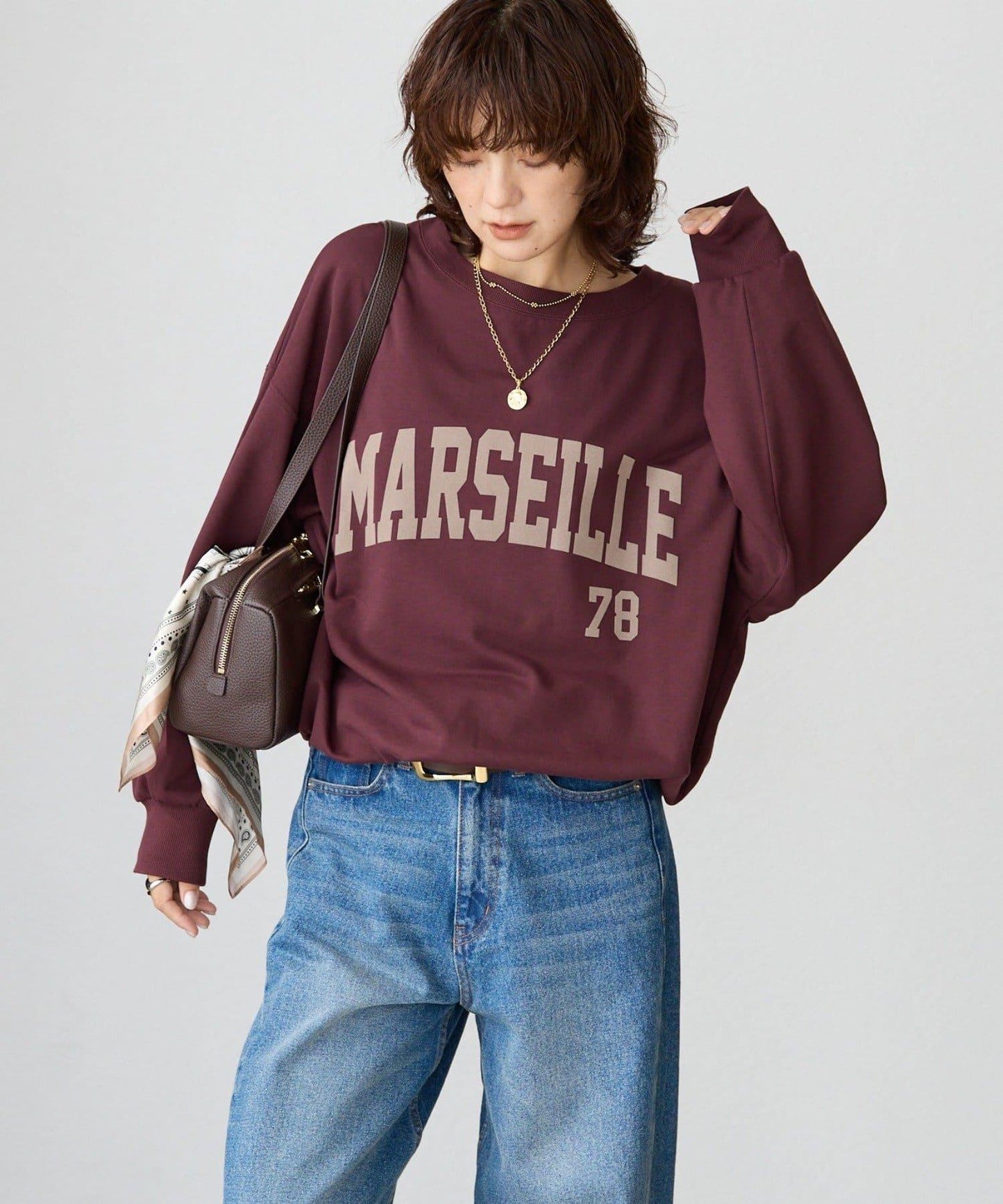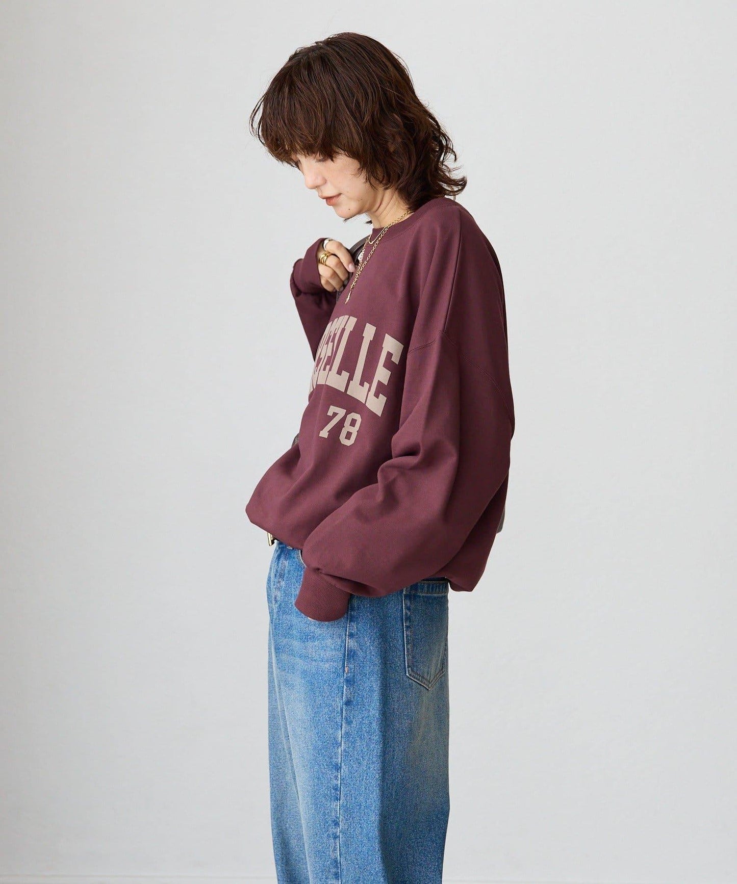 寬大的運動衫上有植絨印花紋理,為您的著裝增添秋日氣息。