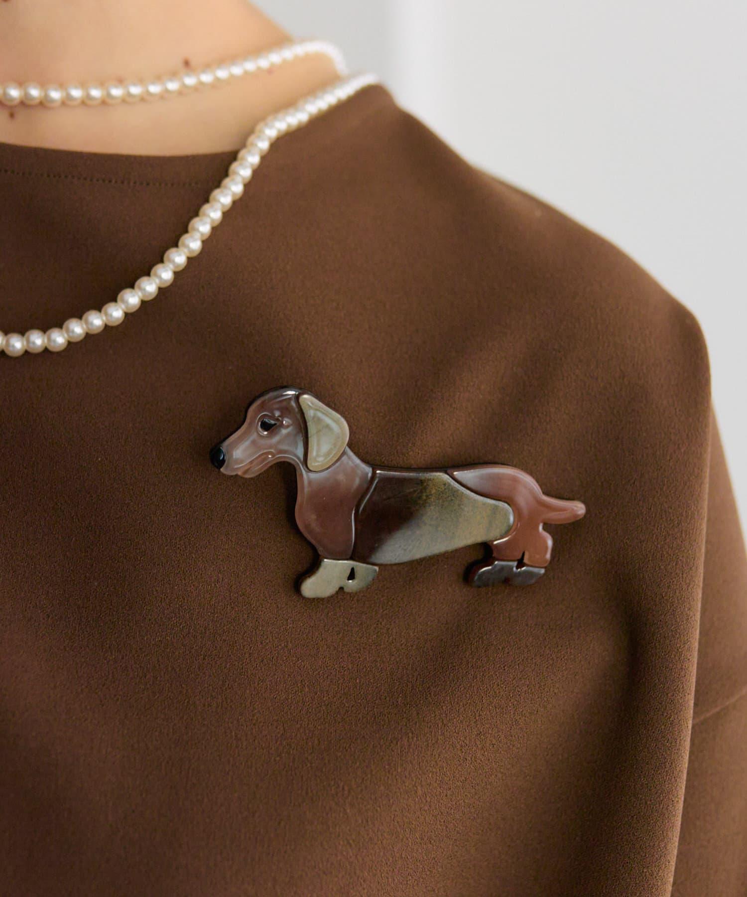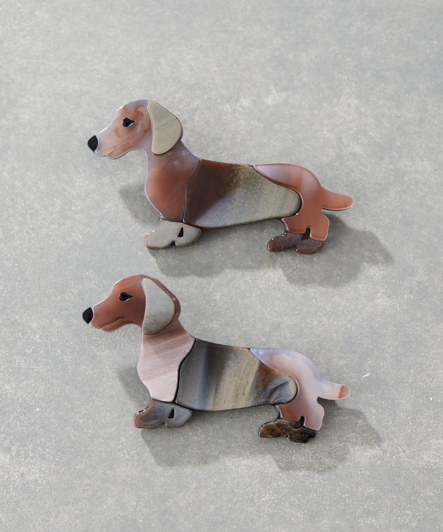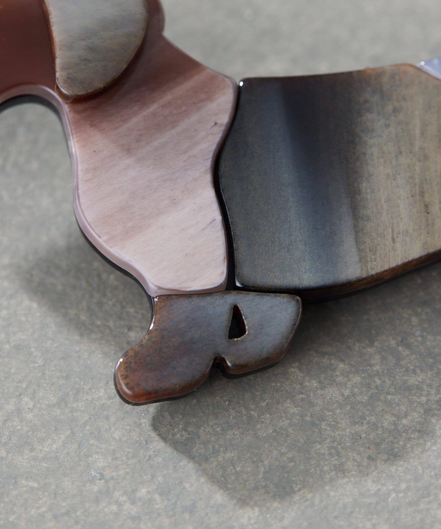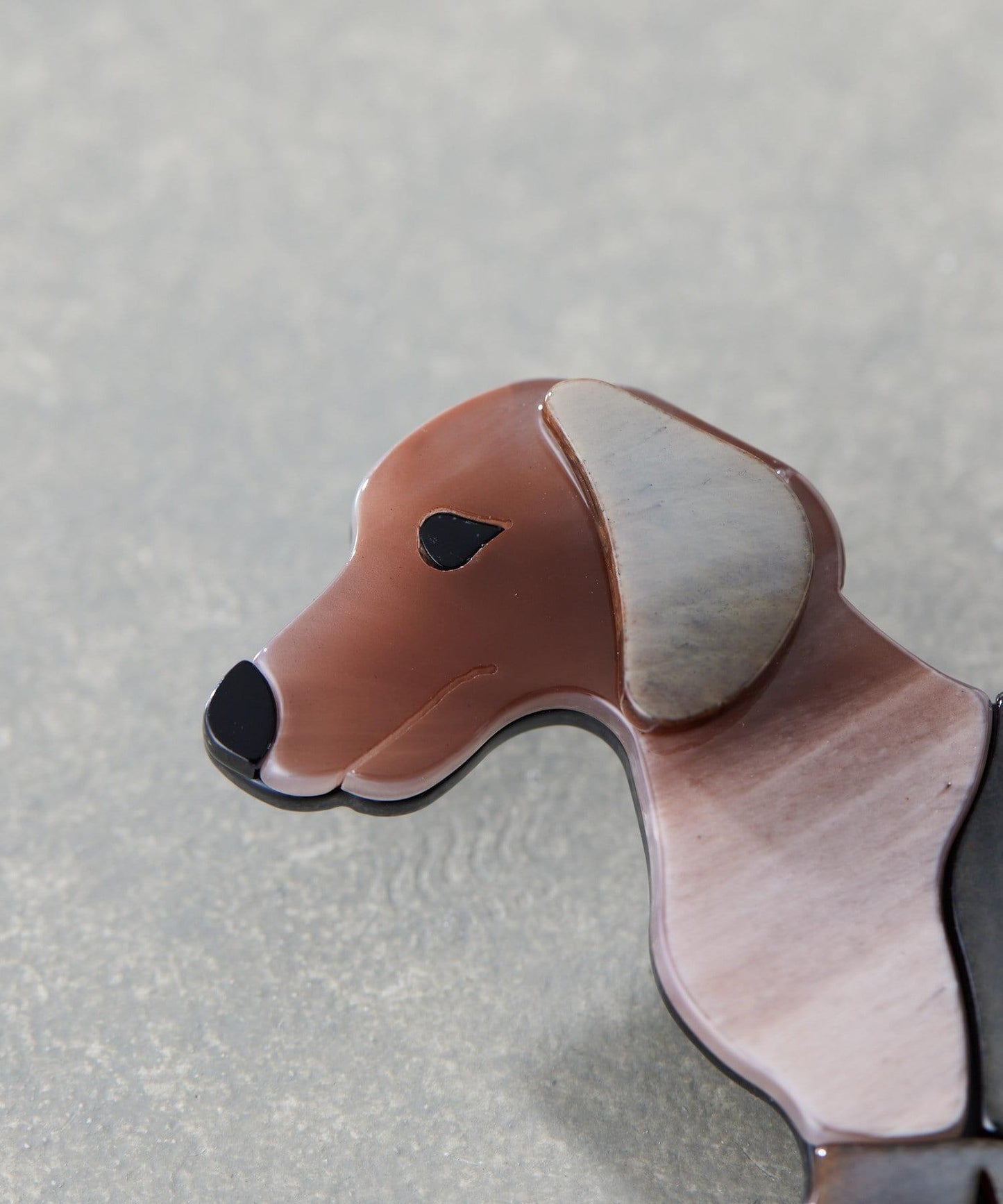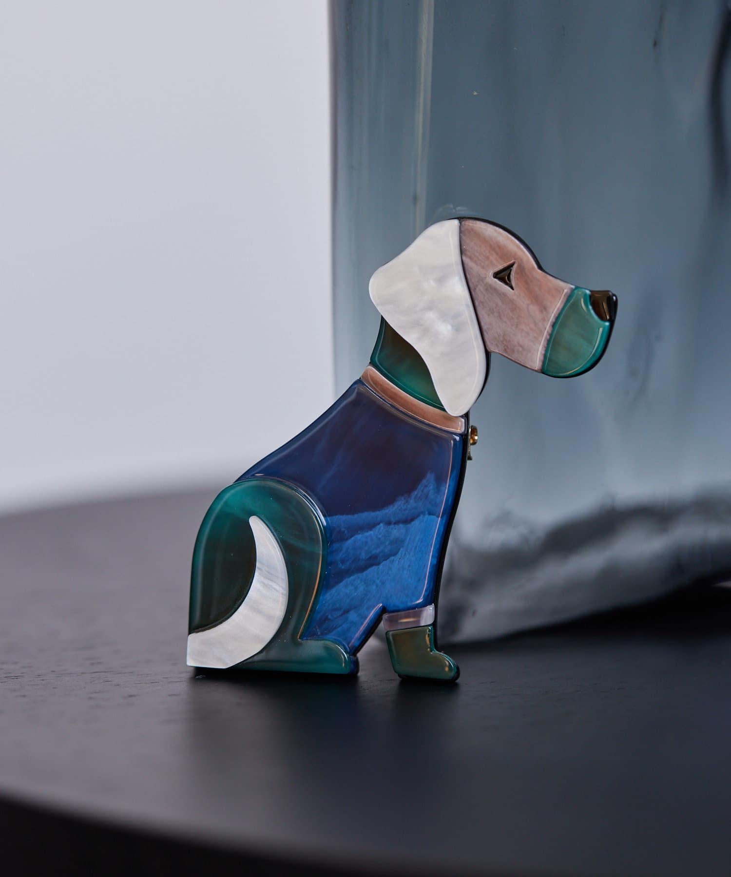 這款樹脂小狗胸針具有迷人的漸變效果。