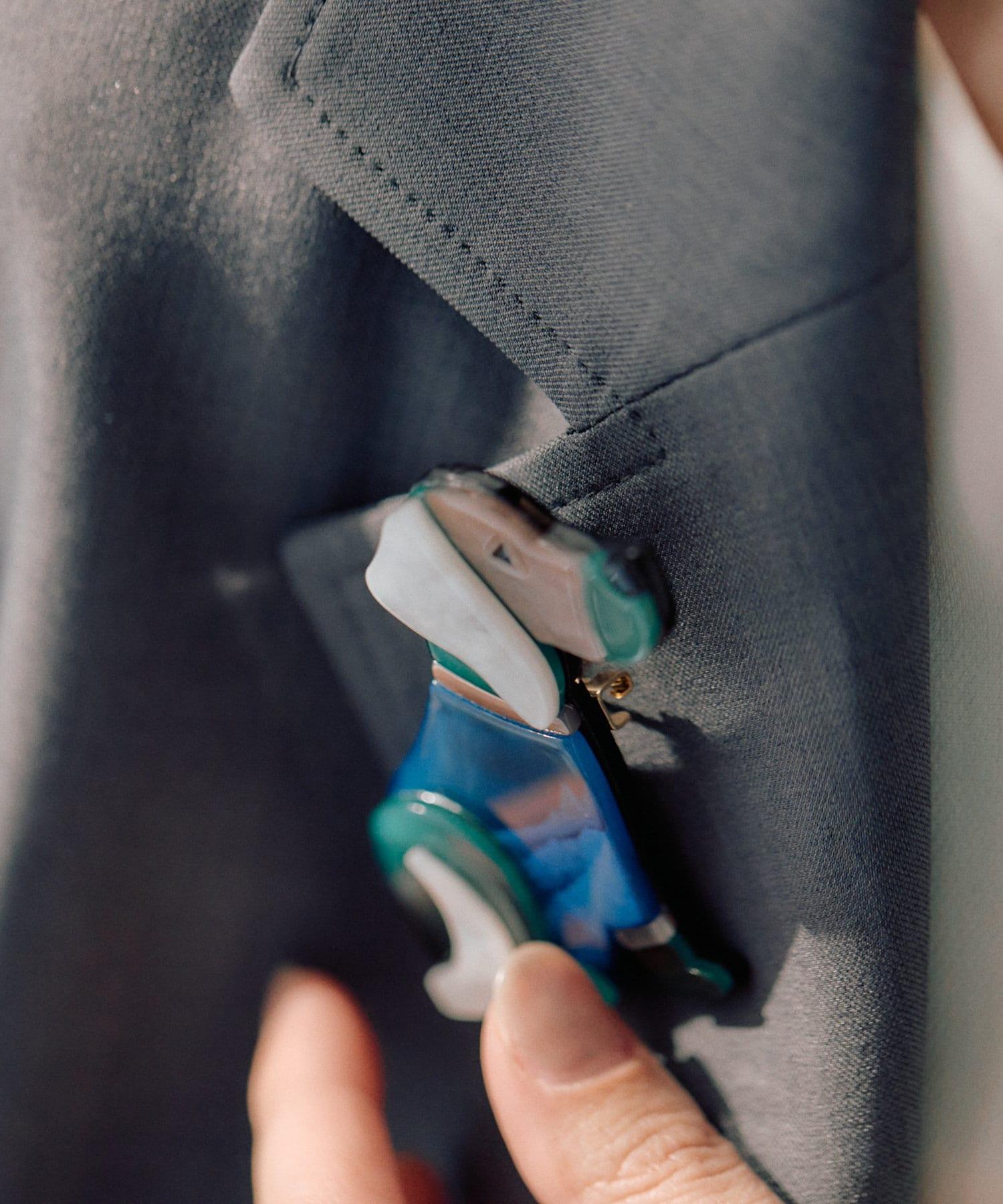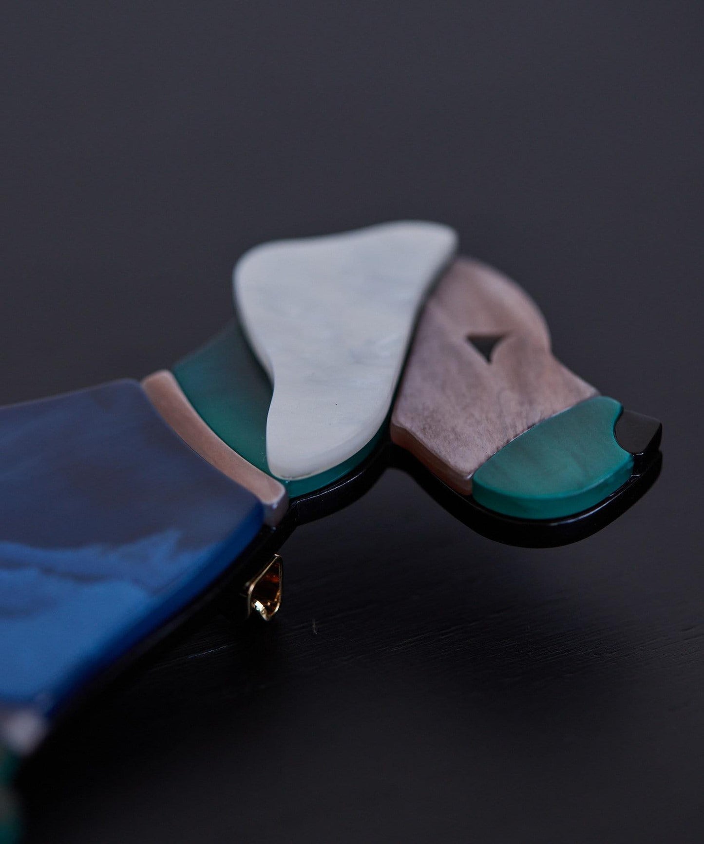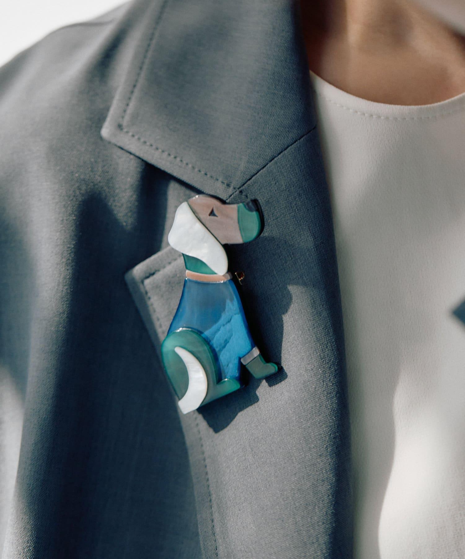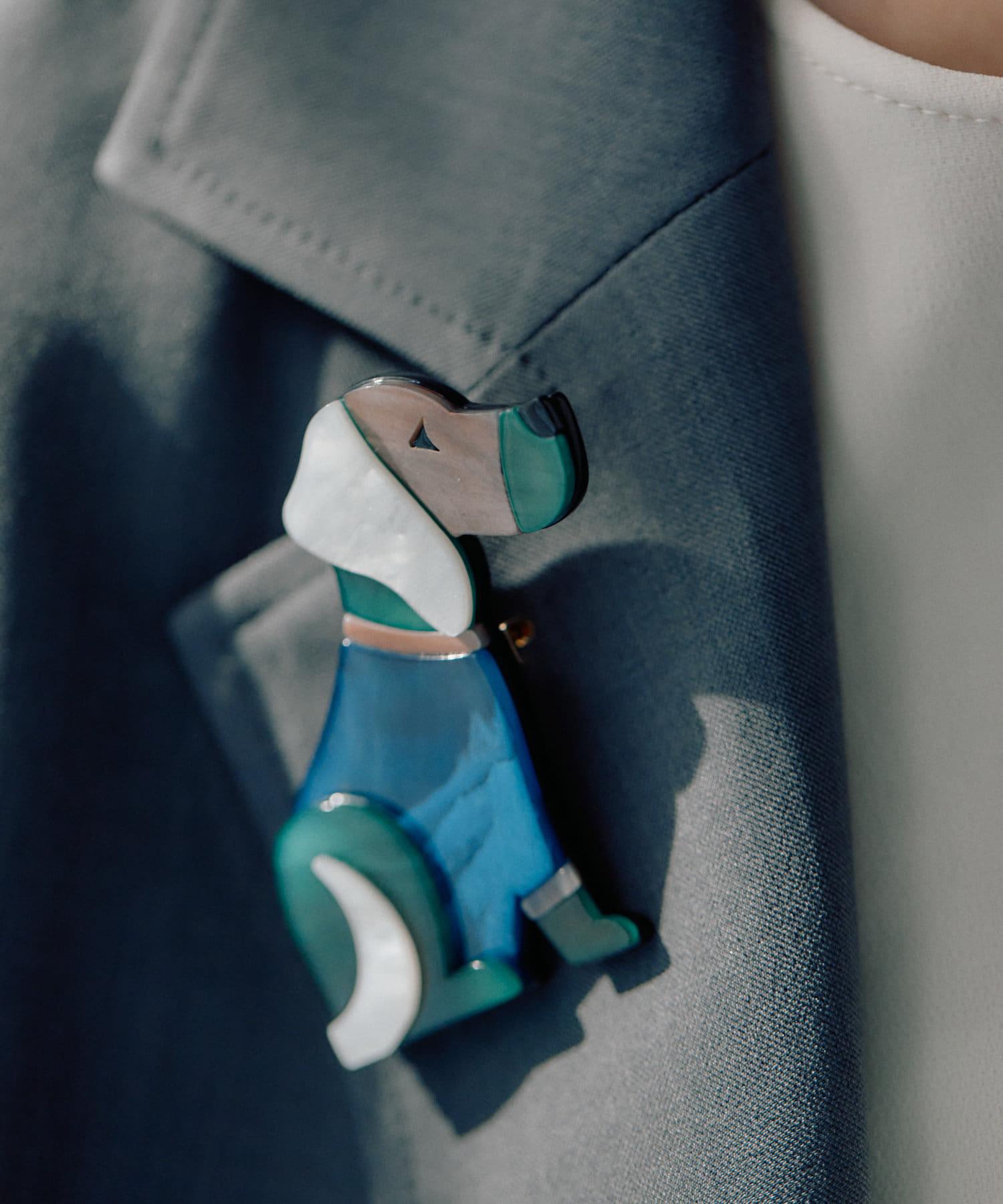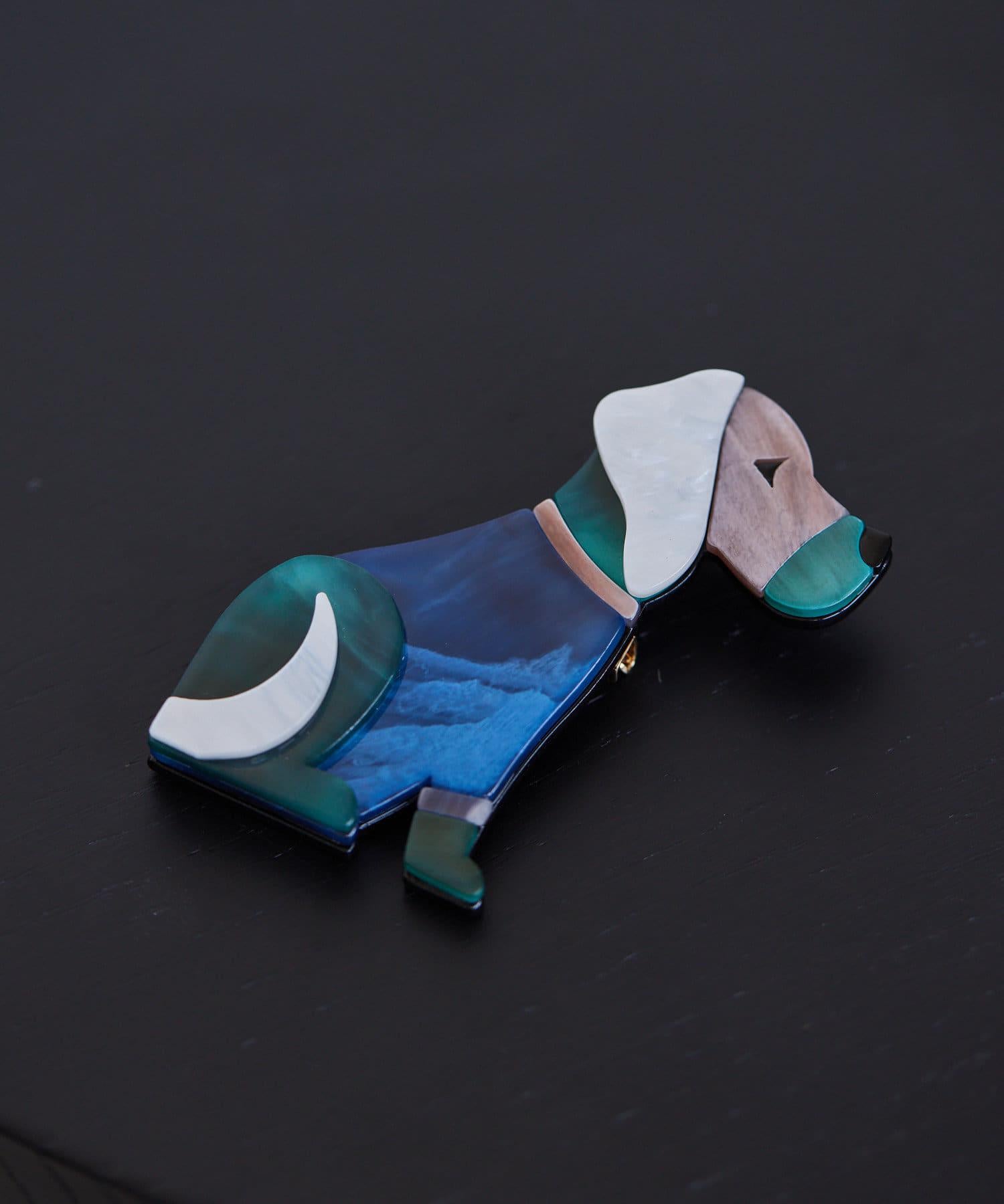 這款樹脂小狗胸針具有迷人的漸變效果。