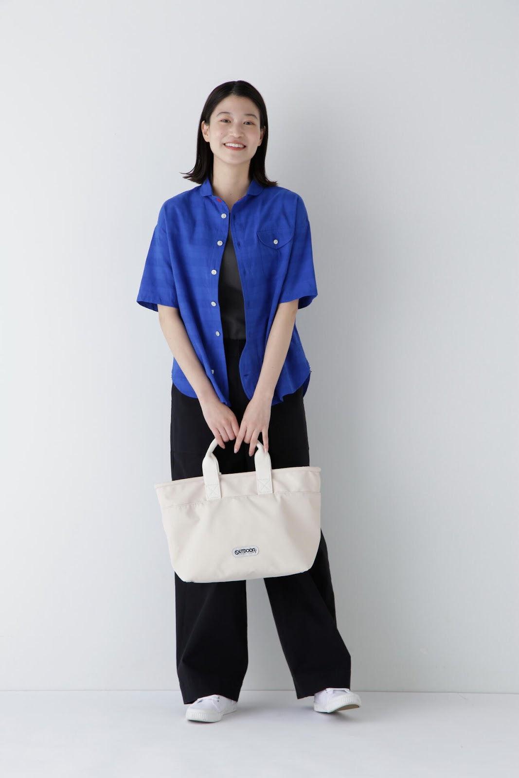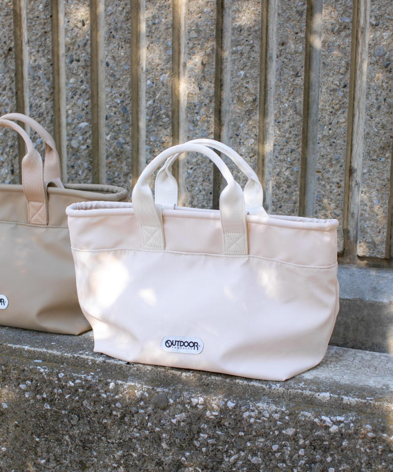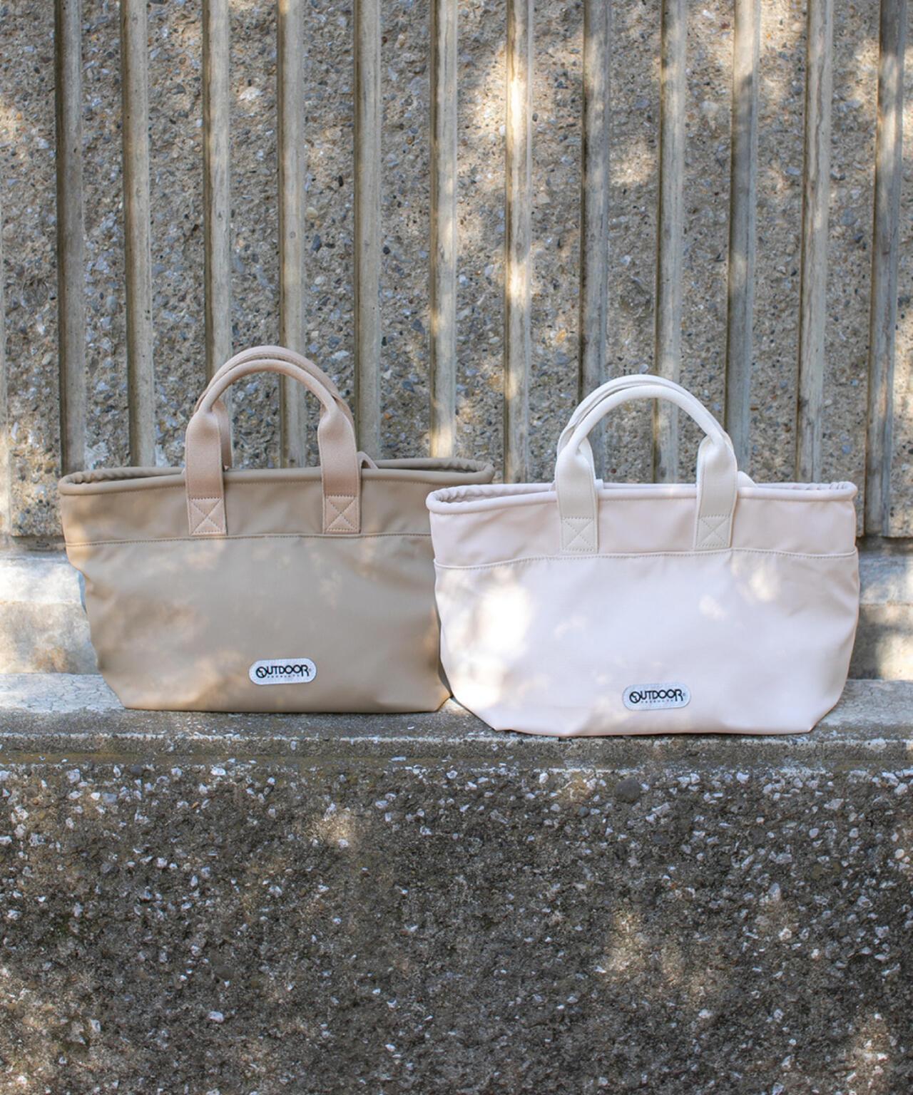 來自 "OUTDOOR PRODUCTS" 的定製手提袋 從外形上看完全是定製的,這款手提袋使用方便,有一個雙向手柄,內有很多口袋。口袋旁邊還有一個鑰匙環。有白色和米色可供選擇。啞光塗層包身搭配閃亮的實心皮帶提手。大號手提包的尺寸足以容納大量行李,適合一日遊使用。