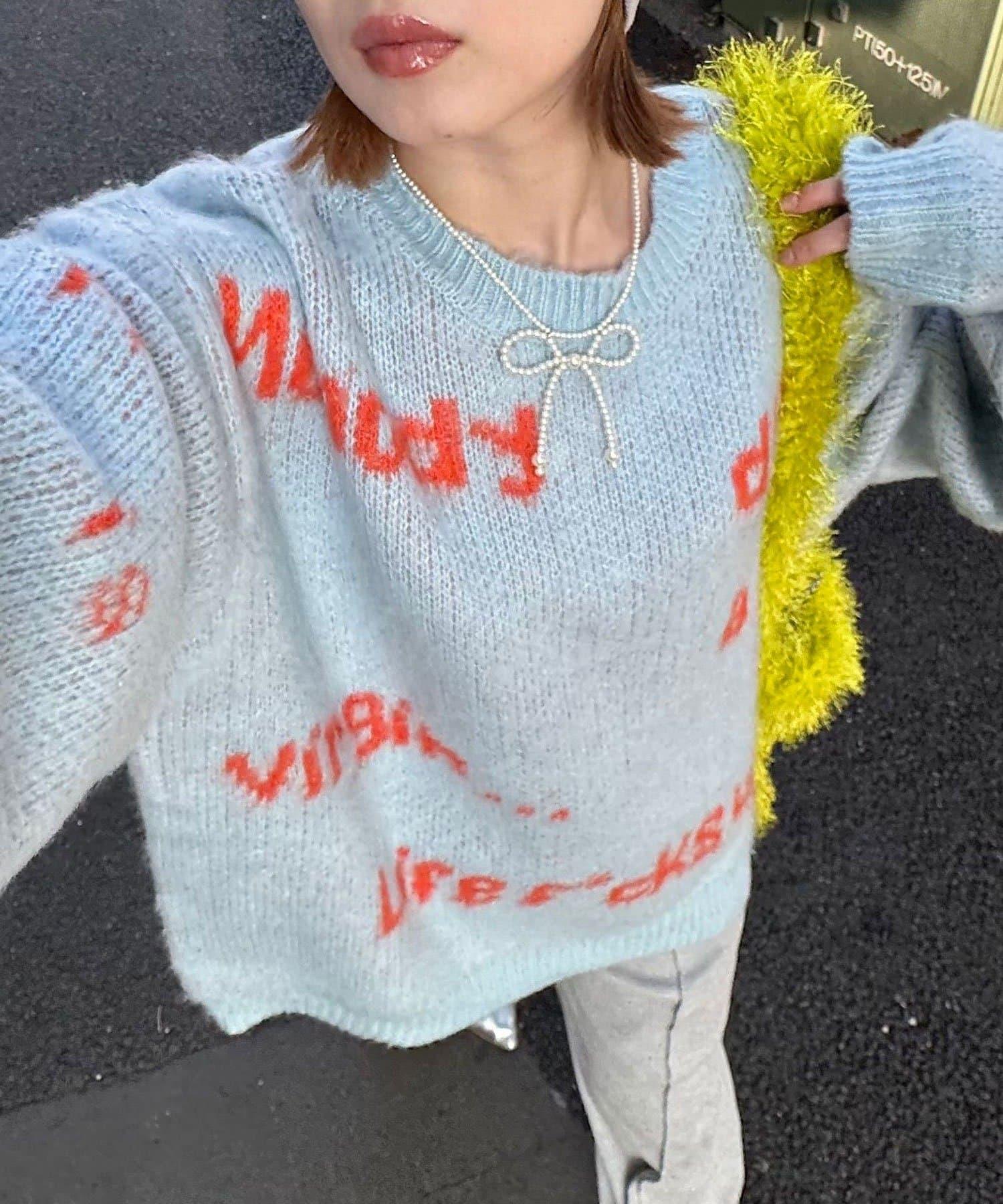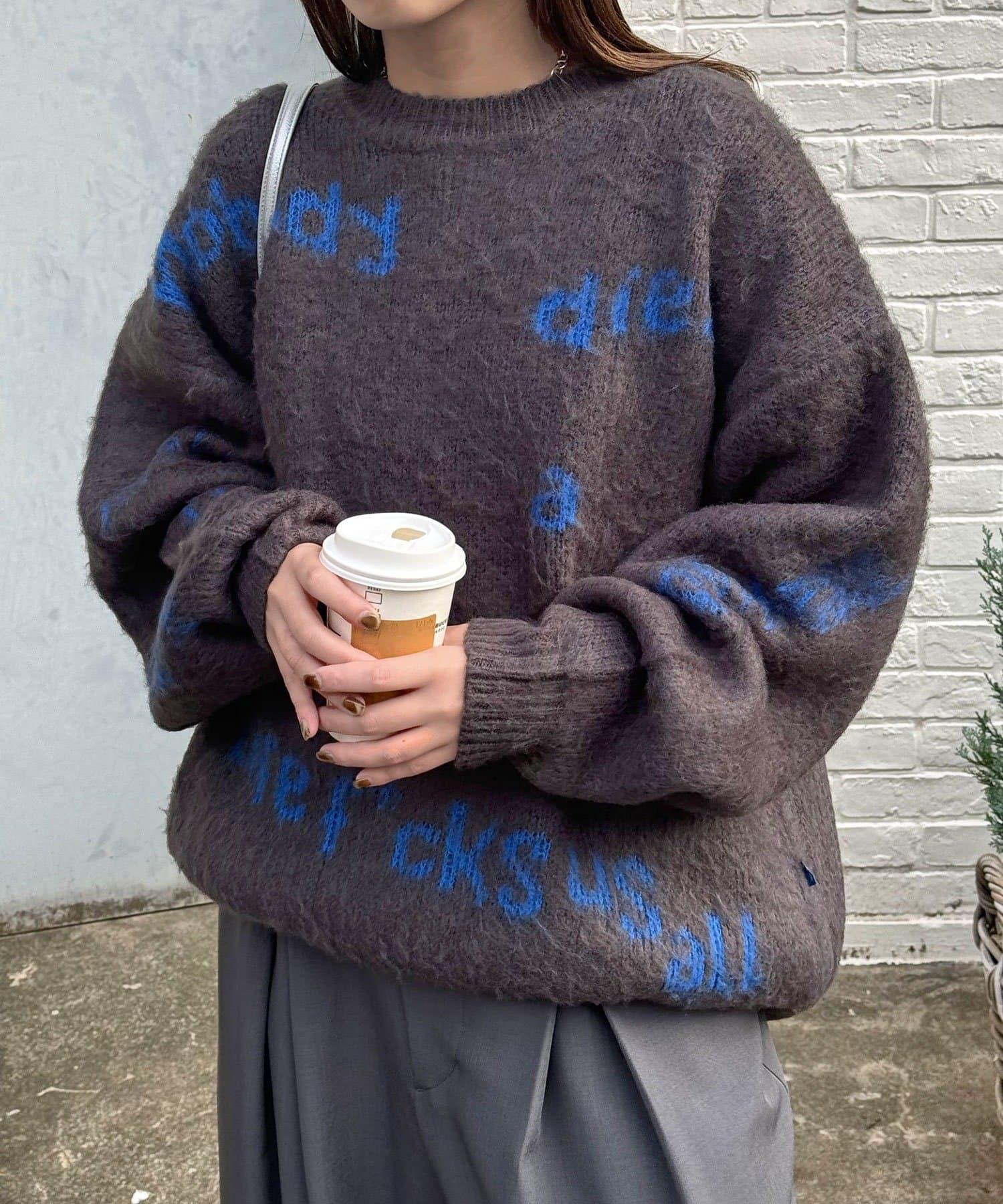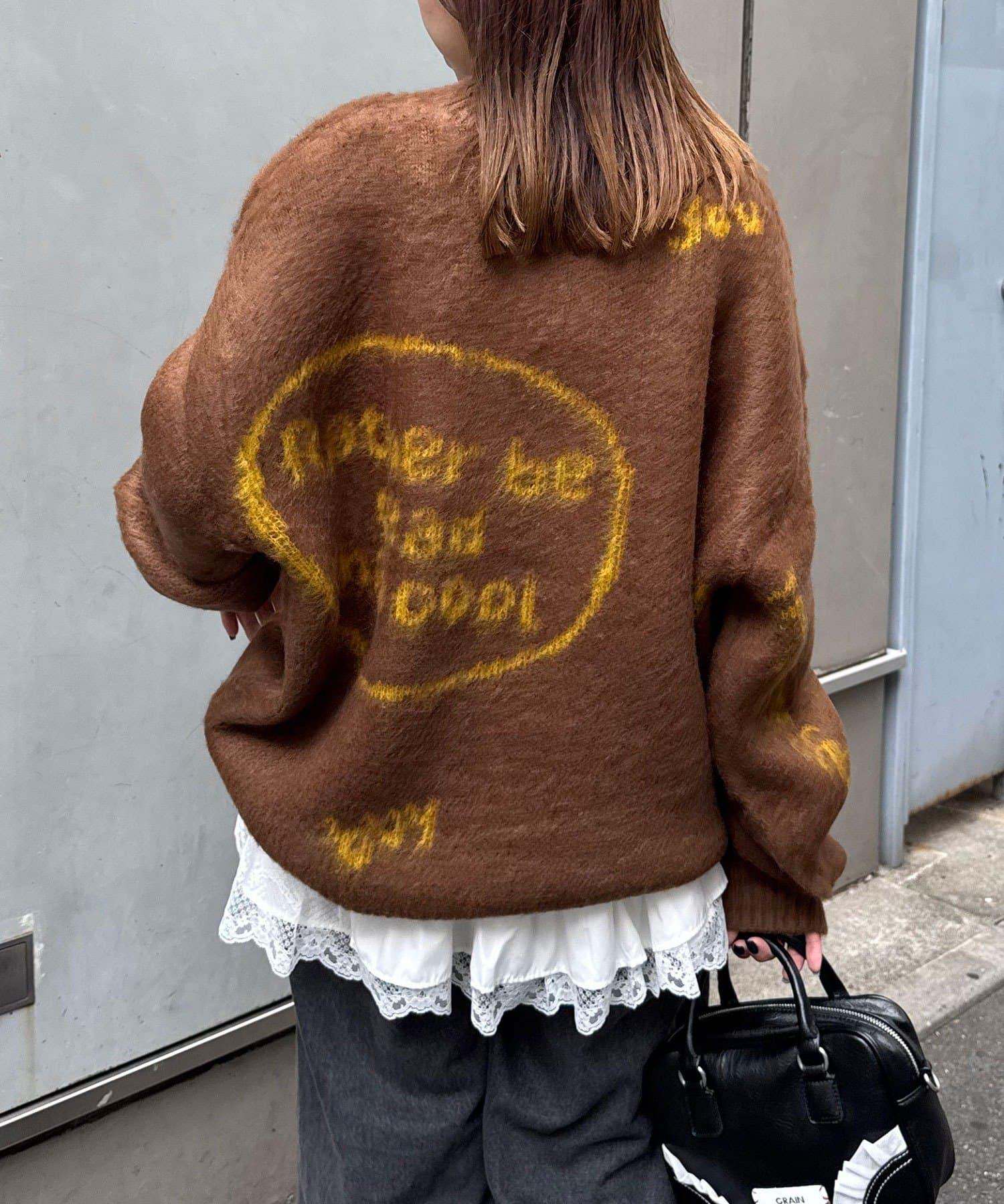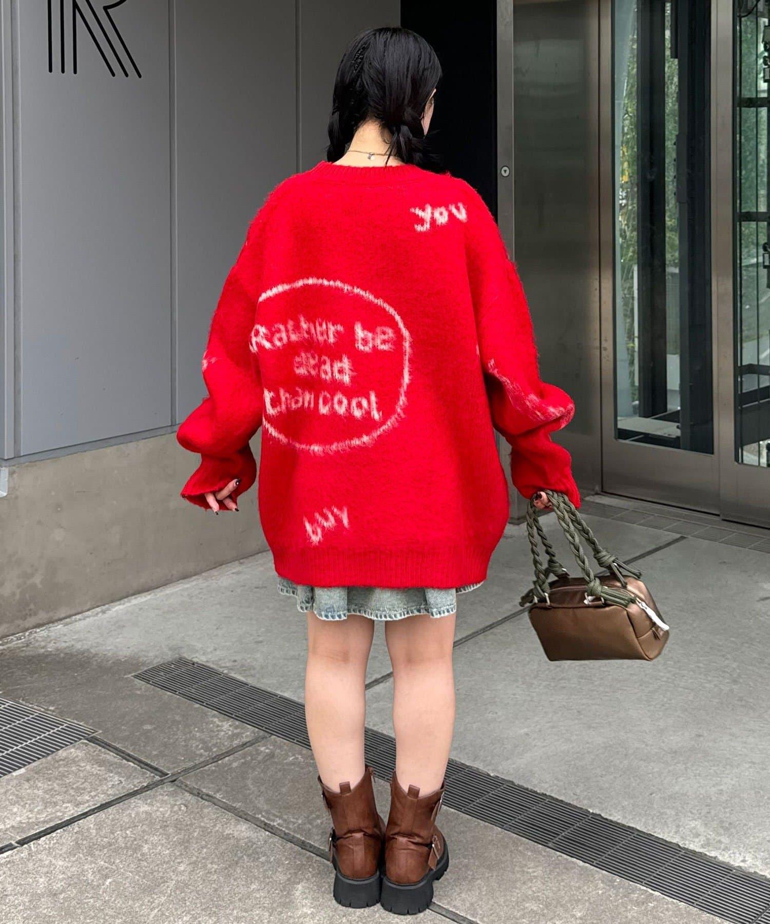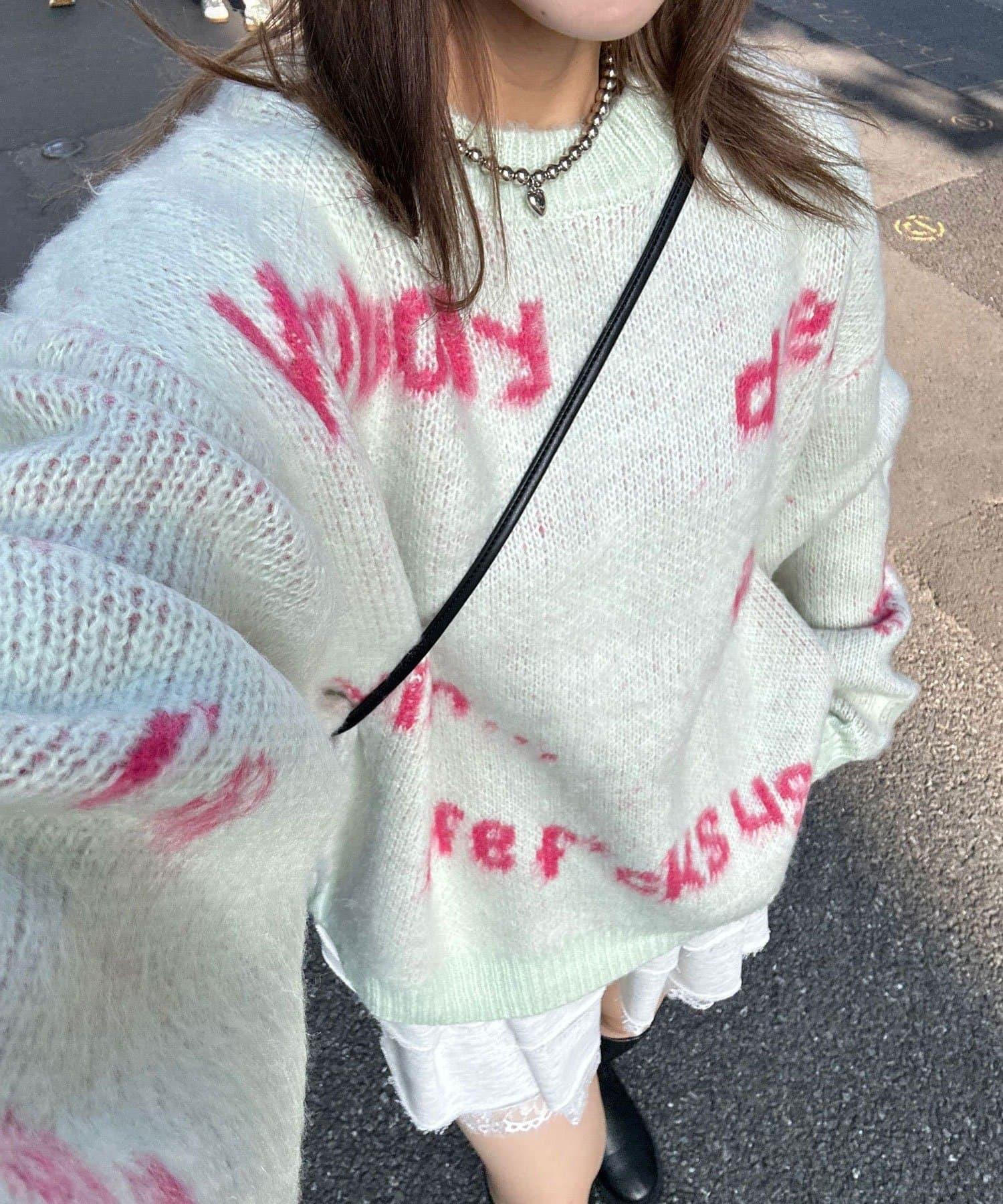 超大徽標針織衫,蓬鬆毛茸茸的感覺十分可愛。