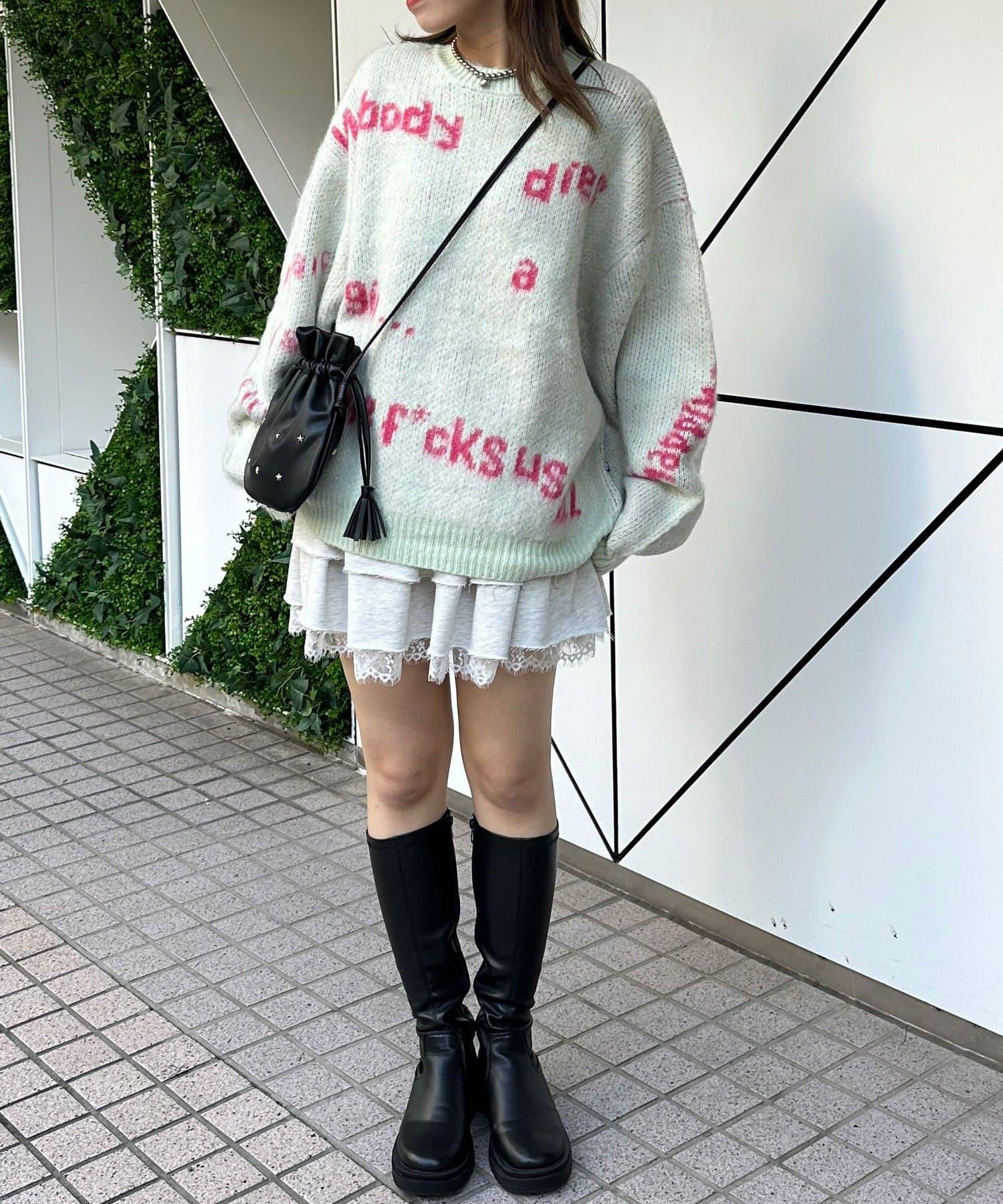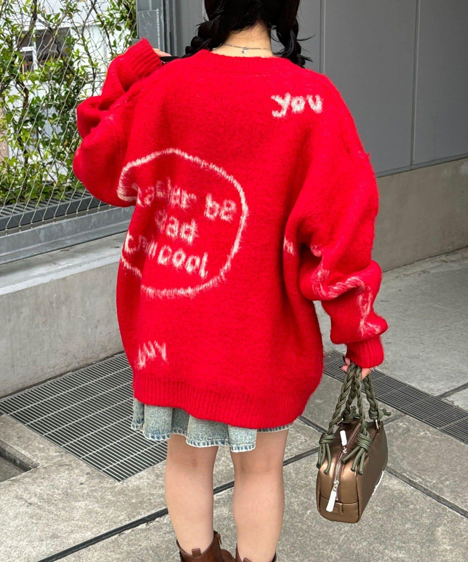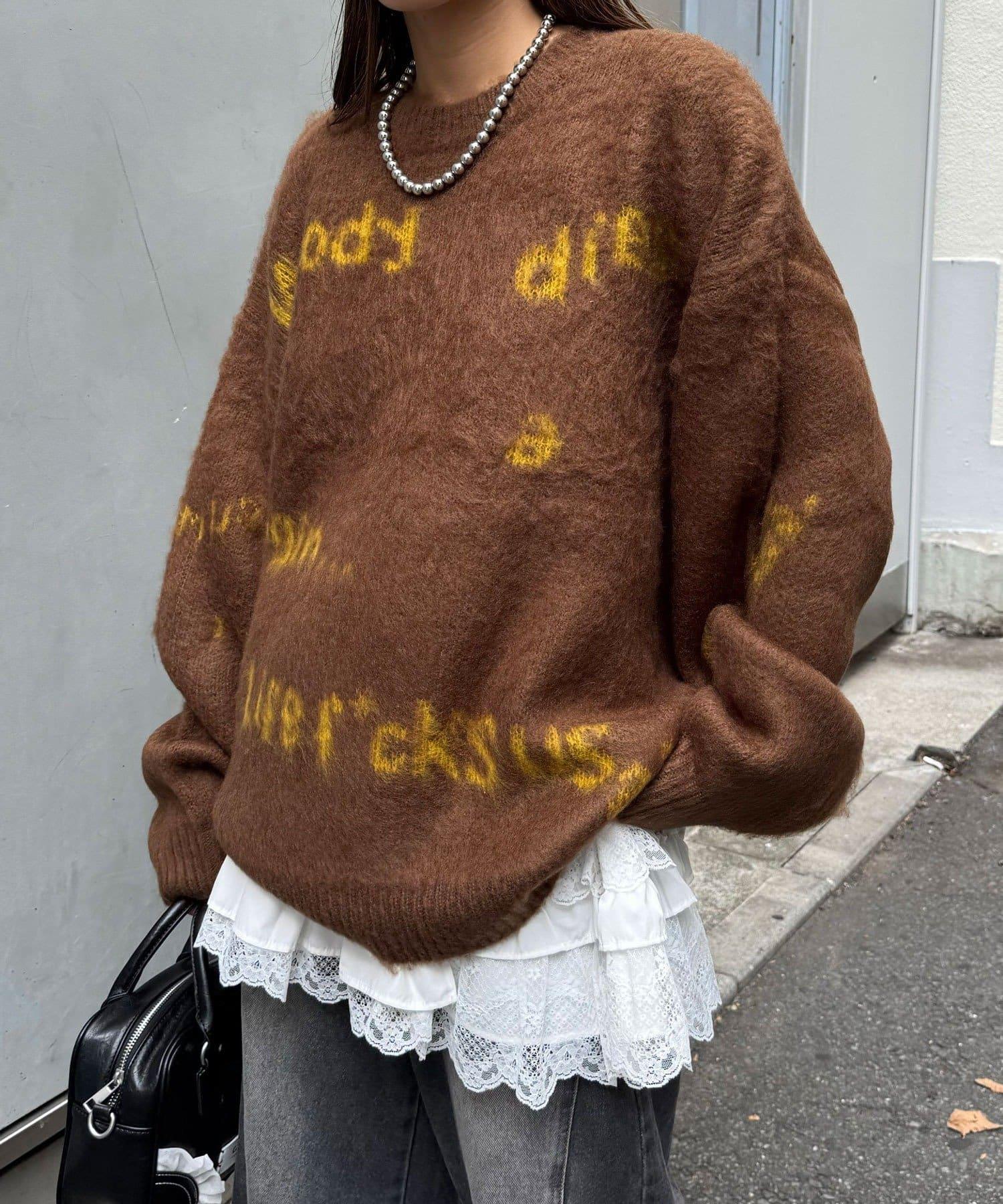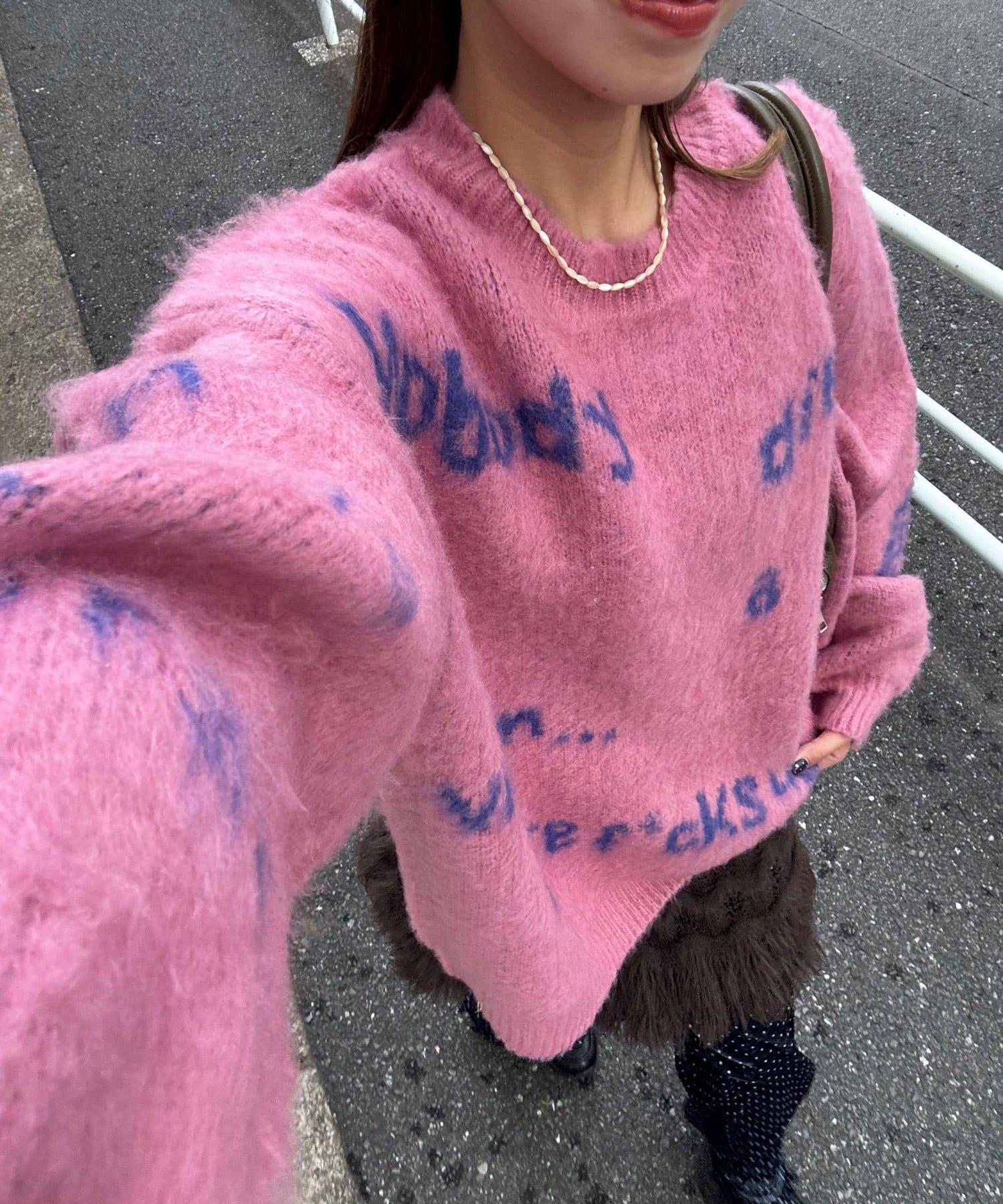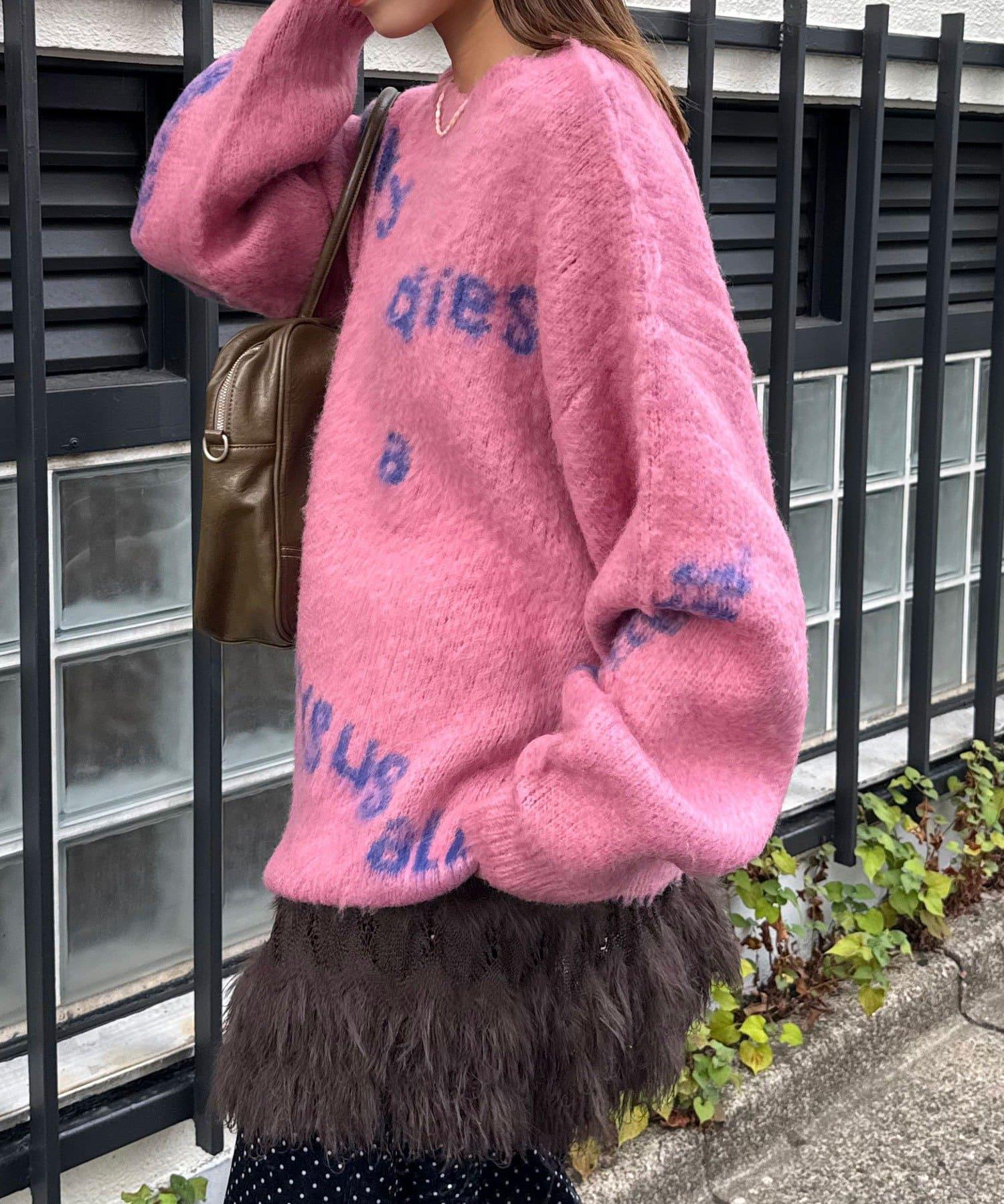 超大徽標針織衫,蓬鬆毛茸茸的感覺十分可愛。