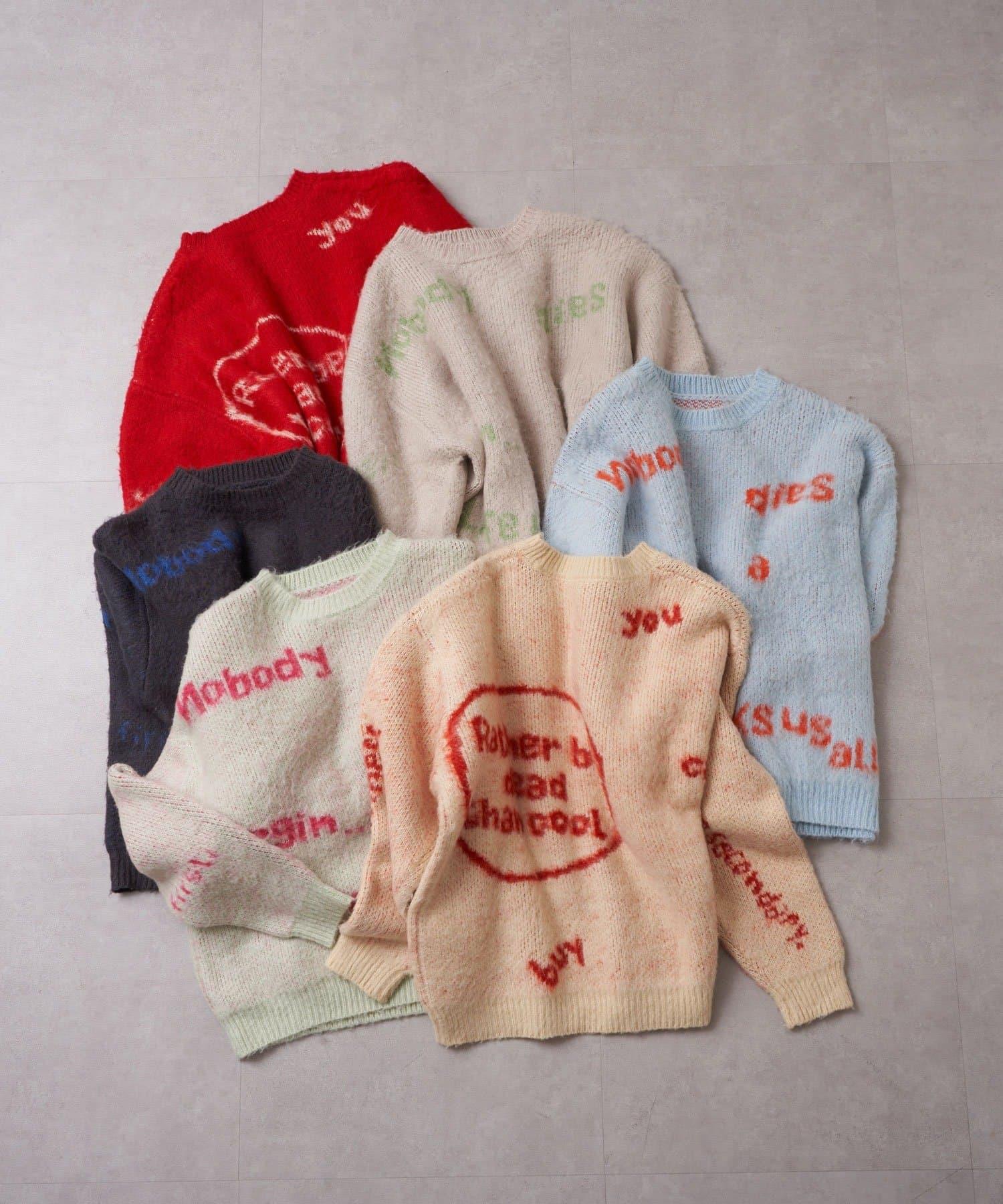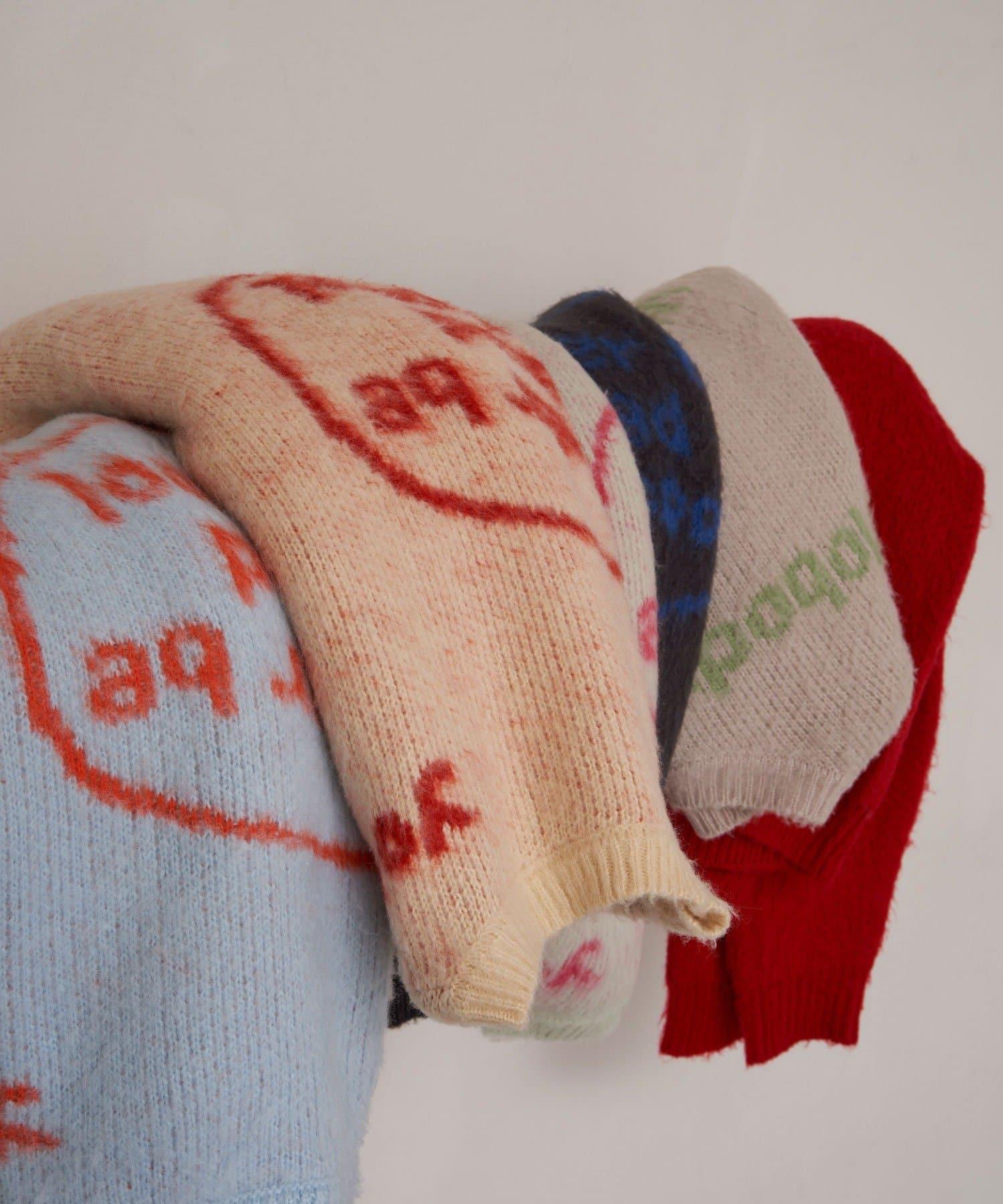 手工製作的徽標針織衫,帶有醒目的手寫風格配色徽標。