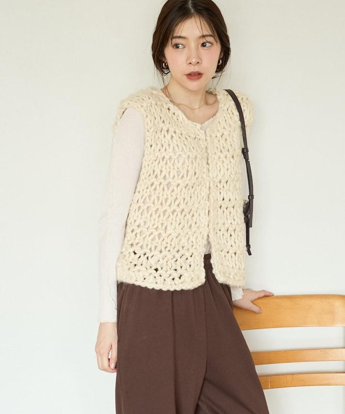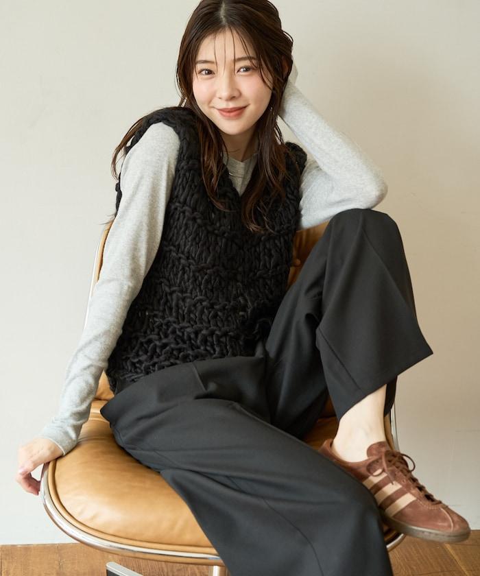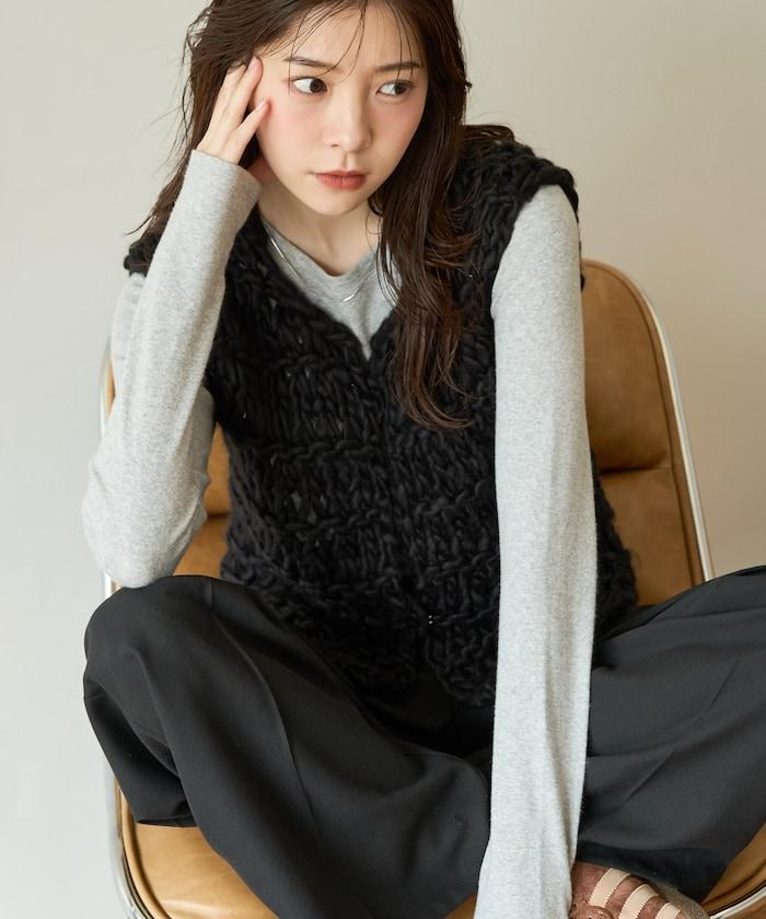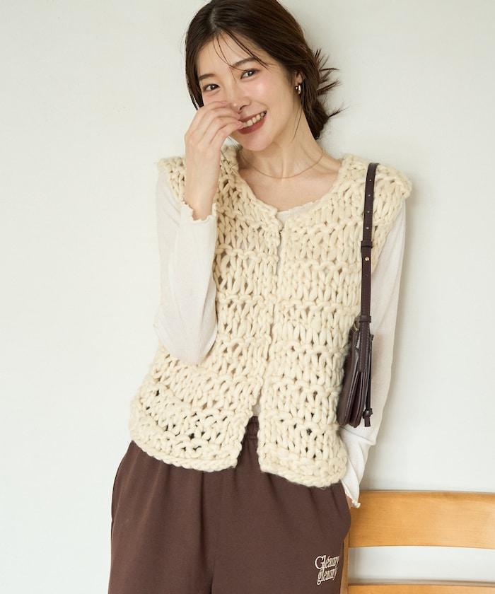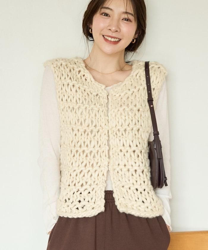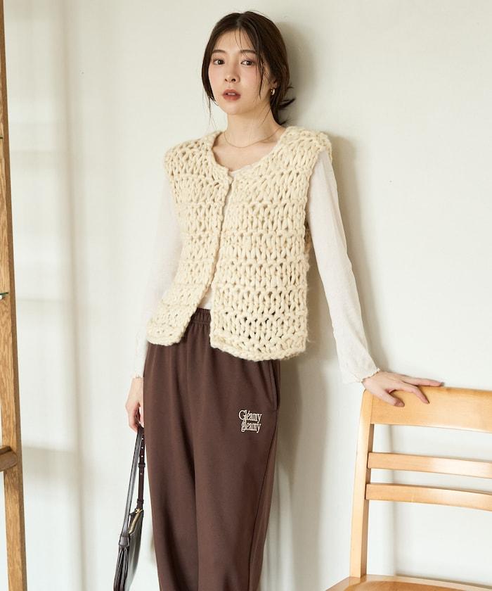 蓬鬆的針織讓馬甲充滿了韓式風情。